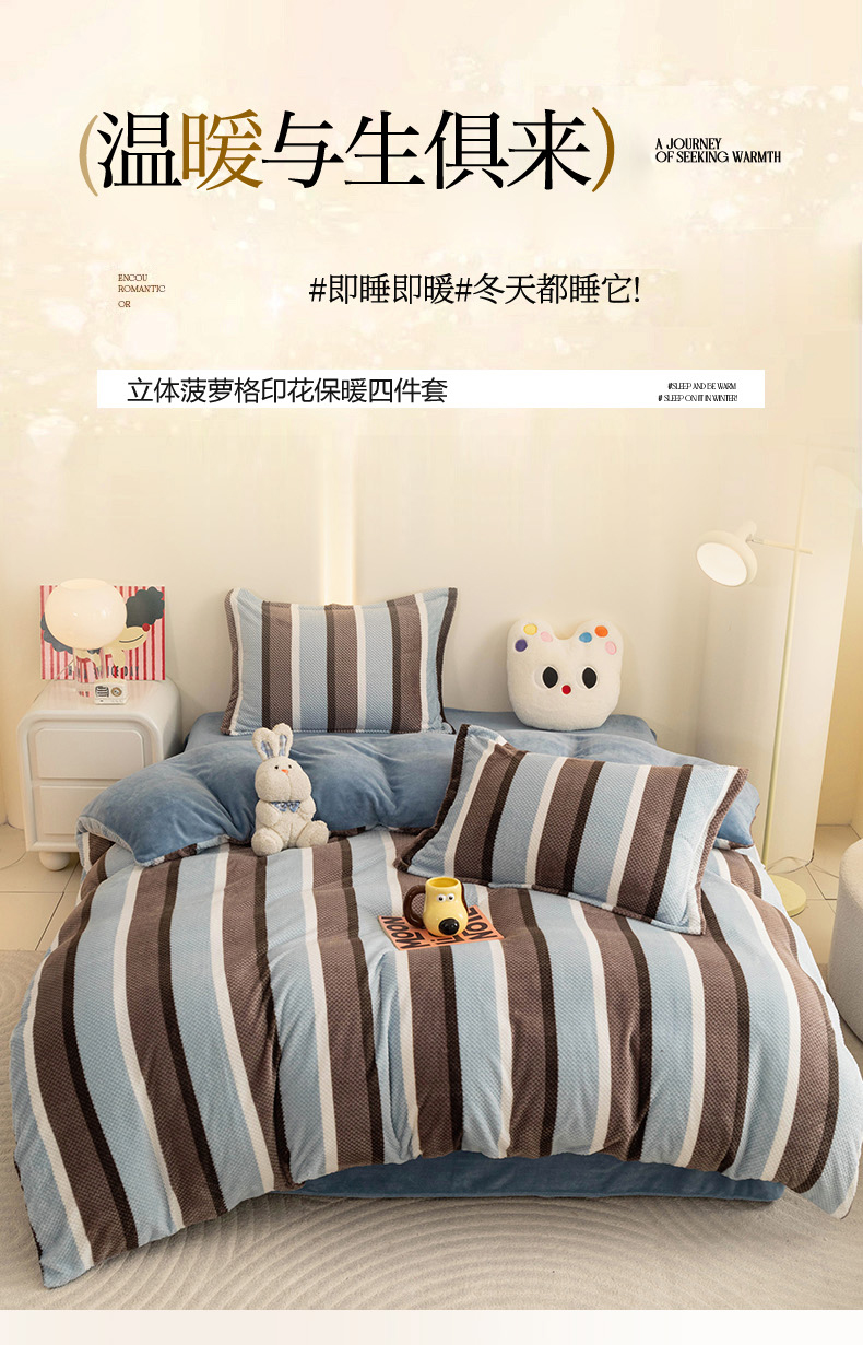 当前位置: 91家纺网 > 商品网购 > 床品套件 > 四件套 > 其它四件套 > 倾慕家纺 2026新款立体菠萝格印花保暖四件套 自由蓝