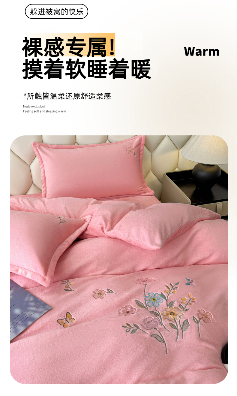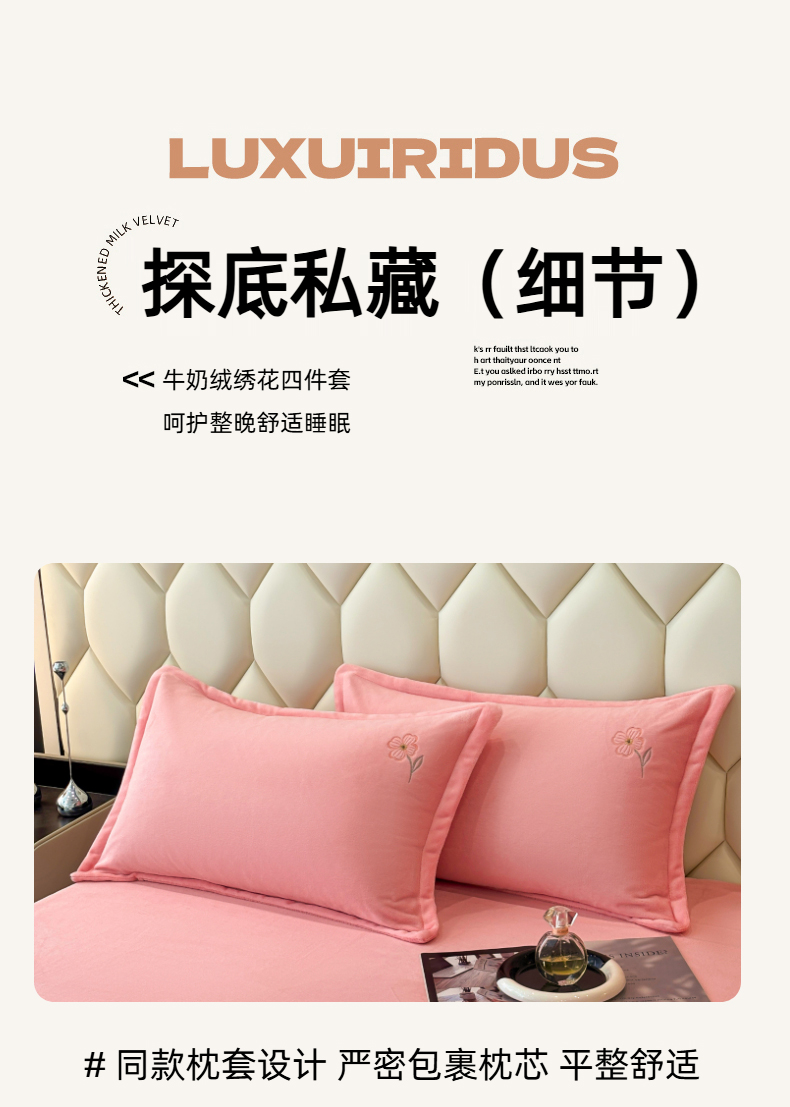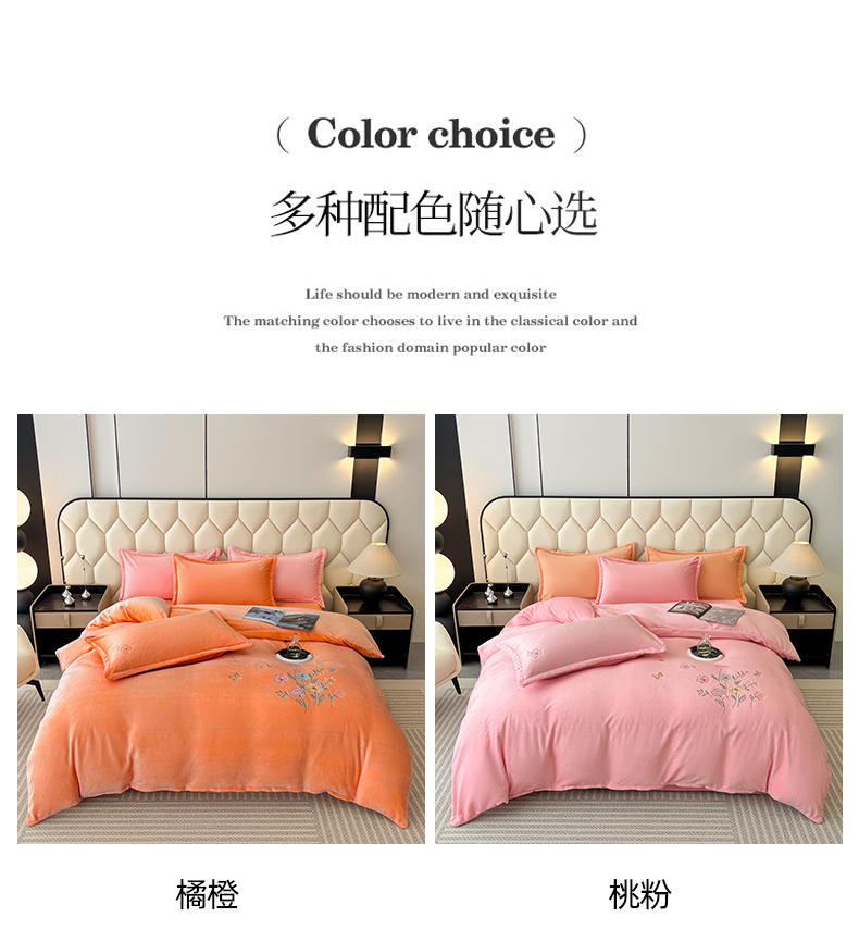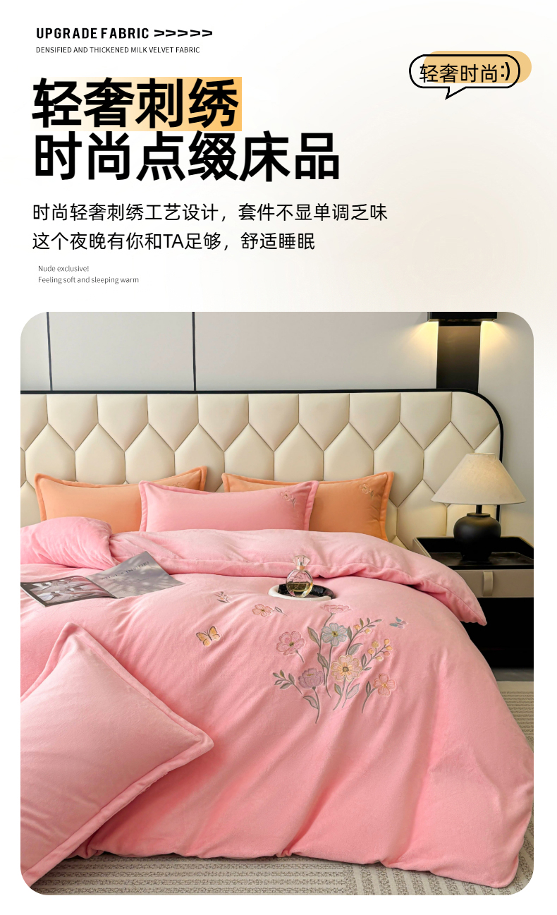 (总)织雅漫 2025新款牛奶绒绣花四件套,豆绿,山灰,橘橙,天蓝,桃粉,花紫