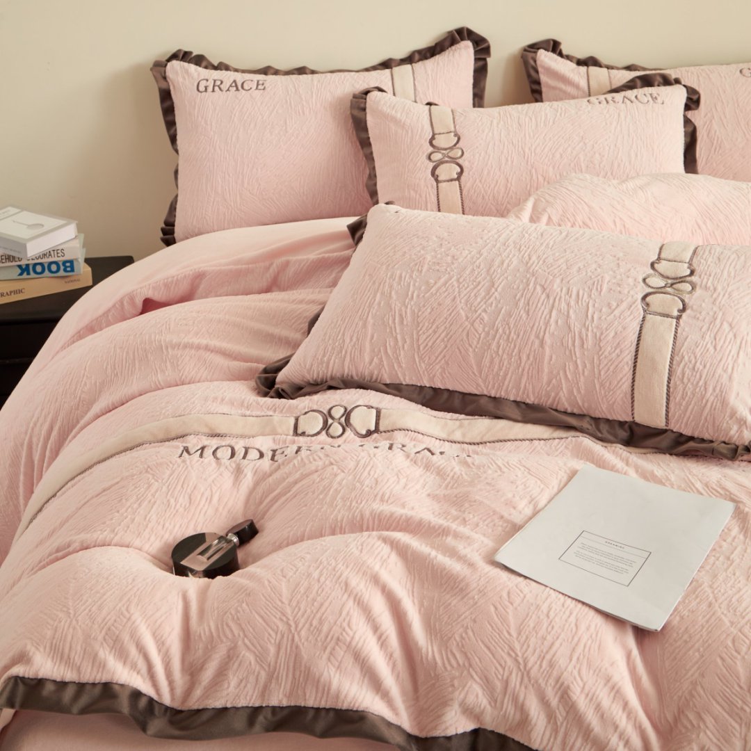 七里香 2025新款雕花绒牛奶绒刺绣四件套-云锦系列 云锦-粉玉