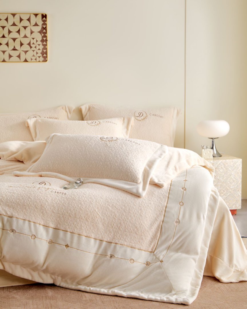七里香 2025新款雕花绒牛奶绒刺绣四件套-锦穗绒华系列 锦穗绒华-米黄