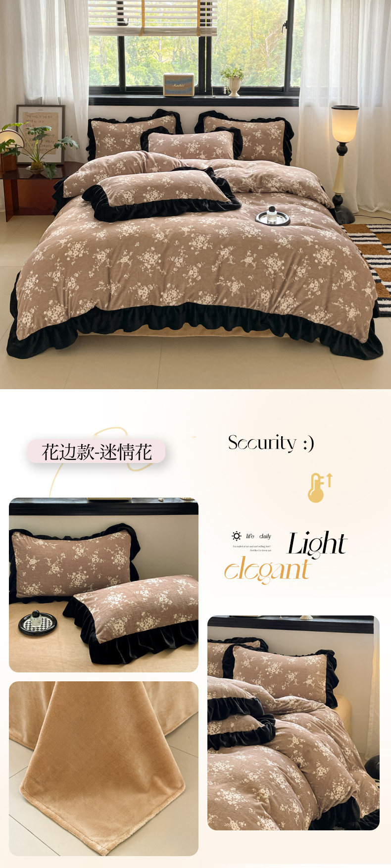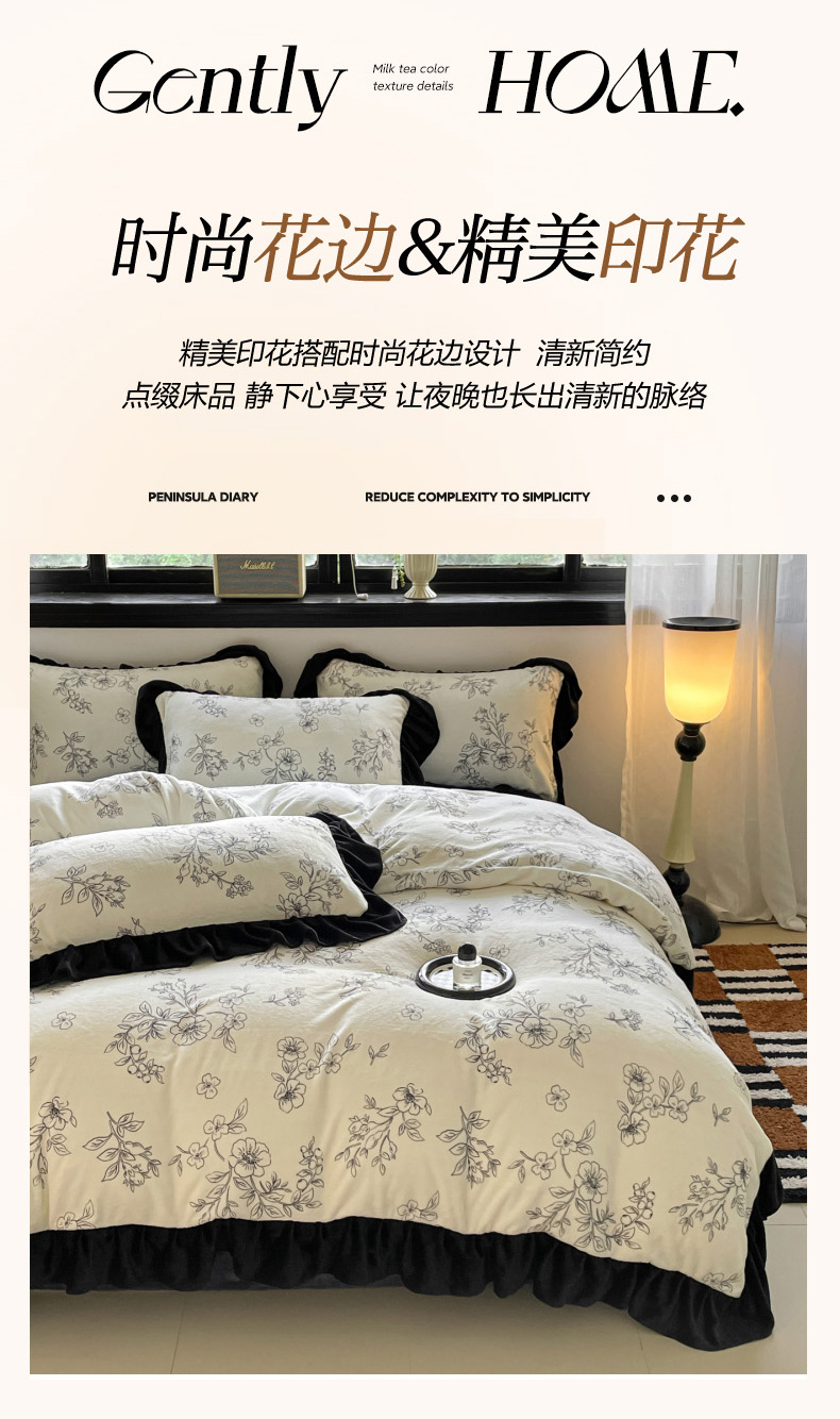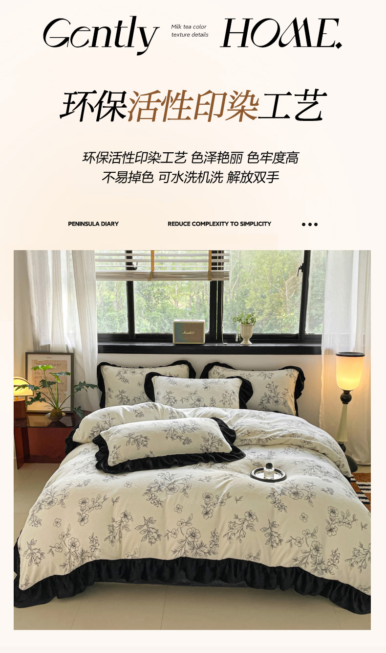 当前位置: 91家纺网 > 商品网购 > 床品套件 > 四件套 > 牛奶绒四件套 > 慕澄家纺 2025新款赫本风牛奶绒花边款四件套 花边款-花颜