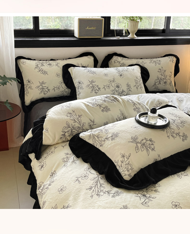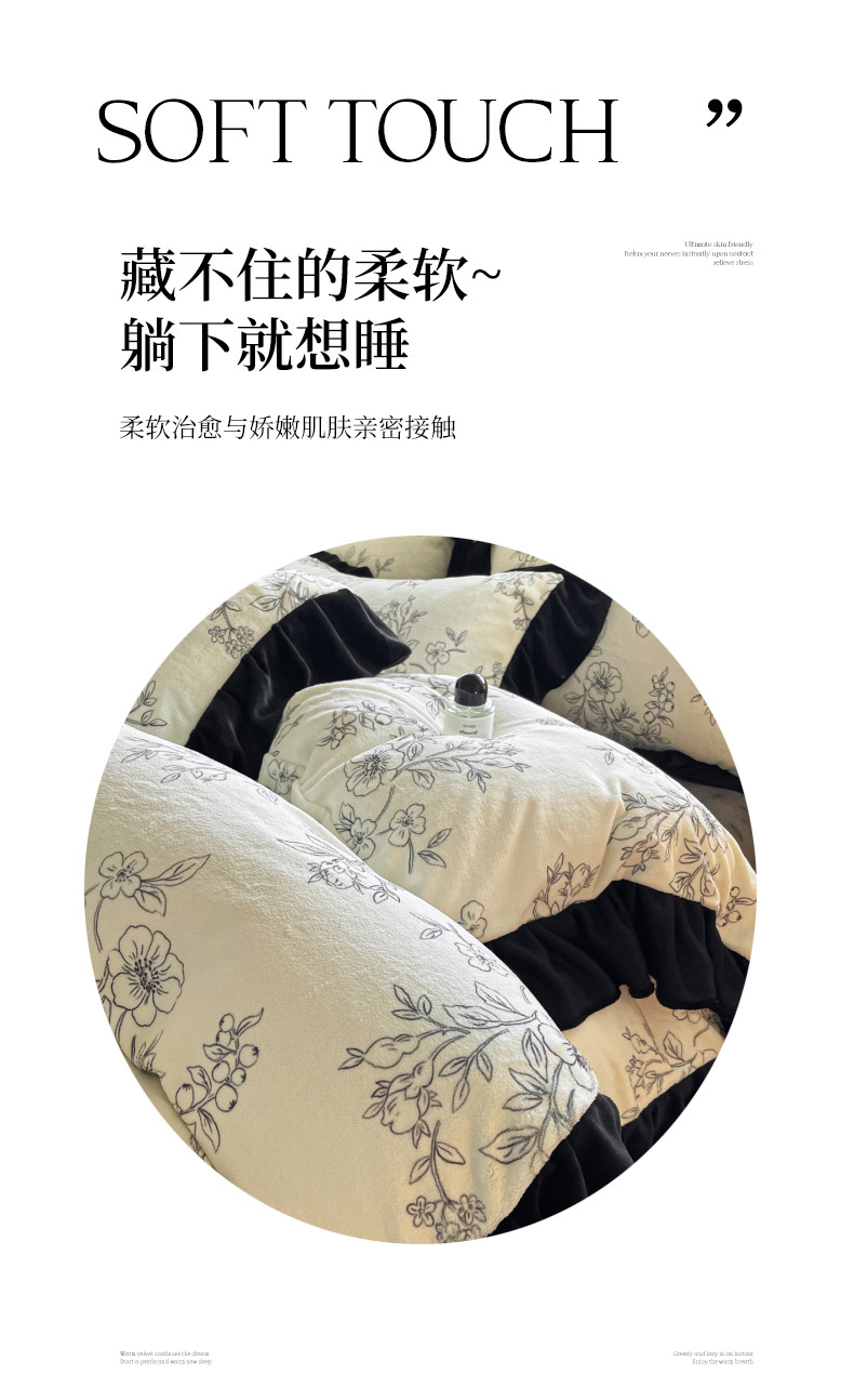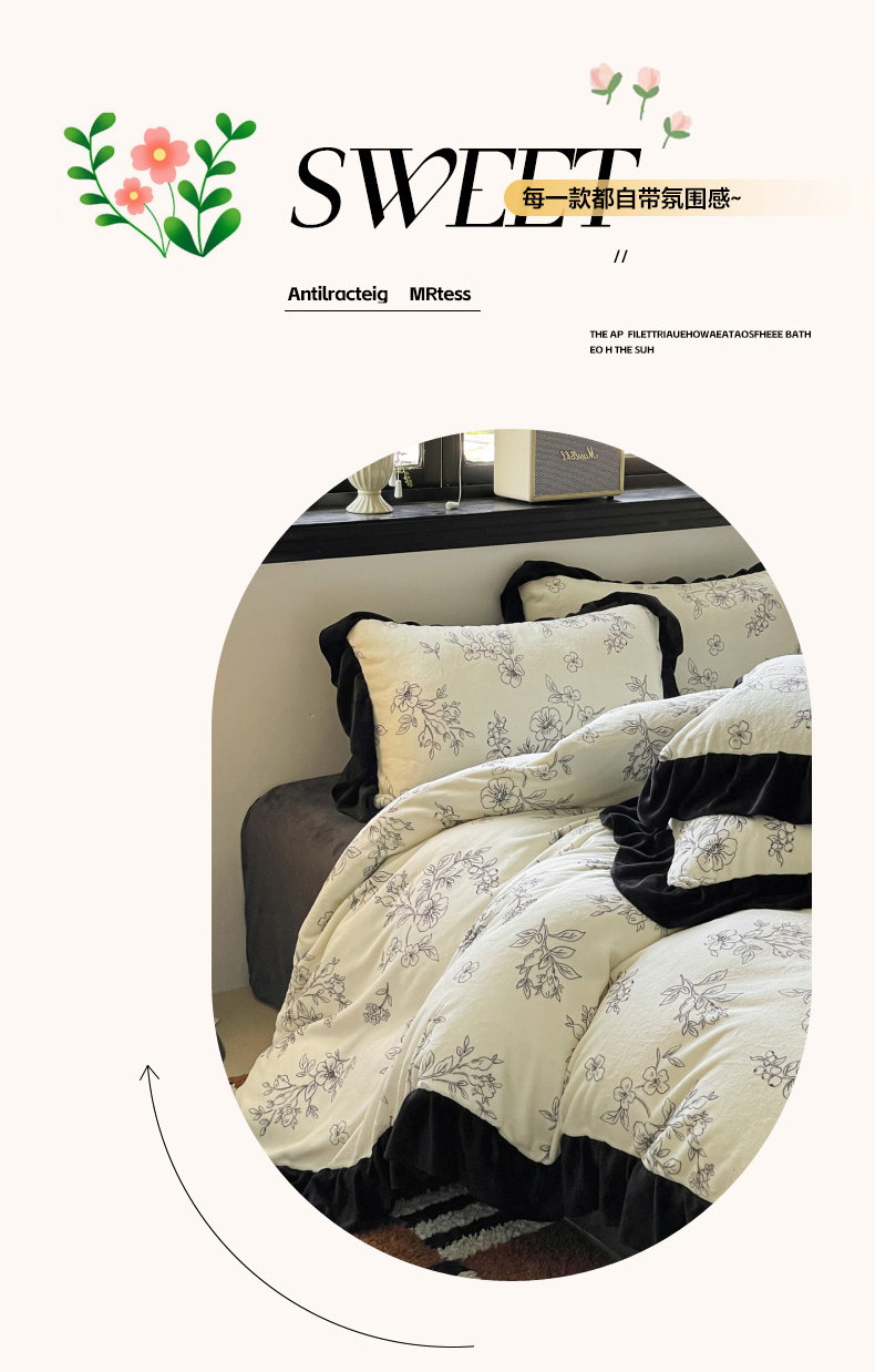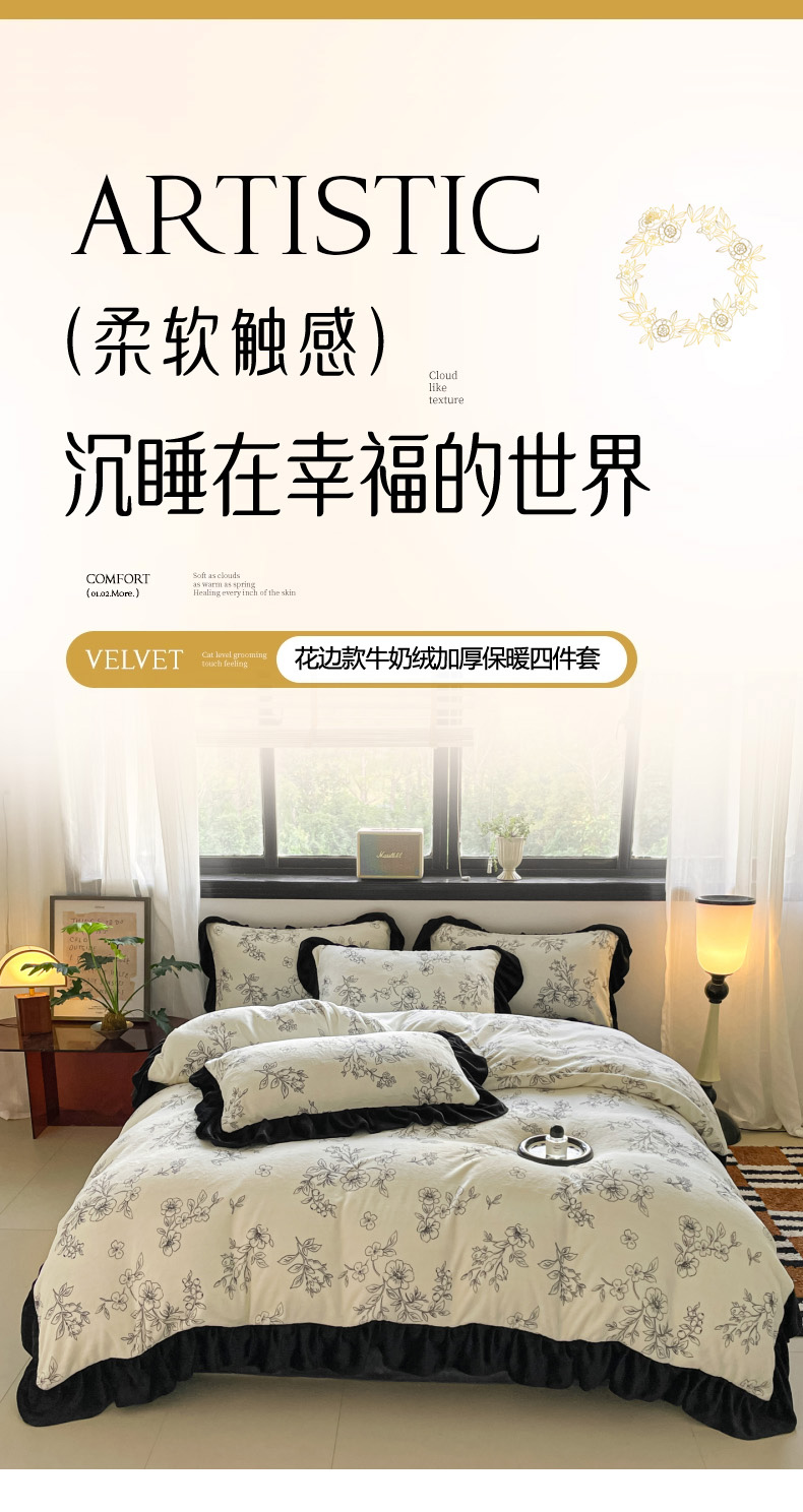当前位置: 91家纺网 > 商品网购 > 床品套件 > 四件套 > 牛奶绒四件套 > 慕澄家纺 2025新款赫本风牛奶绒花边款四件套 花边款-花颜