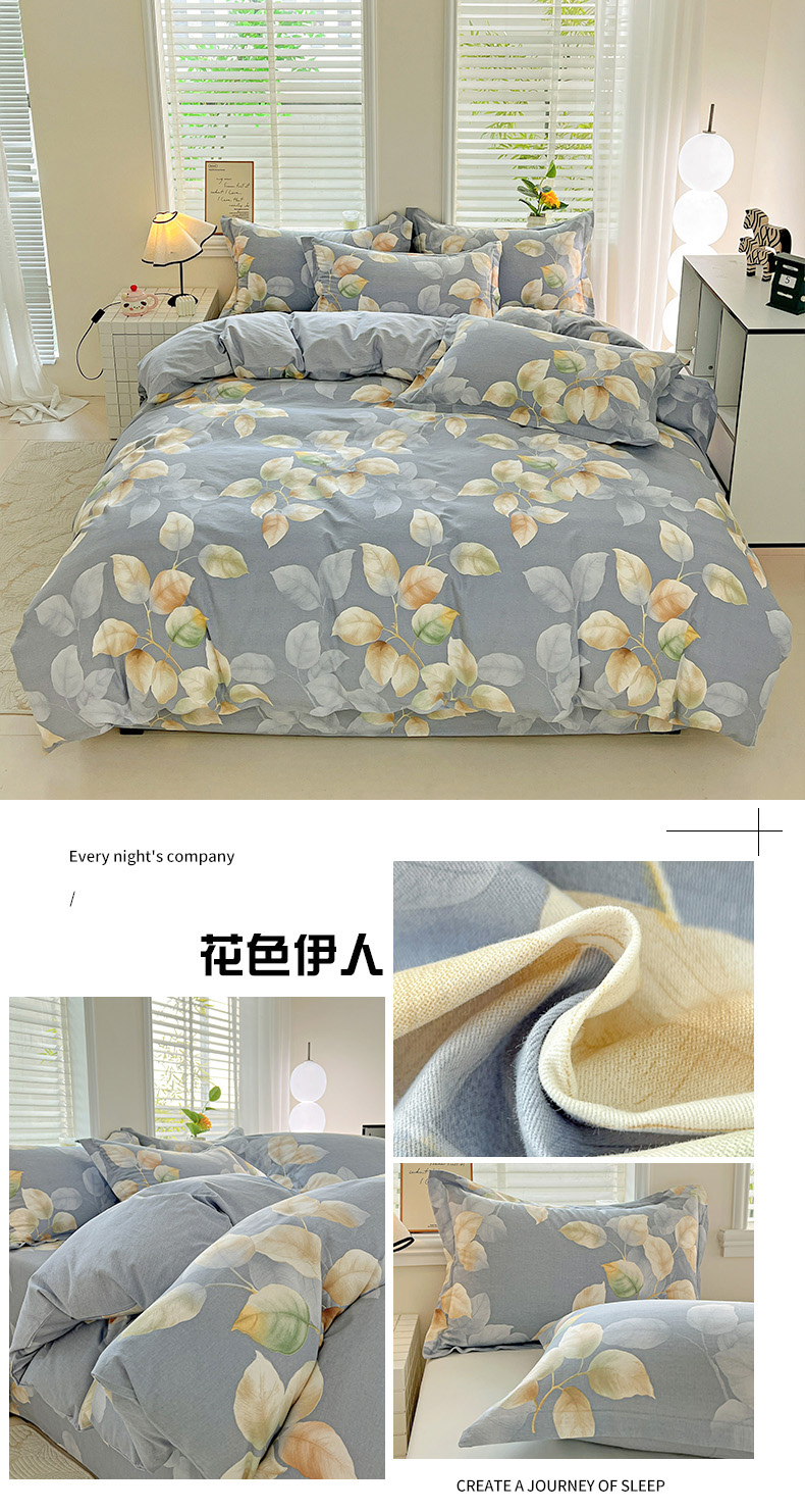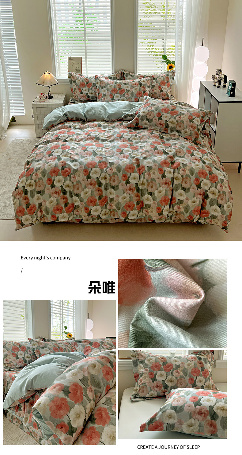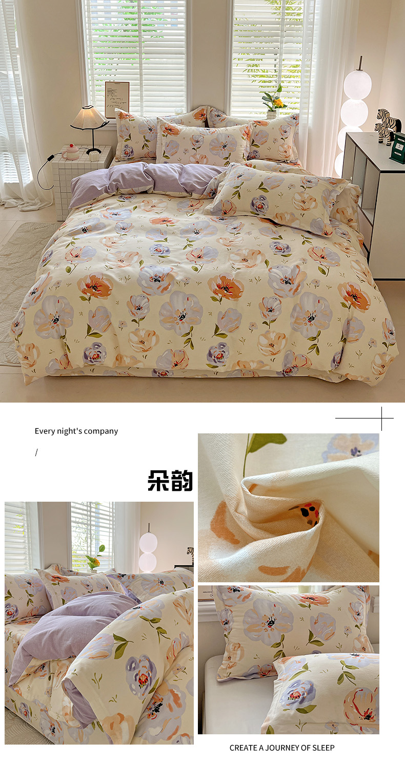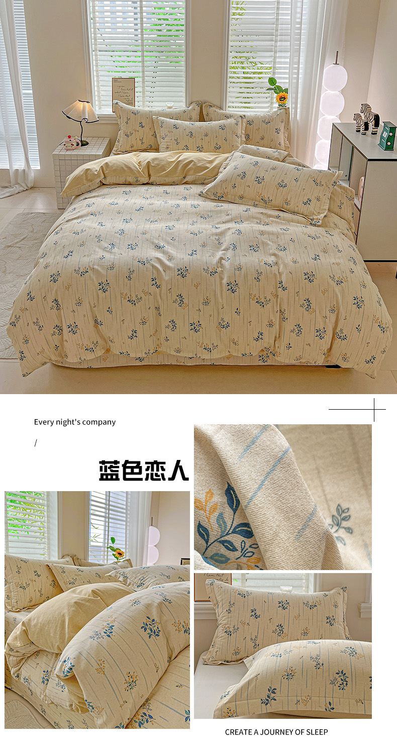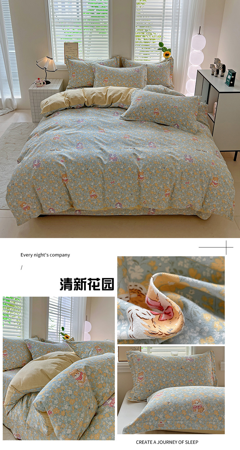 当前位置: 91家纺网 > 商品网购 > 床品套件 > 四件套 > 全棉普通四件套 > 依庭 2025新款高克重全棉纯棉磨毛印花四件套 清新花园