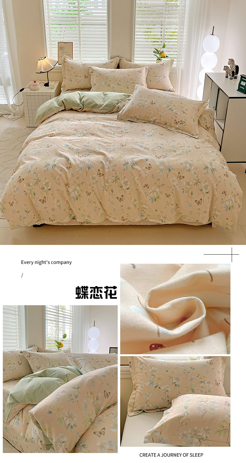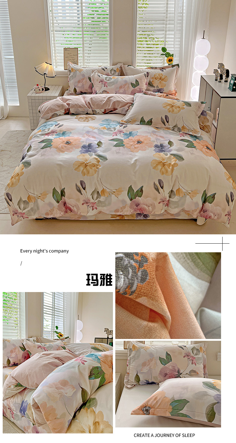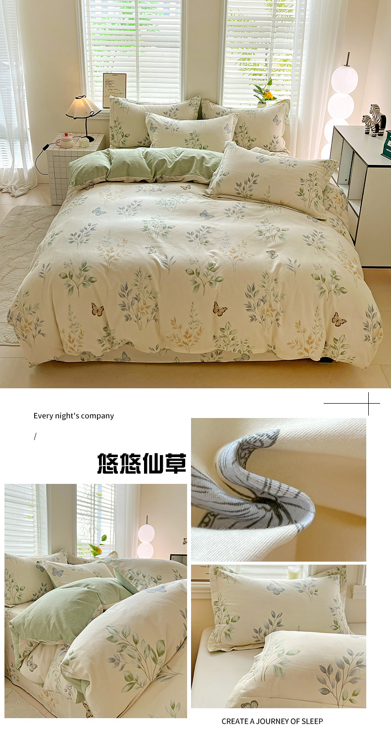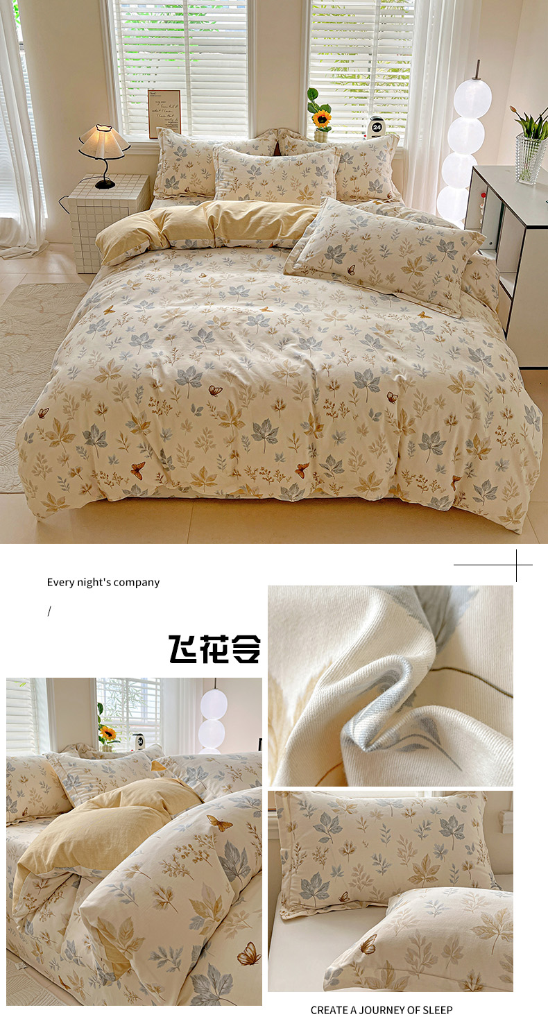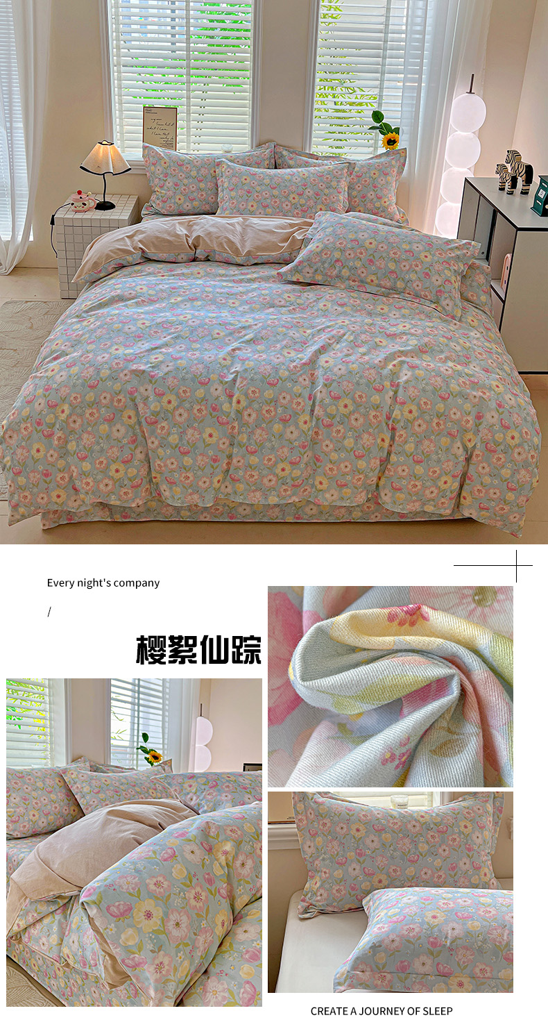 当前位置: 91家纺网 > 商品网购 > 床品套件 > 四件套 > 全棉普通四件套 > 依庭 2025新款高克重全棉纯棉磨毛印花四件套 清新花园