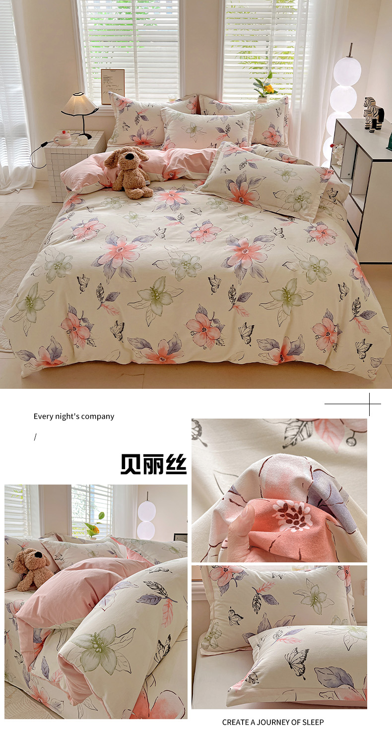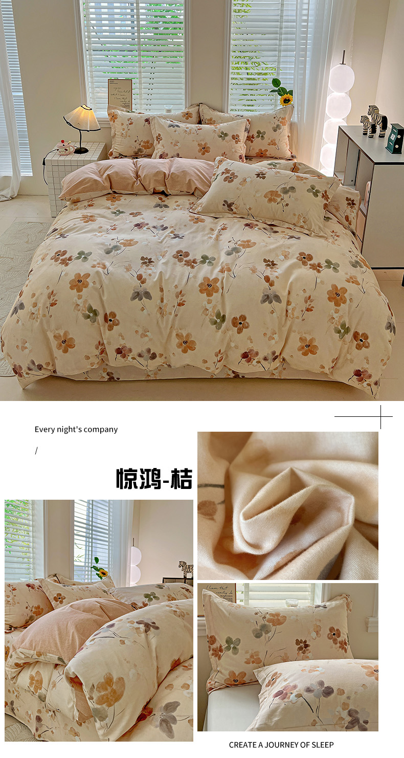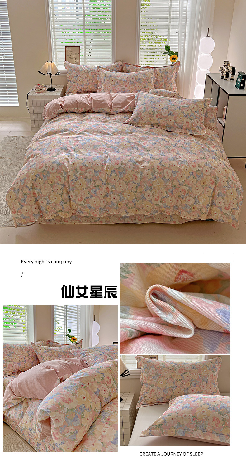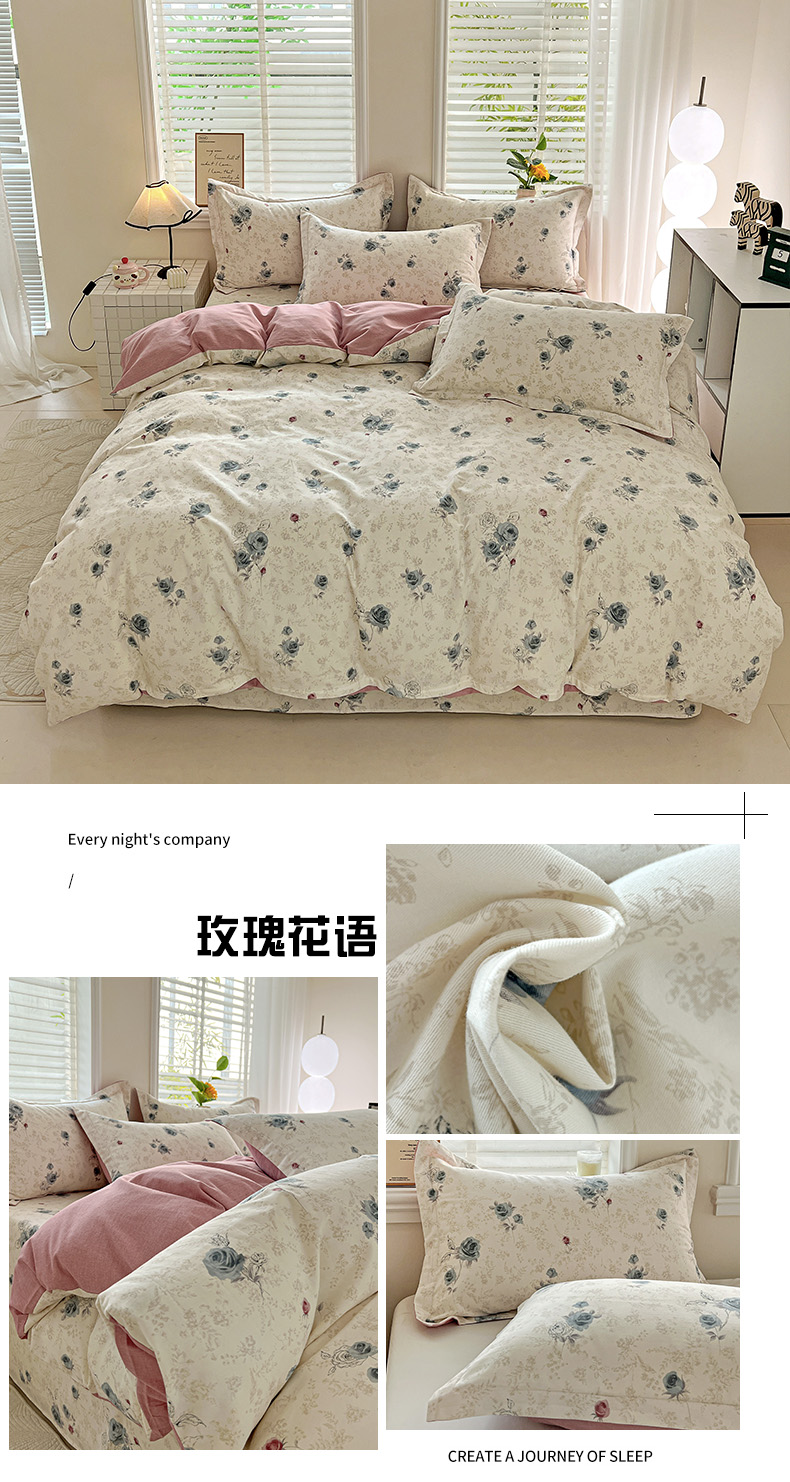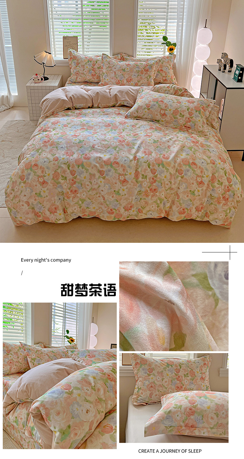 当前位置: 91家纺网 > 商品网购 > 床品套件 > 四件套 > 全棉普通四件套 > 依庭 2025新款高克重全棉纯棉磨毛印花四件套 清新花园