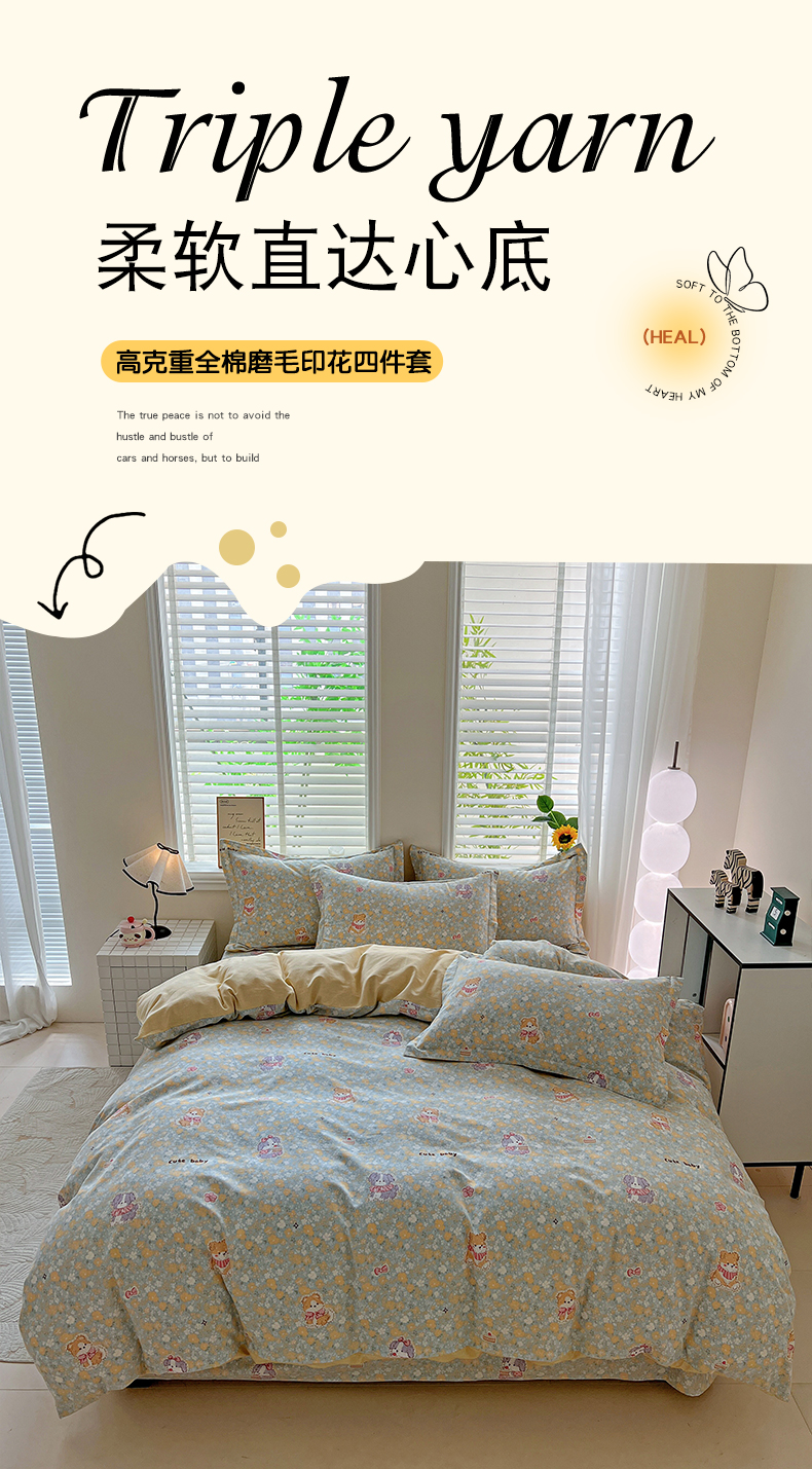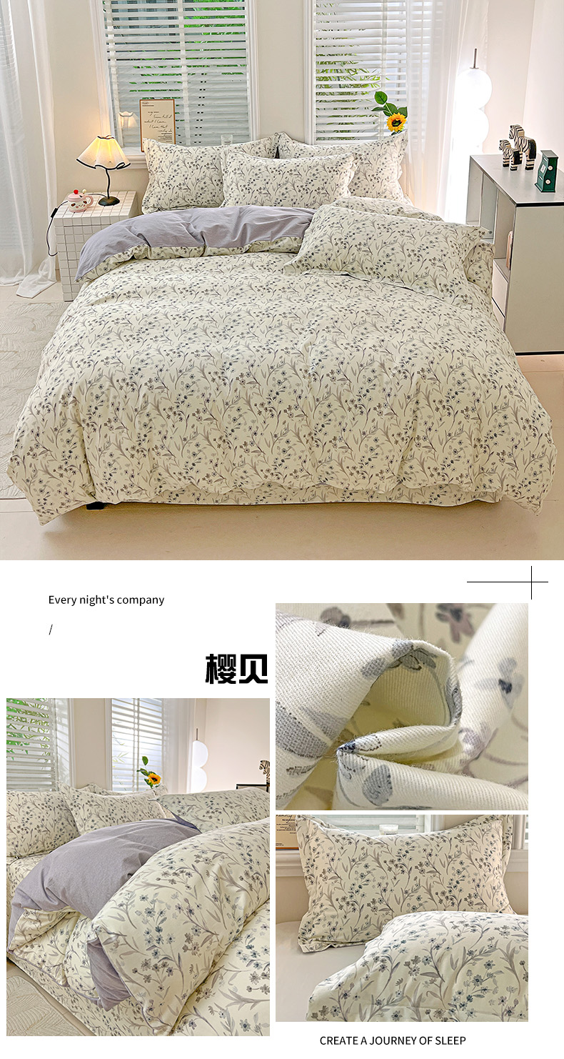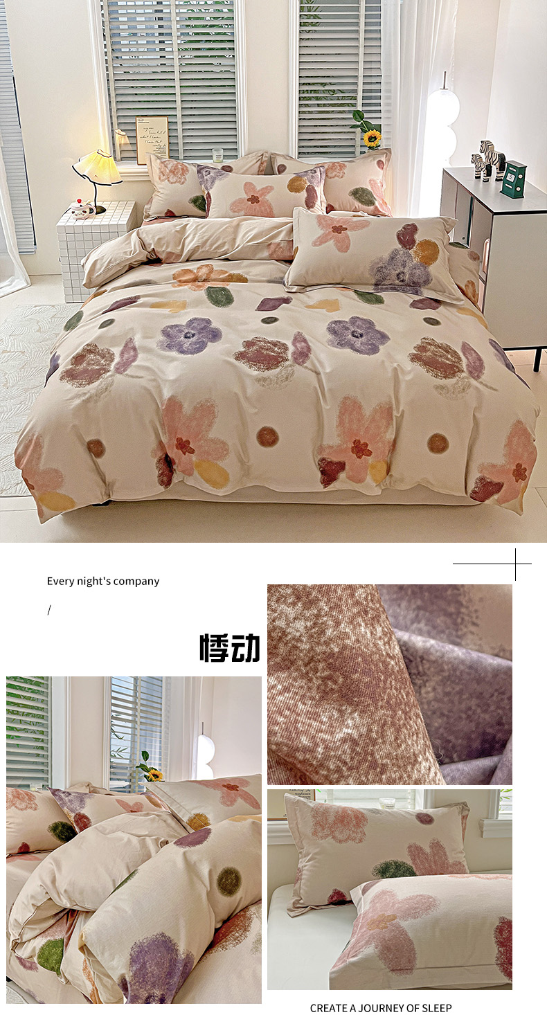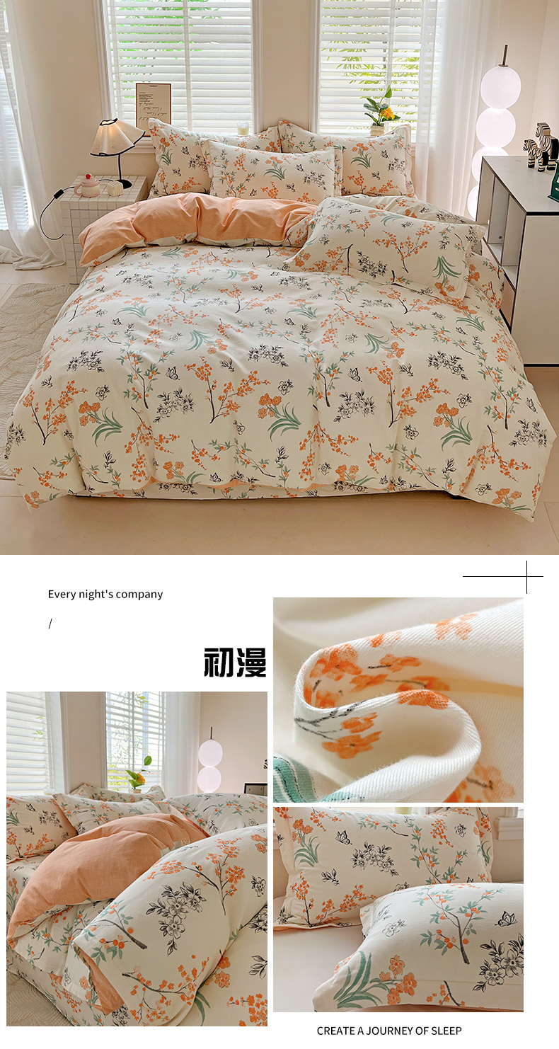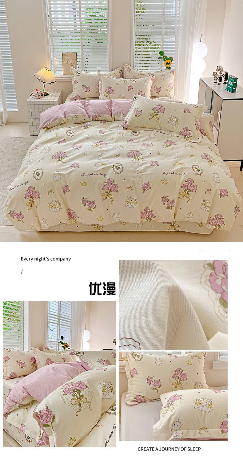 当前位置: 91家纺网 > 商品网购 > 床品套件 > 四件套 > 全棉普通四件套 > 依庭 2025新款高克重全棉纯棉磨毛印花四件套 清新花园