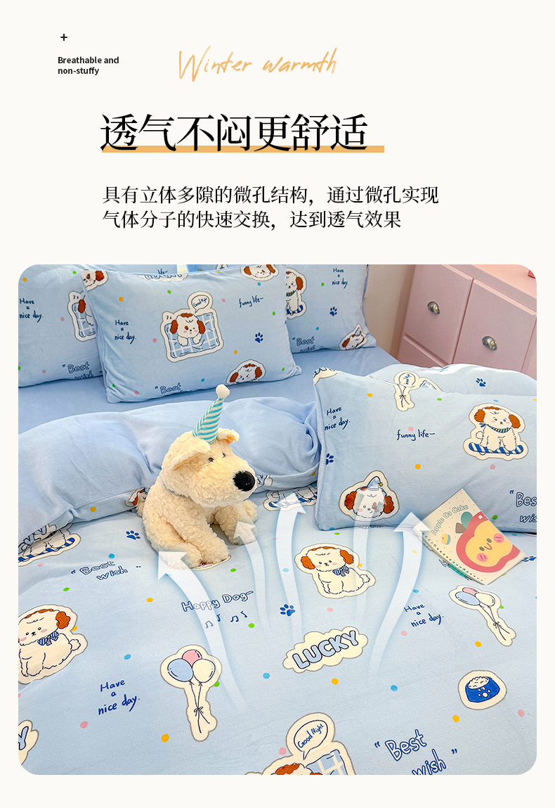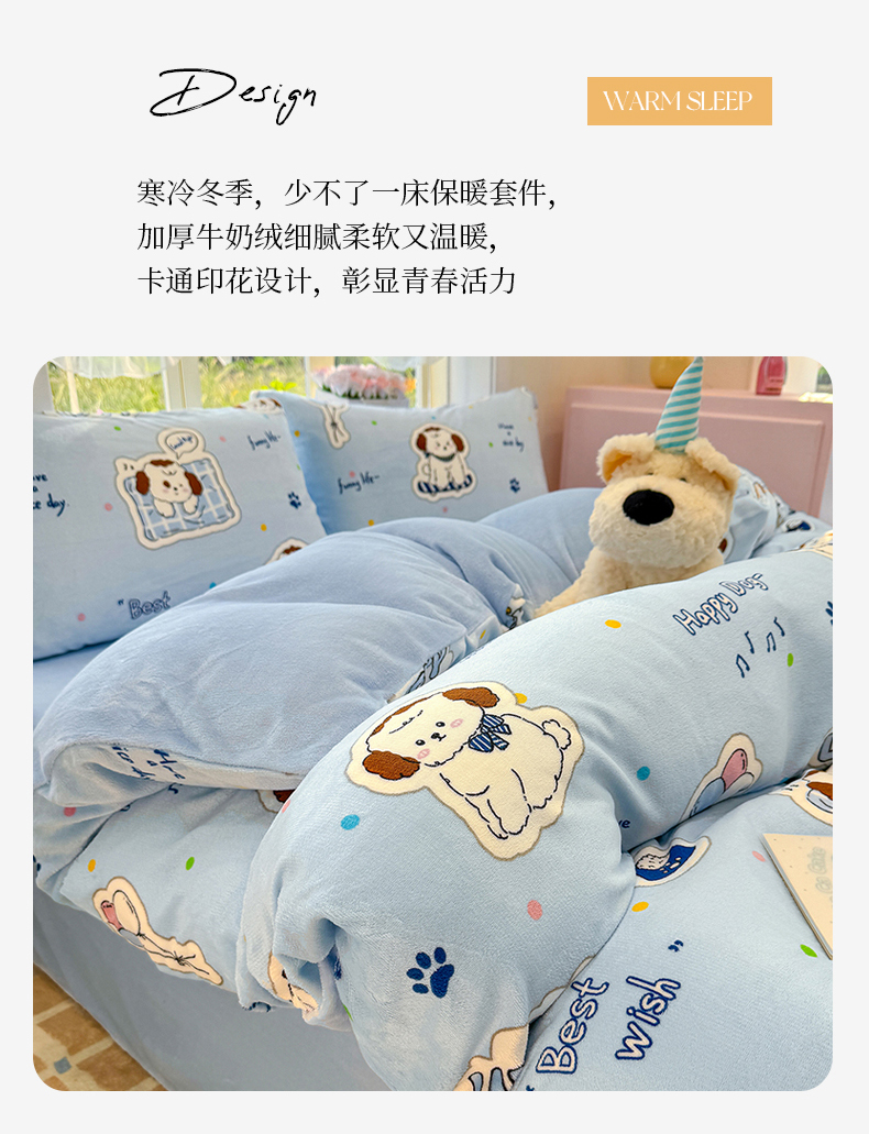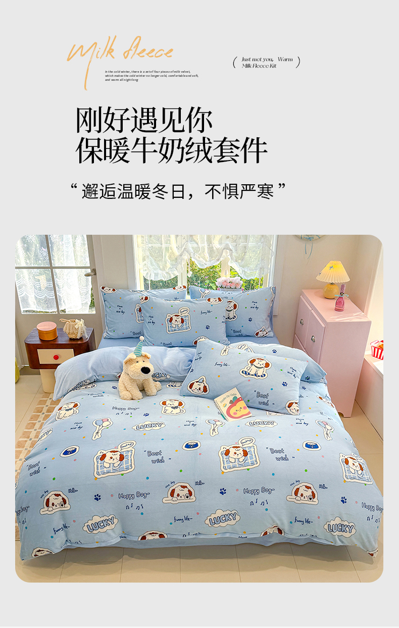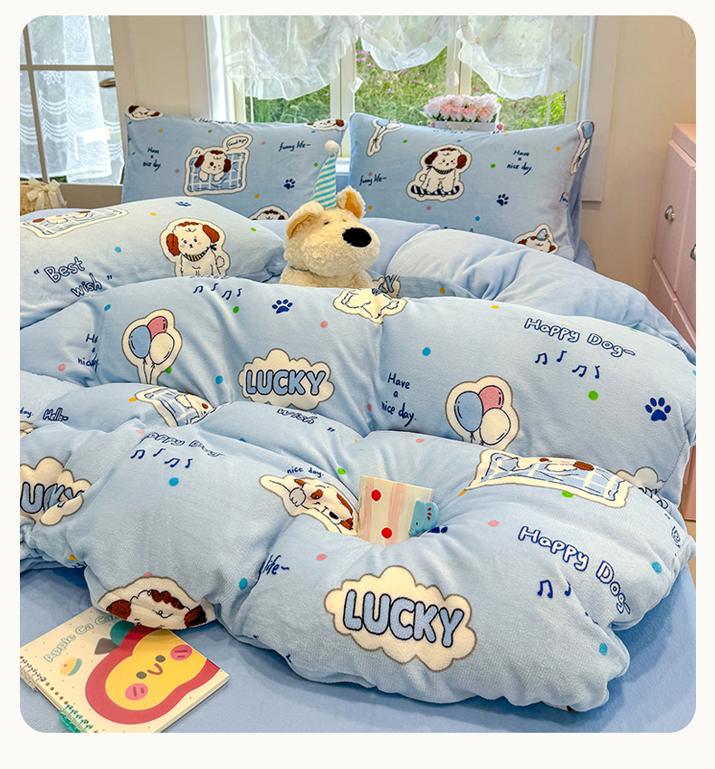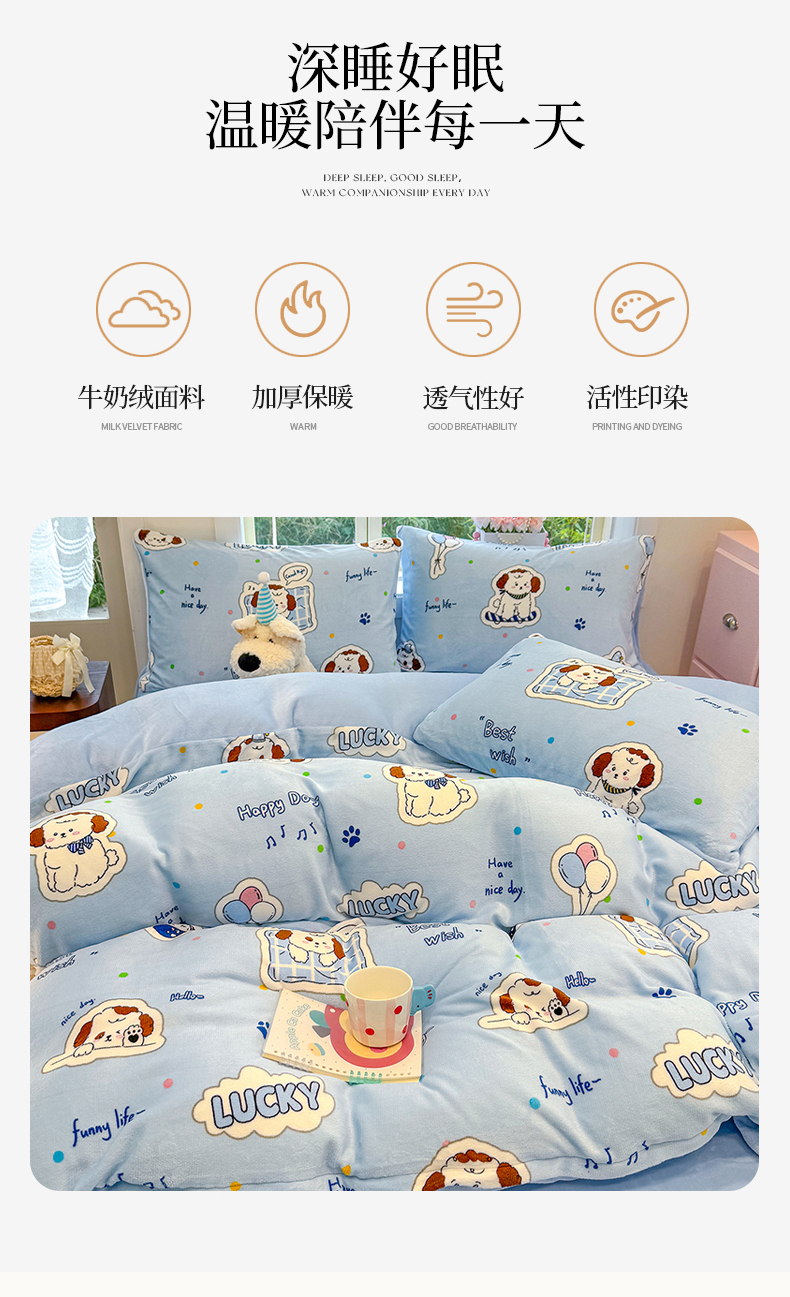当前位置: 91家纺网 > 商品网购 > 床品套件 > 四件套 > 牛奶绒四件套 > 枋梢家纺 2025新款加厚牛奶绒保暖四件套 幸运小狗