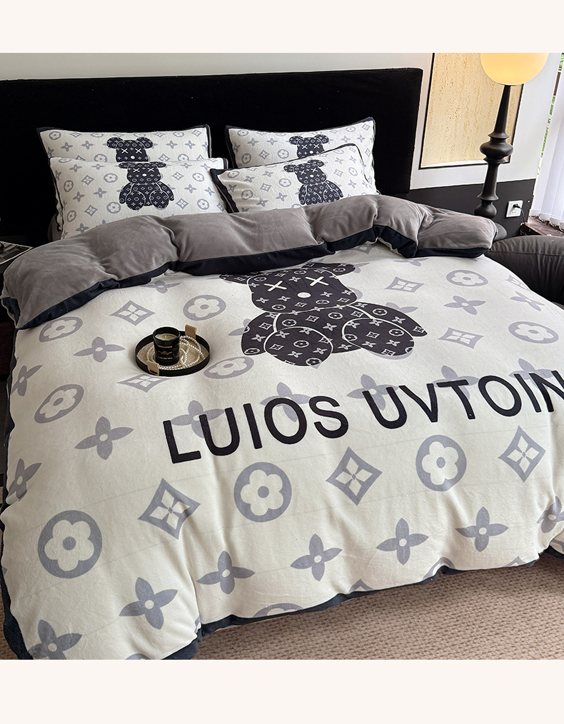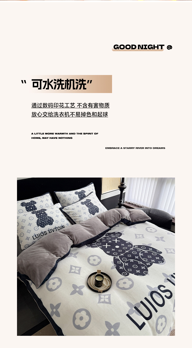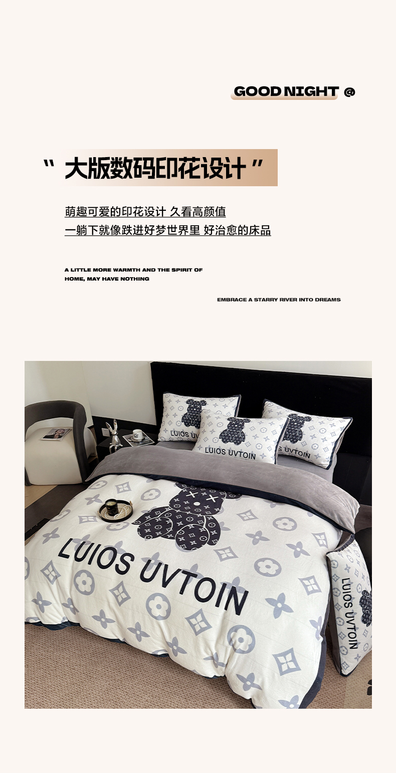 (总)摩卡(乐趣) 2024新款亲肤全棉网红轻奢四件套,H马,大H,粉红兔,黑白迪,黑白V,黑双C,咖古,咖色熊,蓝咖熊,毛绒熊,趴趴熊,七彩迪,小楂花,萌兔