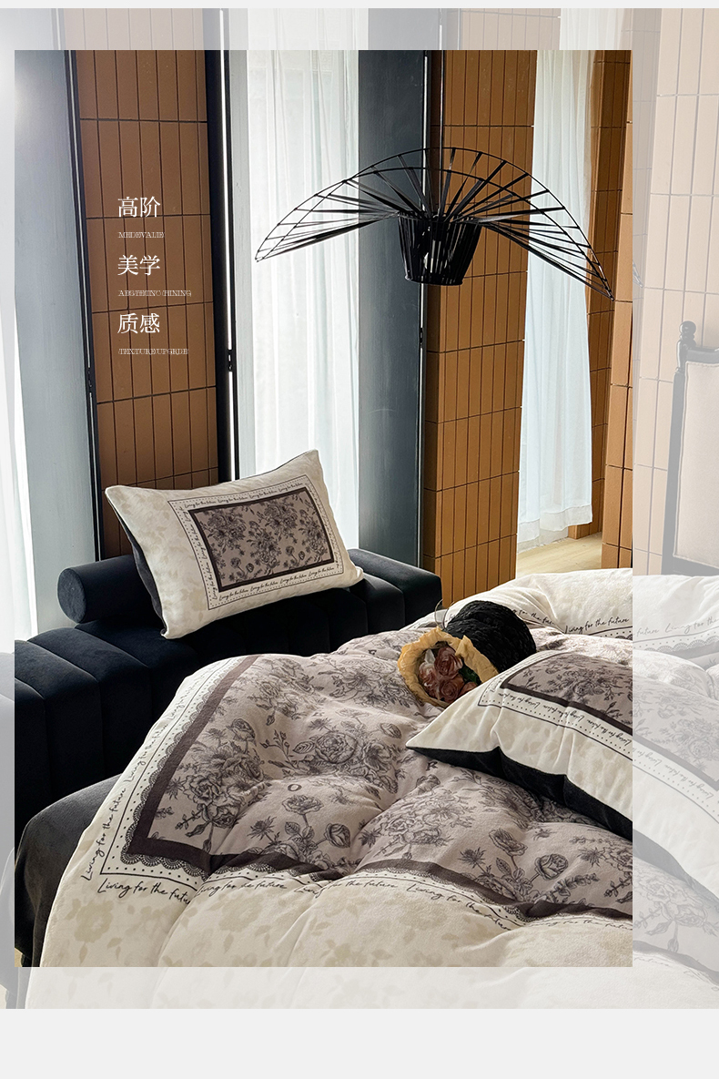 商品名称:Sweet dreams甜梦 2025新款数码印花加厚复古碎花牛奶绒四件套-摄影图 莱亚