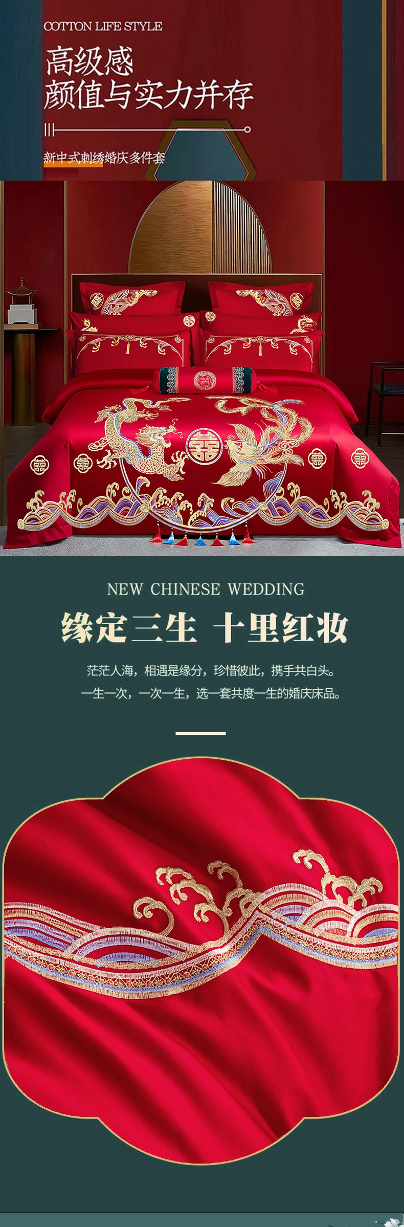 当前位置: 91家纺网 > 商品网购 > 床品套件 > 四件套 > 婚庆四件套 > 梵克保罗 2025秋冬新款全棉绣花婚庆四件套六件套靠垫 棉大龙凤
