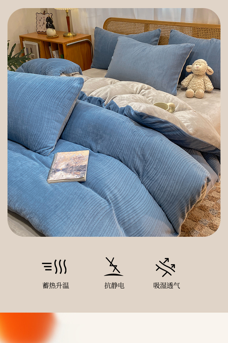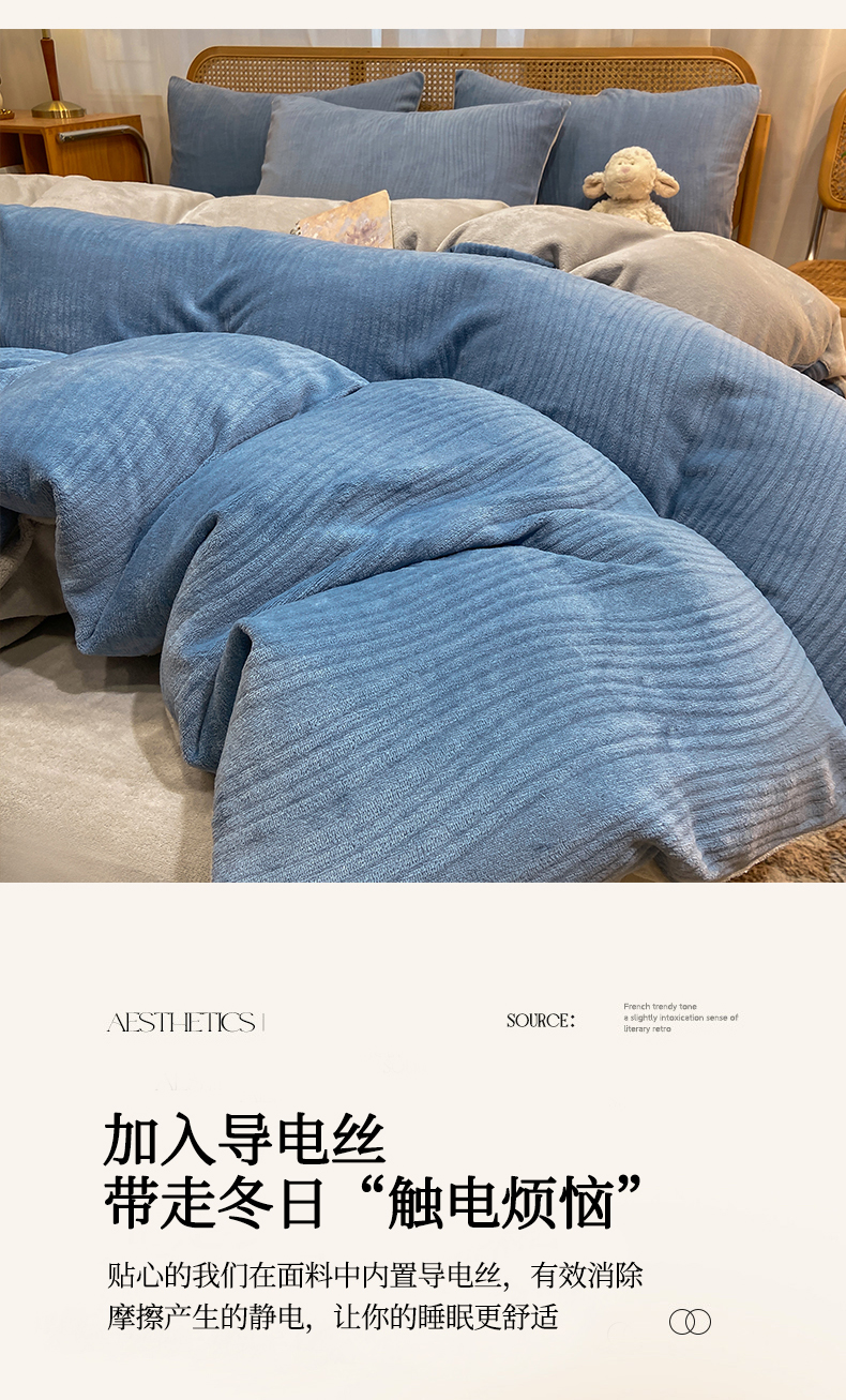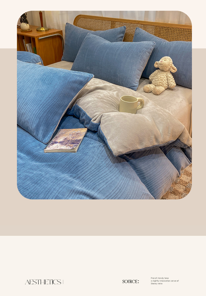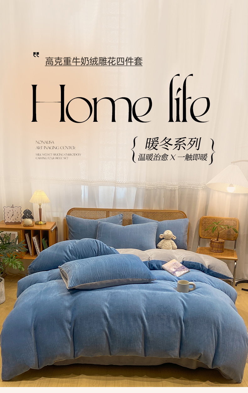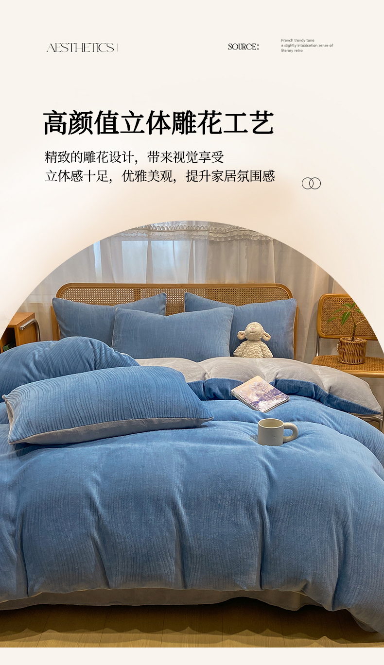 当前位置: 91家纺网 > 商品网购 > 床品套件 > 四件套 > 牛奶绒四件套 > 灰鲸 2025新款高克重牛奶绒雕花简约纯色四件套 温妮-宾利蓝+纳多灰