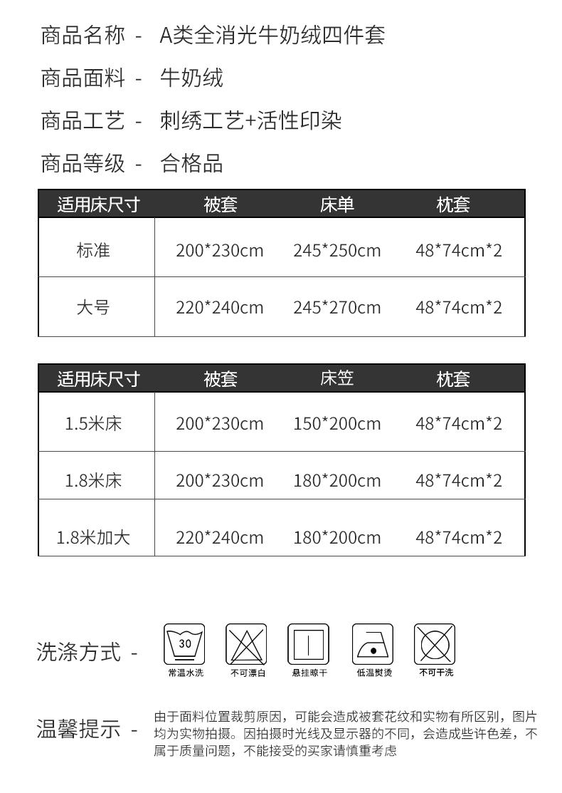 【床笠款】1.8四件套-被套200x230 | ¥200.00 |