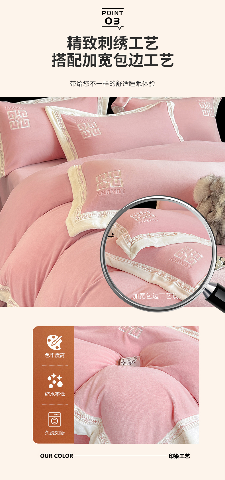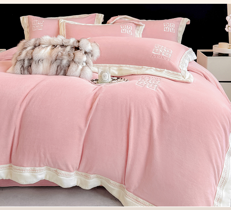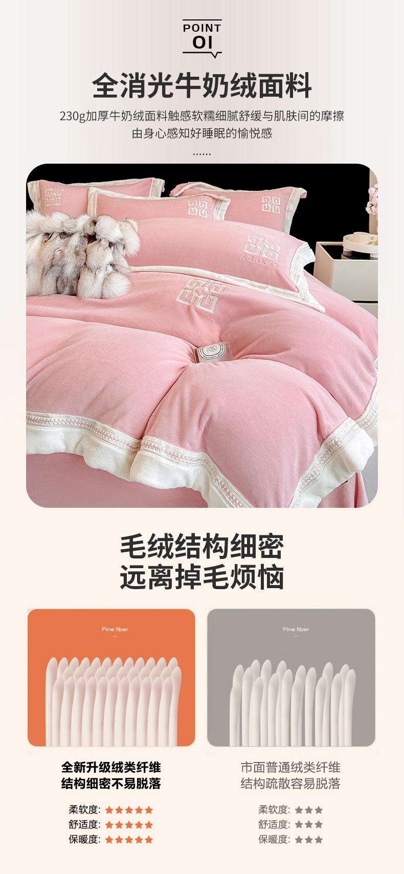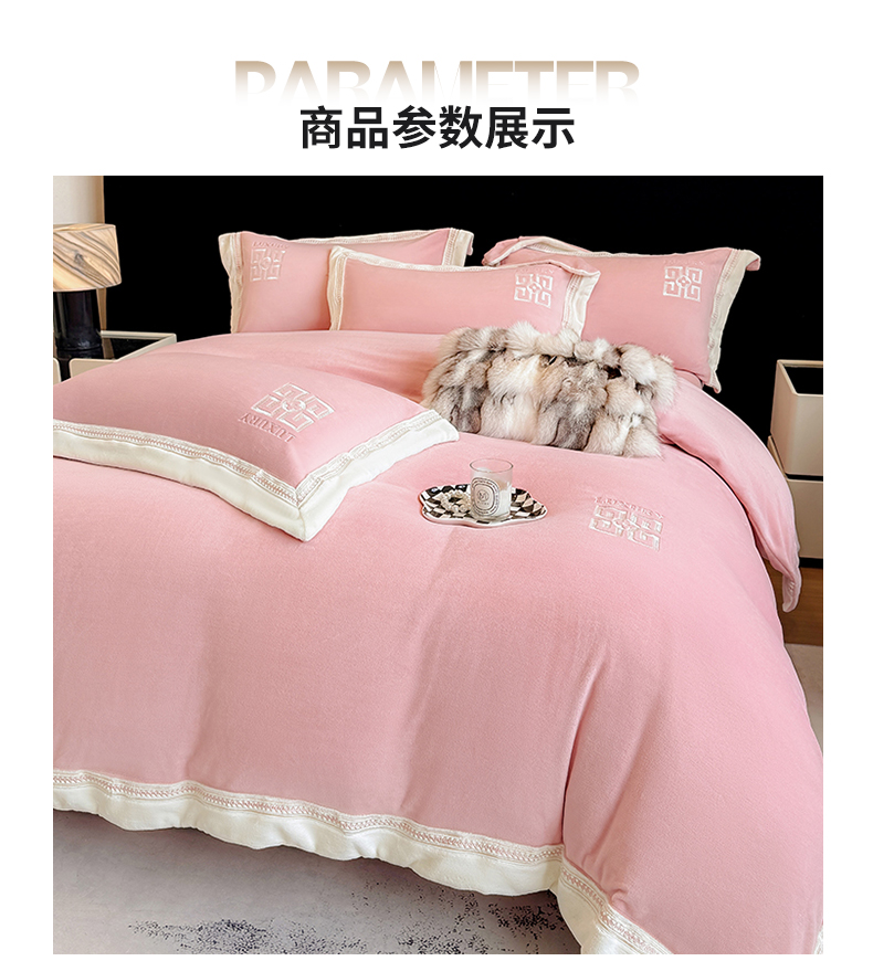 当前位置: 91家纺网 > 商品网购 > 床品套件 > 四件套 > 牛奶绒四件套 > 家居1号家纺 2025新款全消光牛奶绒刺绣圣玛丽四件套 圣玛丽-粉豆沙