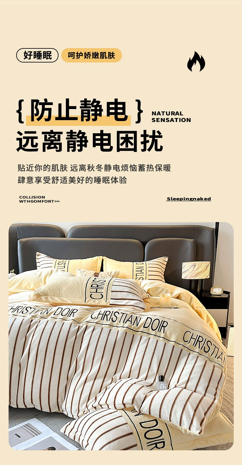 (总)富宁家纺 2025新款亲肤舒适牛奶绒8斤四件套-夜曲