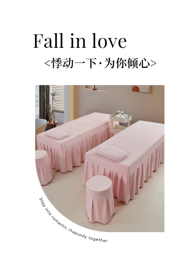 (总)莉人坊 2023至尊丽人裙摆彩棉麻美容床罩,至尊丽人粉色+米黄,至尊丽人海蓝+米黄,至尊丽人湖蓝+米黄,至尊丽人驼色+米黄,至尊丽人紫色+米黄,至尊丽人灰色+米黄,至尊丽人酒红+米黄