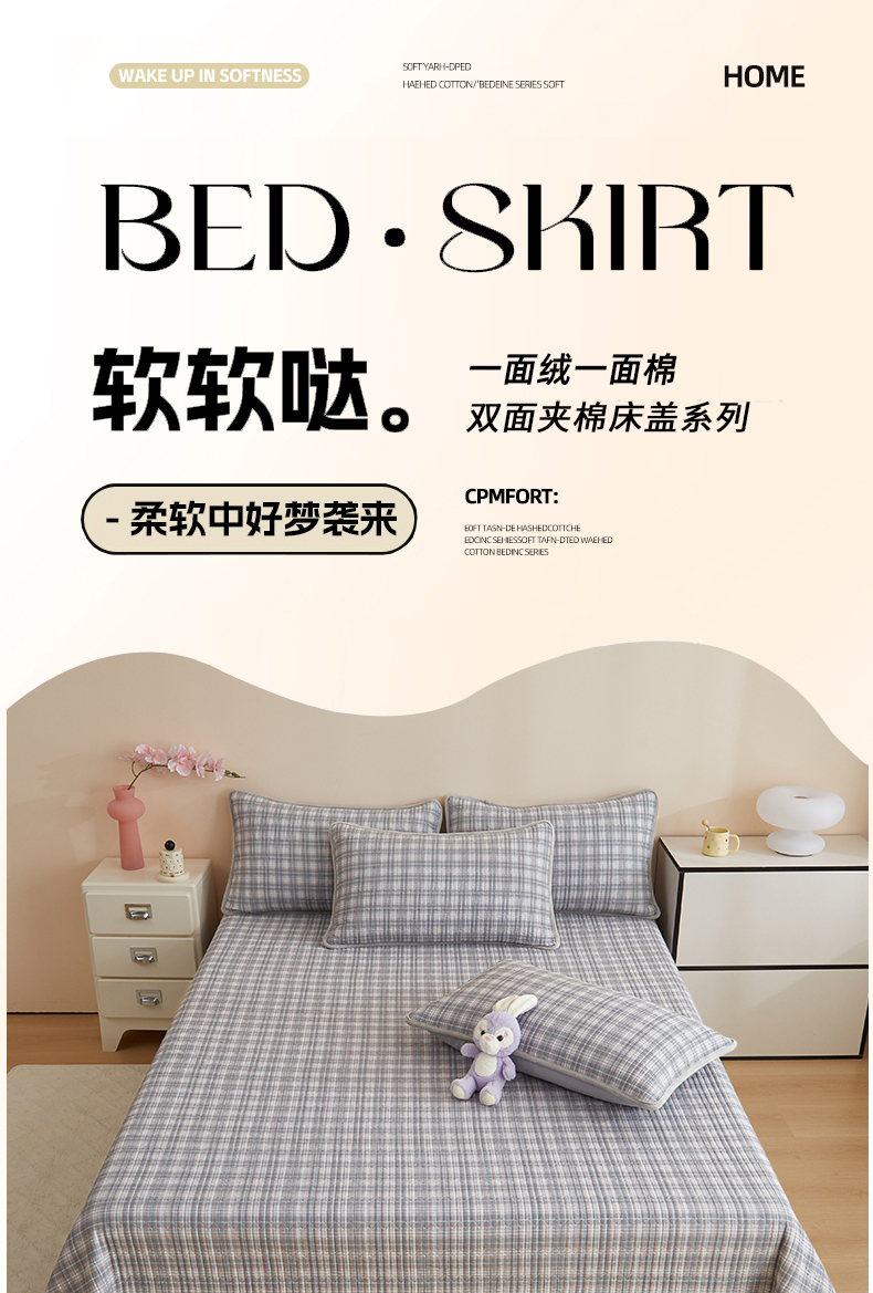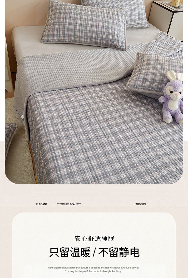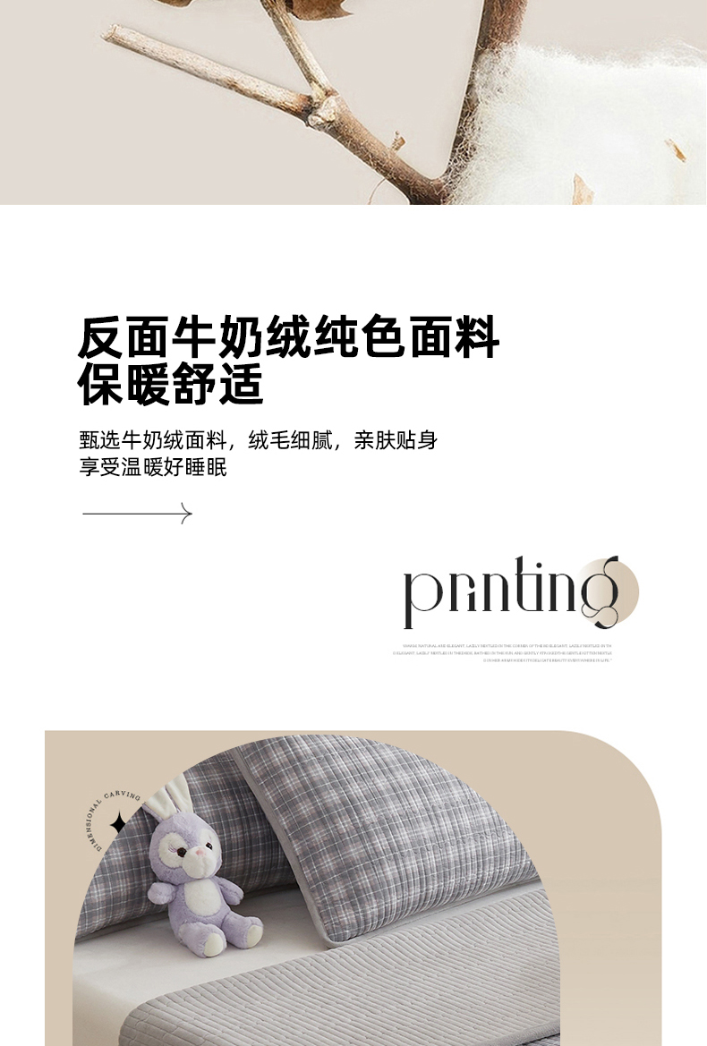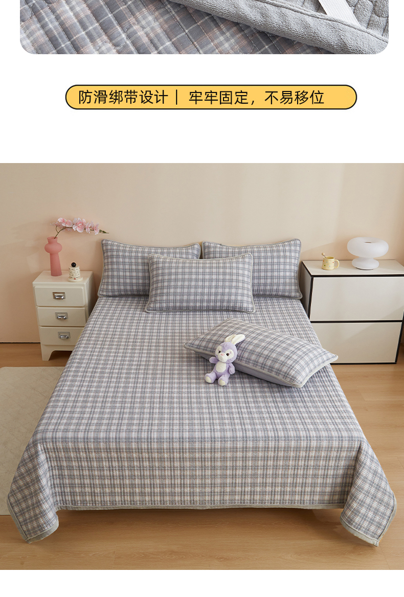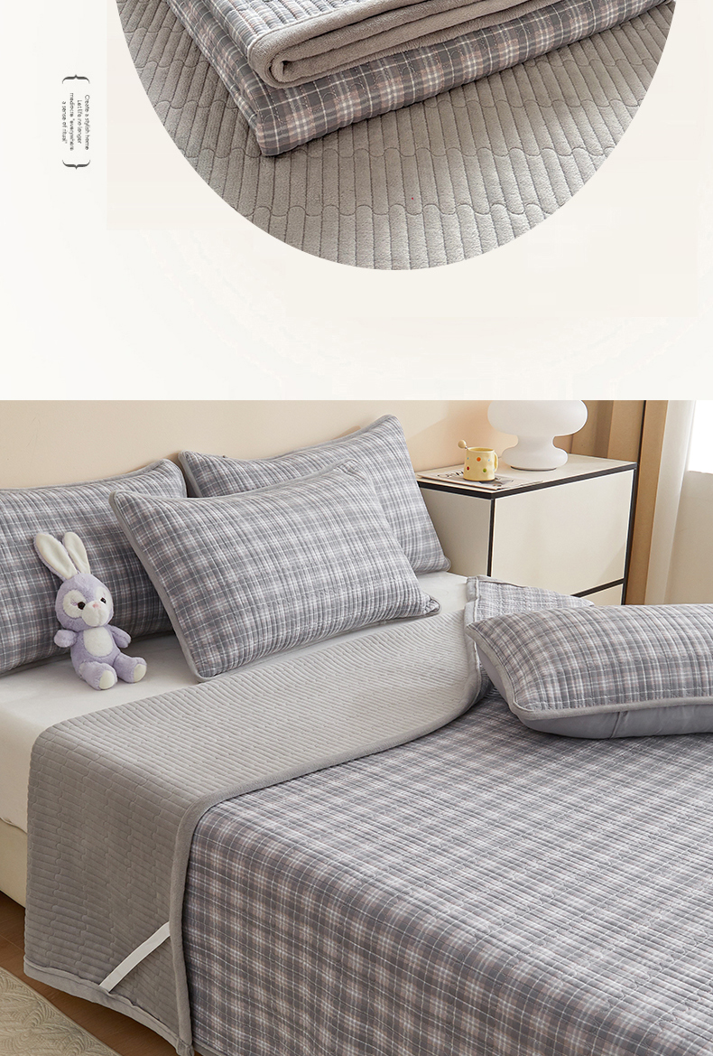 • 91家纺网 家纺一手货源 找家纺 金艾草 2025新款A版全棉印花B版加厚牛奶绒单件棉加绒床盖三件套榻榻米垫 时光灰-绒