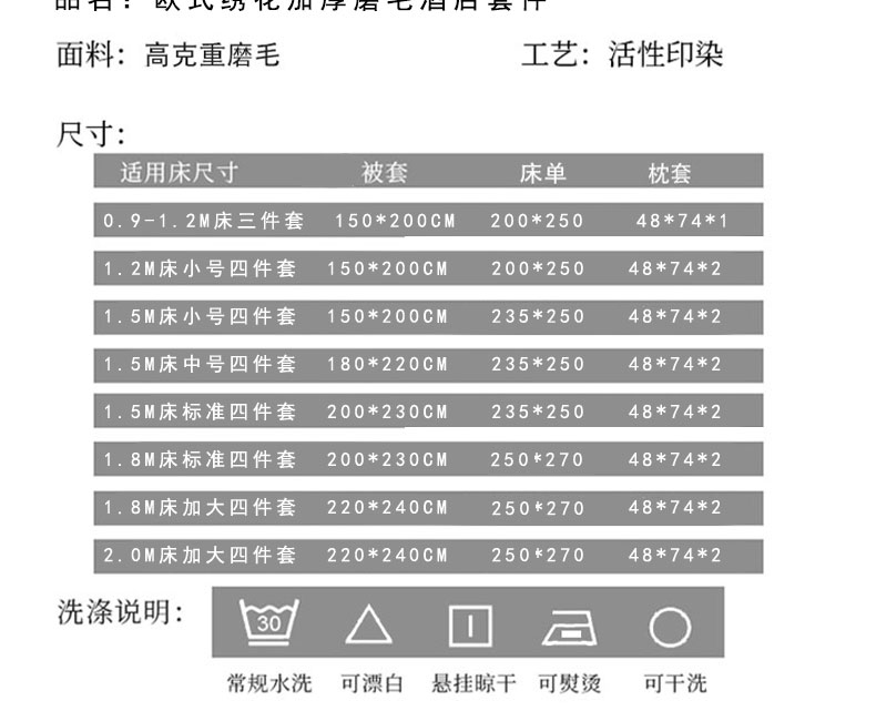 1.8m床笠款四件套被套200x230cm | ¥89.00 |