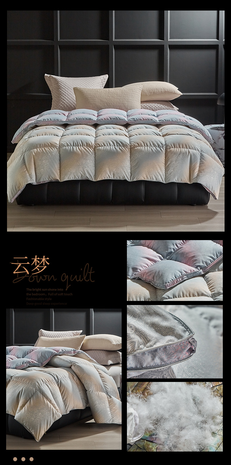 • 91家纺网 家纺一手货源 找家纺 (总)暖羽屋羽绒馆 2025新款白鹅绒丝被芯  羽绒丝被 羽毛被子 婚庆羽绒被 双人加厚冬被,恒运莱 金-角度一,恒运莱 金-角度二