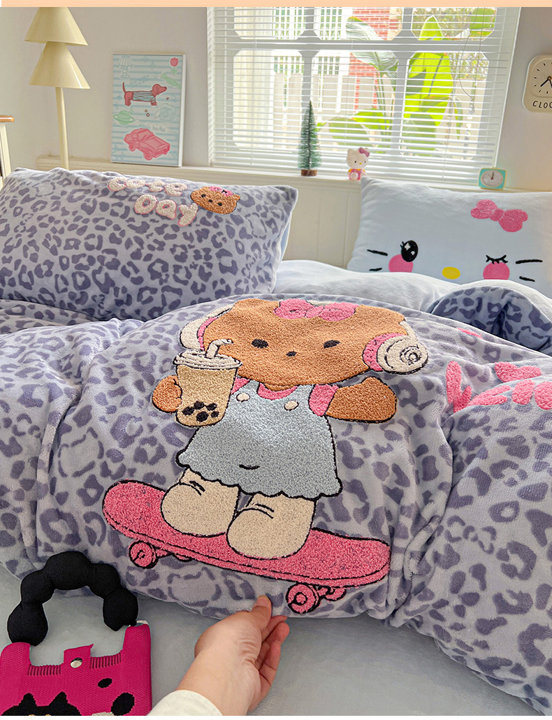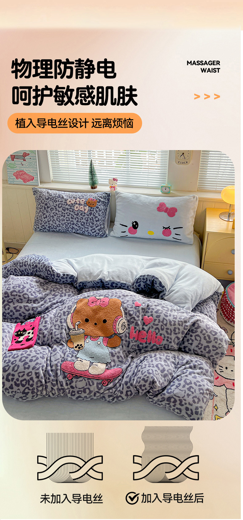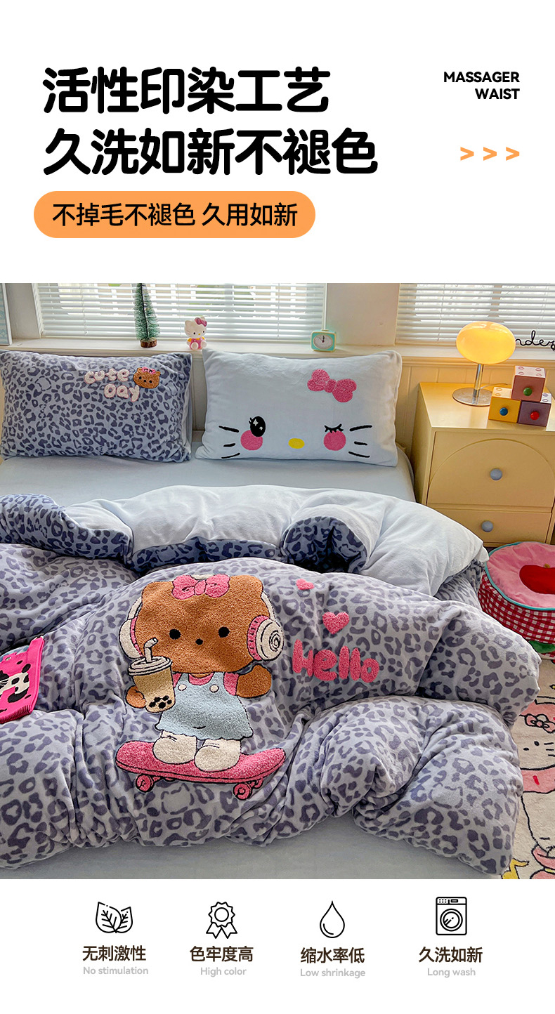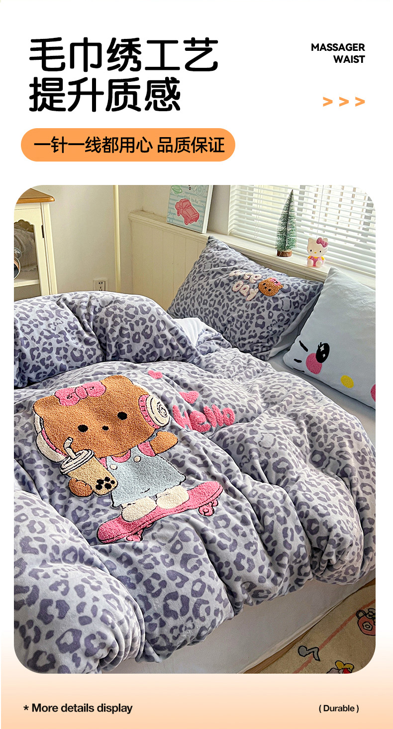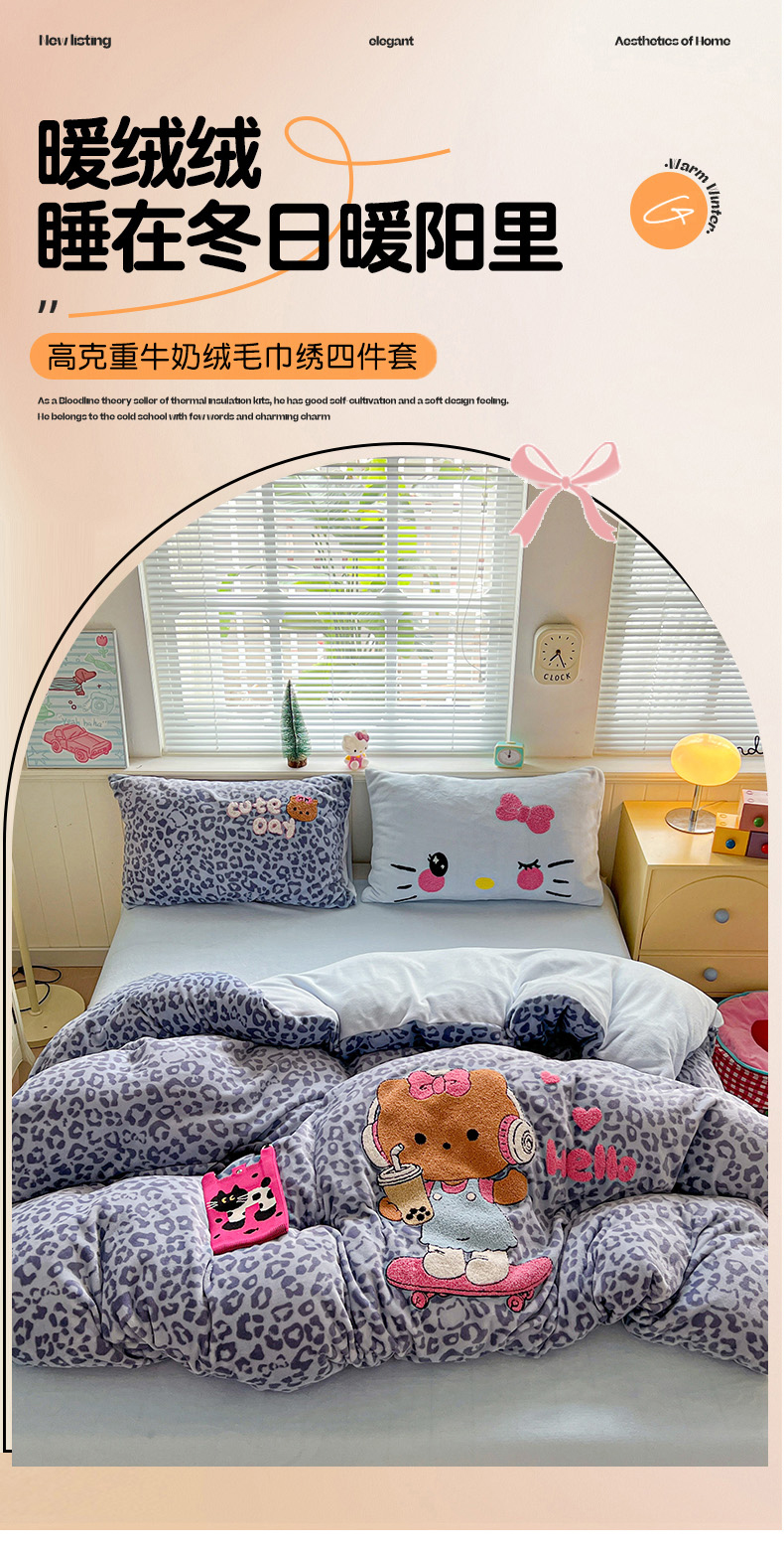 当前位置: 91家纺网 > 商品网购 > 床品套件 > 四件套 > 牛奶绒四件套 > 优选 2025新款高克重200g牛奶绒数码印花毛巾绣卡通四件套直播爆款电商爆款 黑皮蓝
