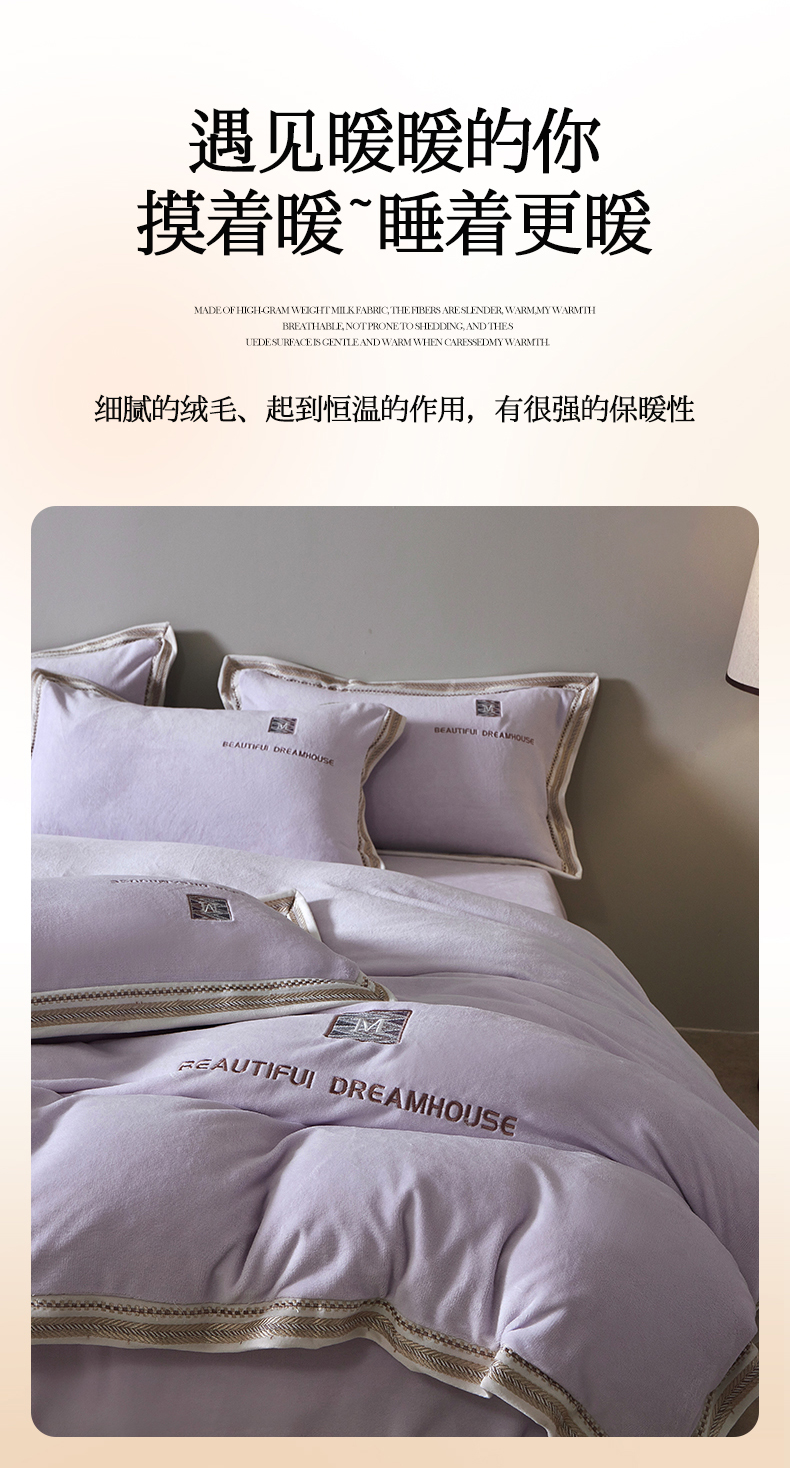 (总)优悦生活馆 2025新款纯色高克重牛奶绒刺绣四件套-理享家