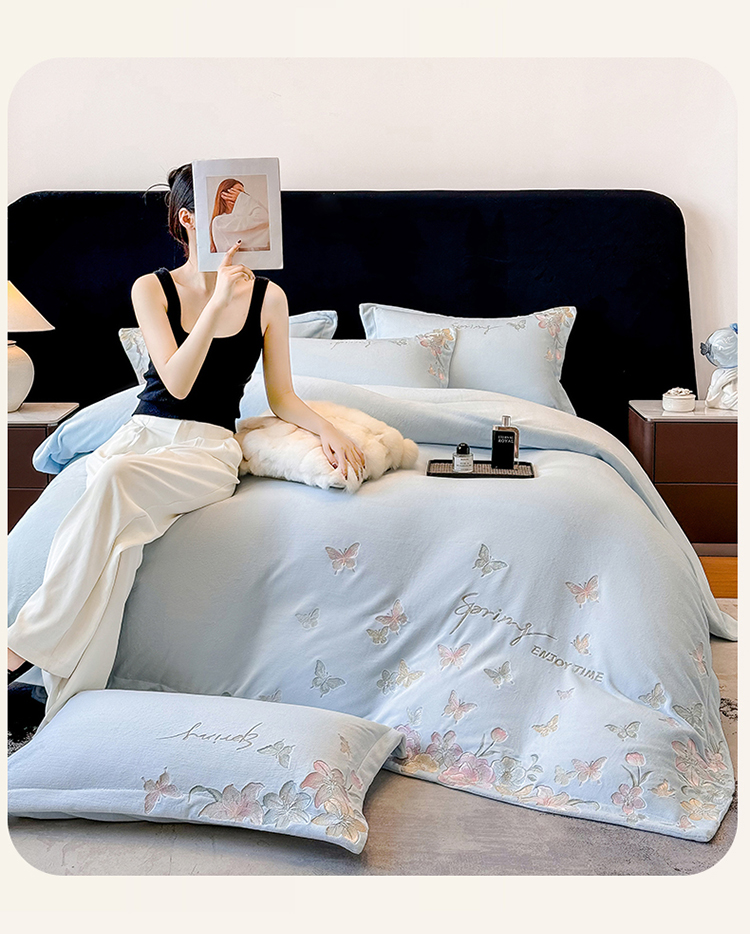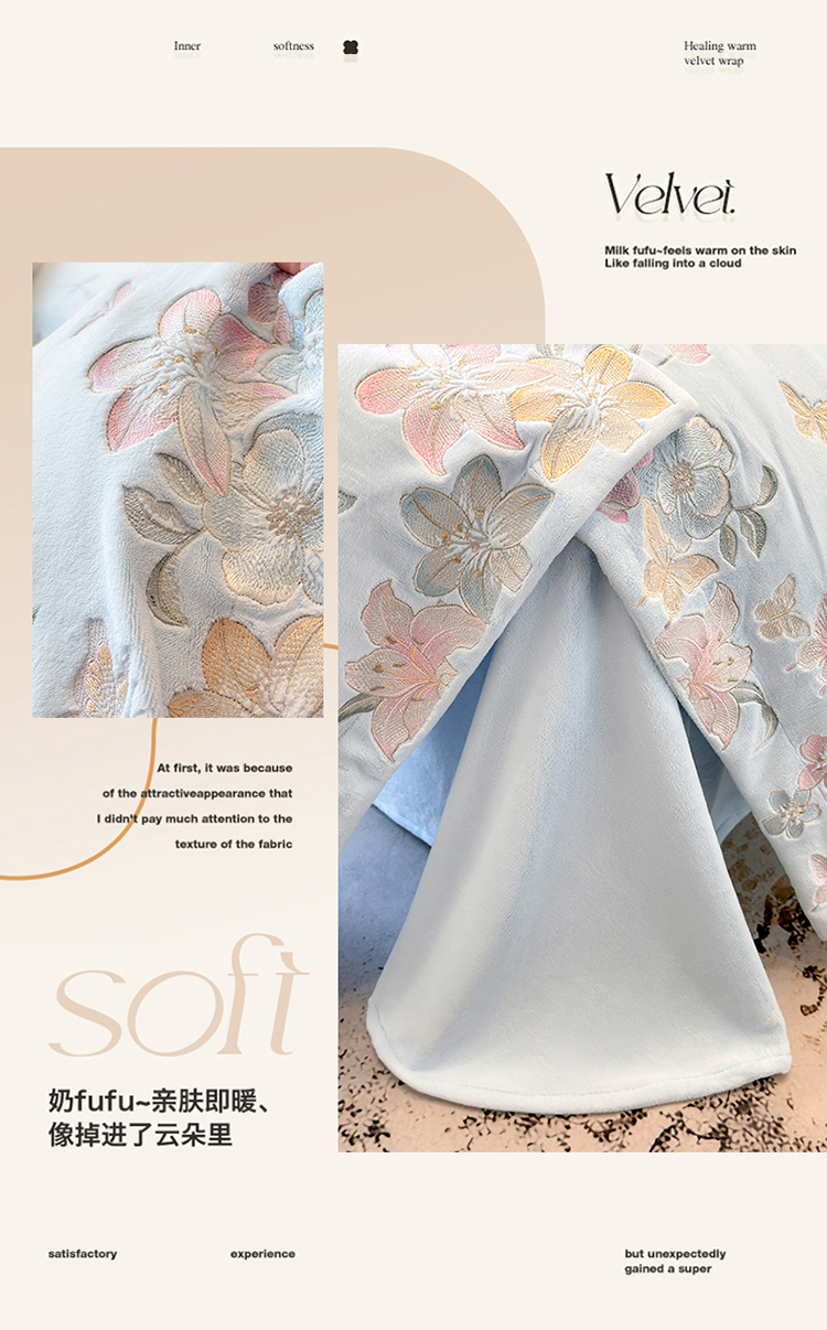 当前位置: 91家纺网 > 商品网购 > 床品套件 > 四件套 > 牛奶绒四件套 > 高档手提包9斤重超厚绵密慕斯有肌氧绒刺绣四件套秋冬加厚保暖牛奶绒宝宝绒床上用品 天空蓝-绒蝶屿-A类绵密慕斯有肌氧绒