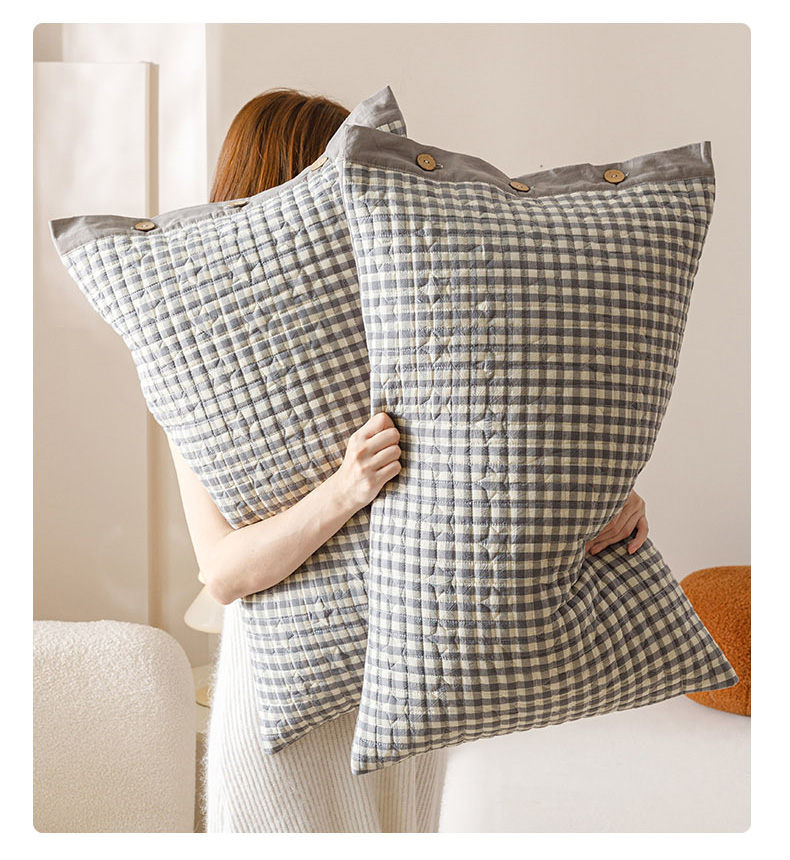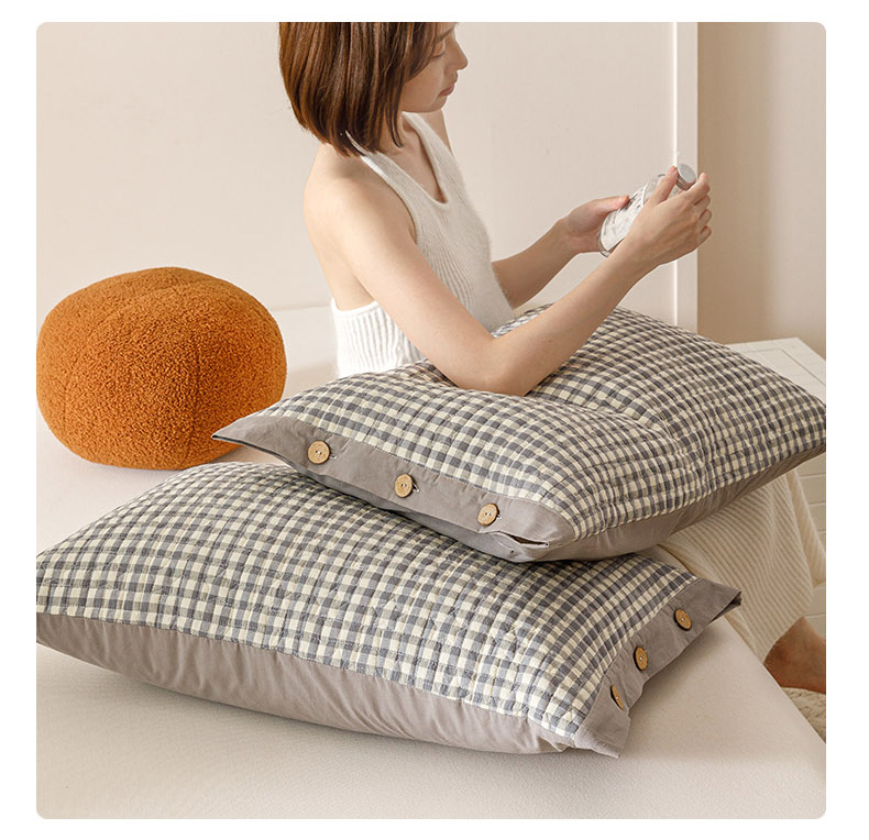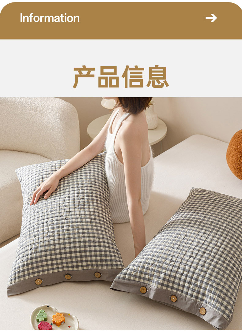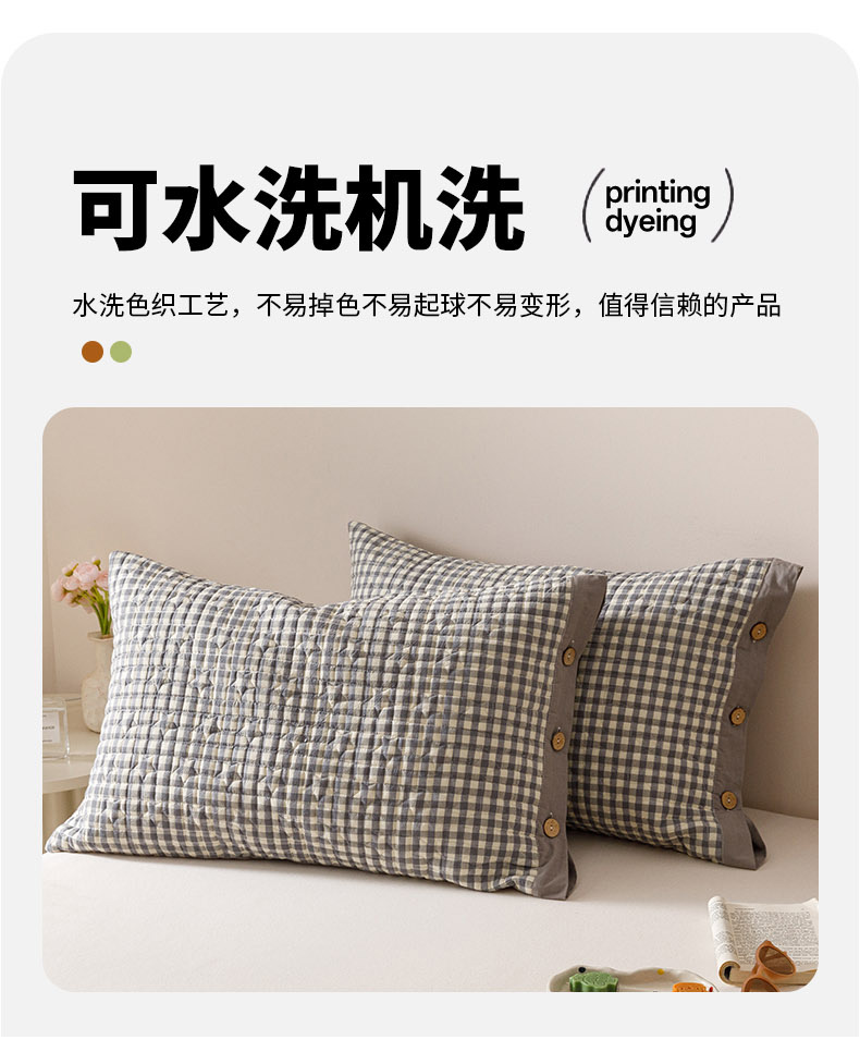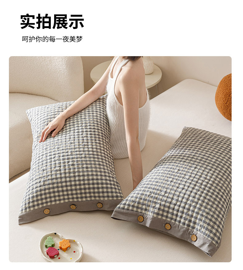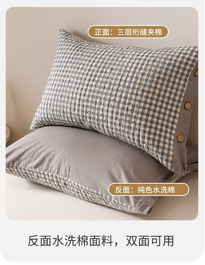商品名称:爱港家纺 2025新款全棉色织水洗加厚绗缝夹棉防头油双面枕头套单品枕套单件枕套 格温特灰