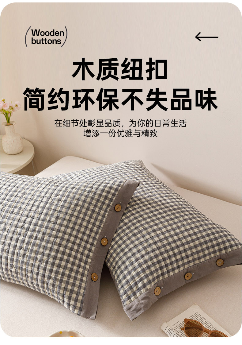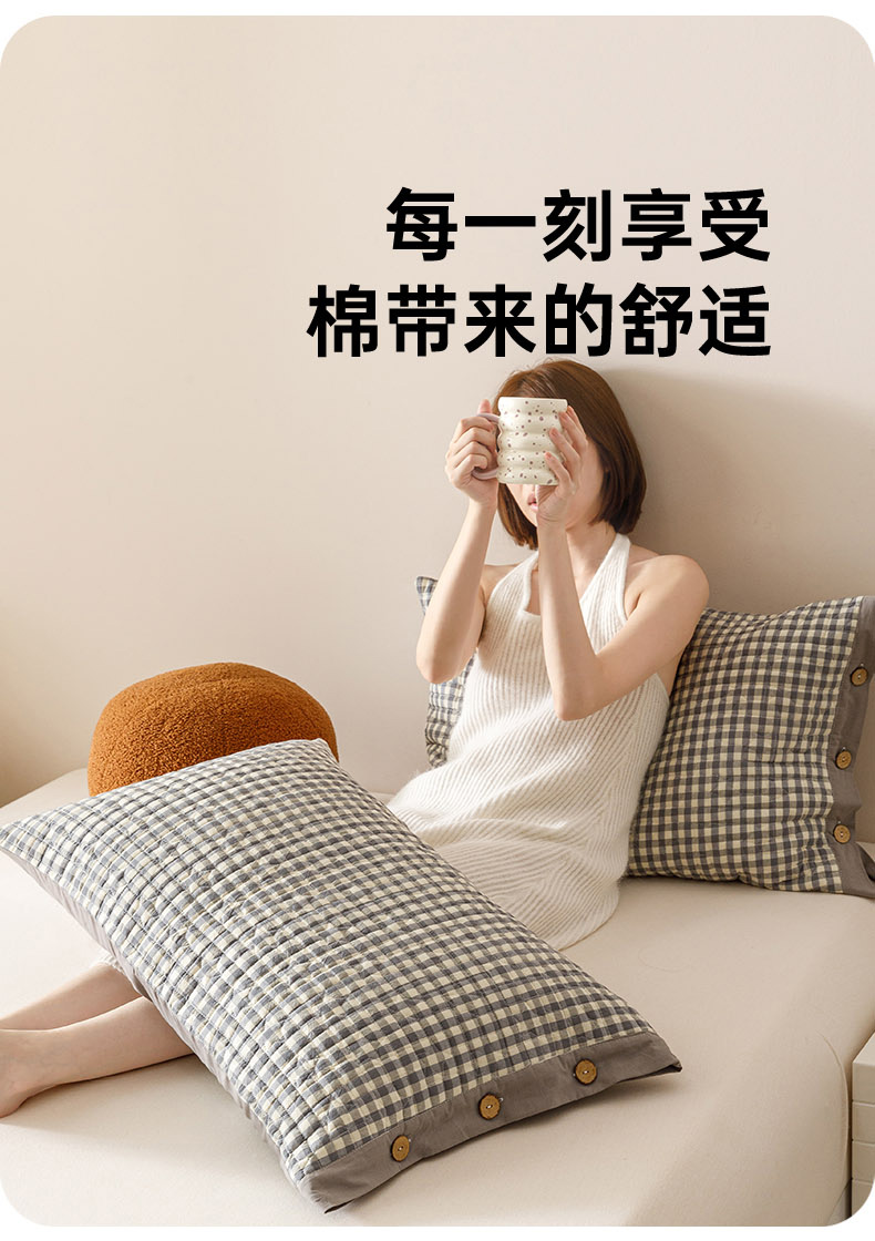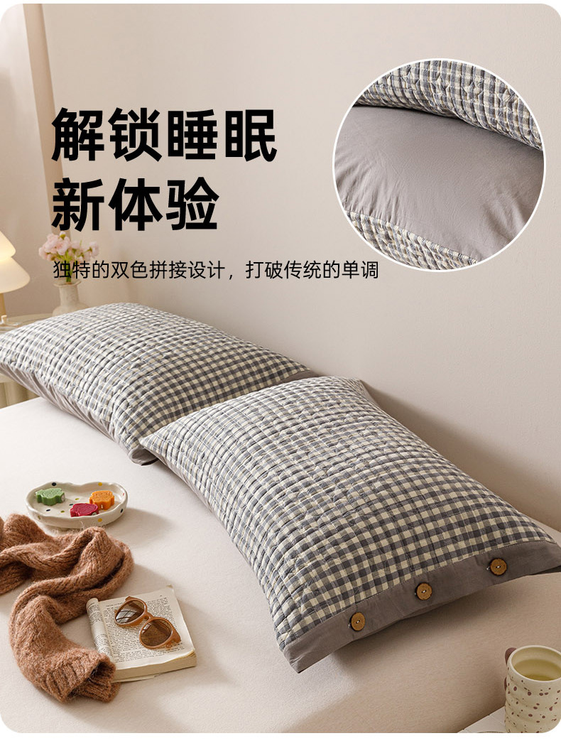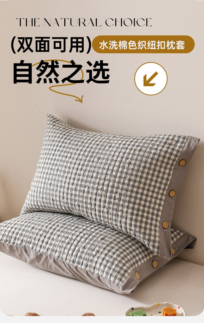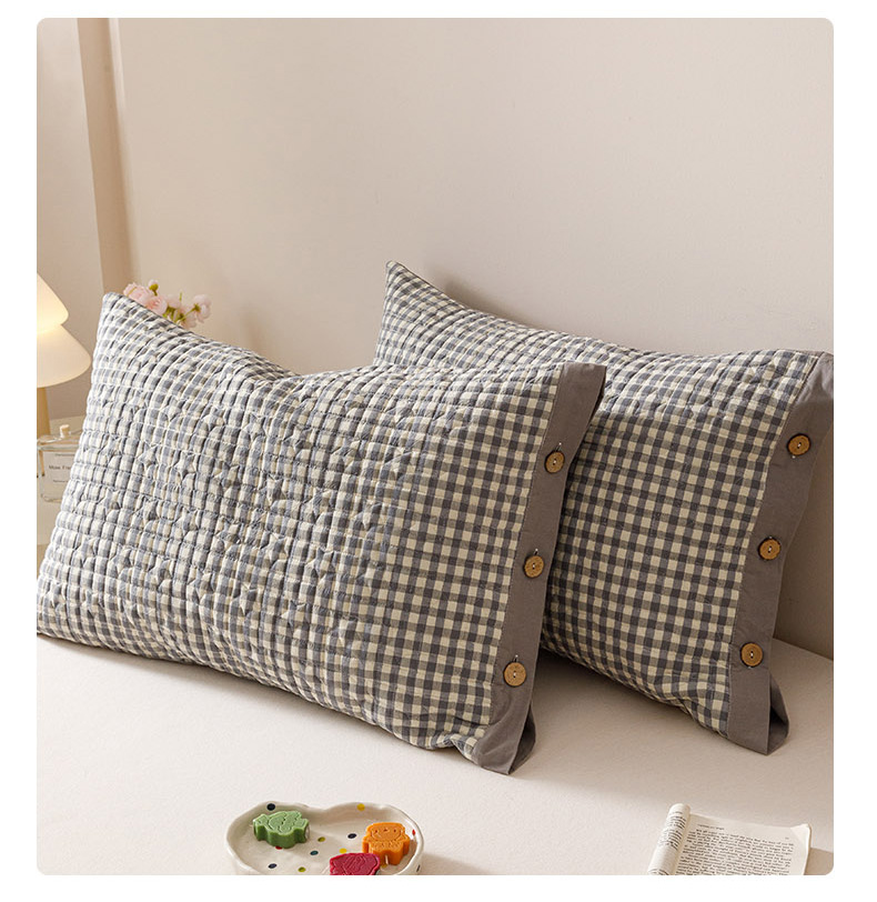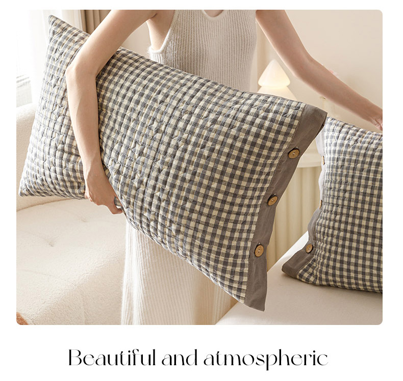 商品名称:爱港家纺 2025新款全棉色织水洗加厚绗缝夹棉防头油双面枕头套单品枕套单件枕套 格温特灰