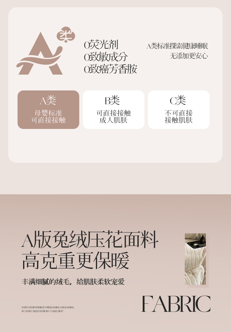 商品名称:(总)鼎飞家纺 2025新款A类兔绒压花+全消光牛奶绒四件套--贝尔雅系列