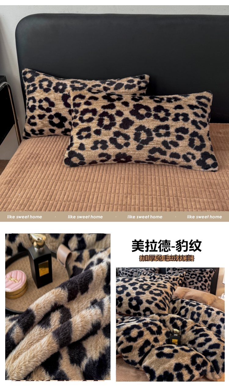 (总)乐窝家纺仓储 2025新款250g高克重美拉德兔毛绒兔兔绒牛奶绒单床笠床笠三件套床罩 【床笠日销50单,优惠2-5元】,豹纹咖-主推,豹纹灰,蝶舞,虎纹咖,花语,轮回