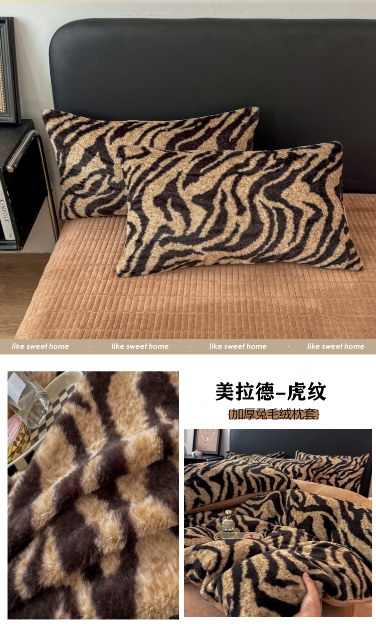 (总)乐窝家纺仓储 2025新款加厚保暖兔毛绒牛奶绒单品枕套单件枕头套-美拉德系列,豹纹灰,豹纹咖,蝶舞,虎纹,花语,轮回