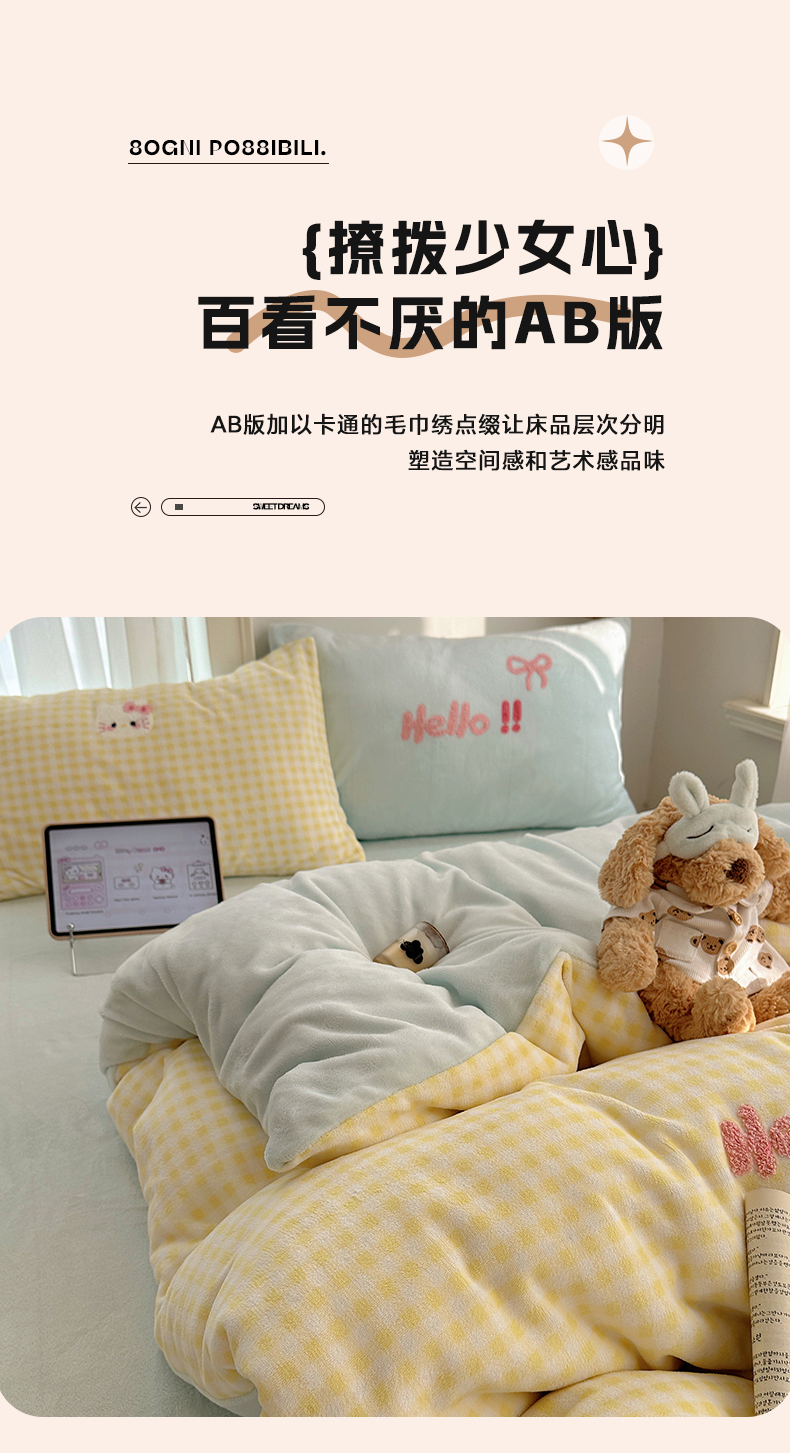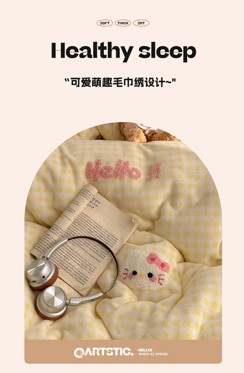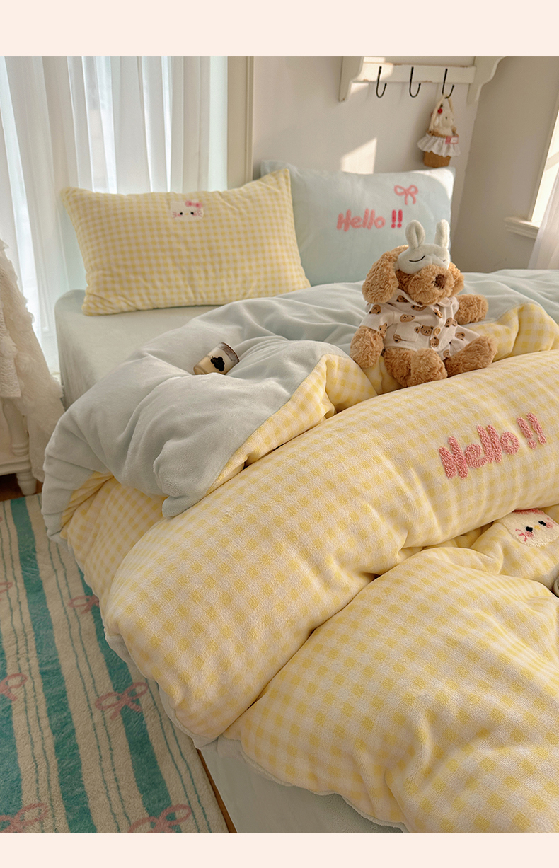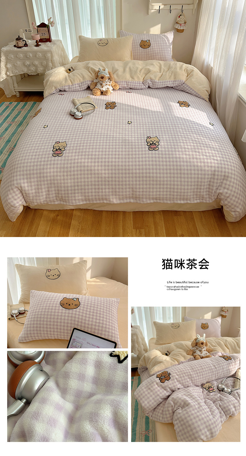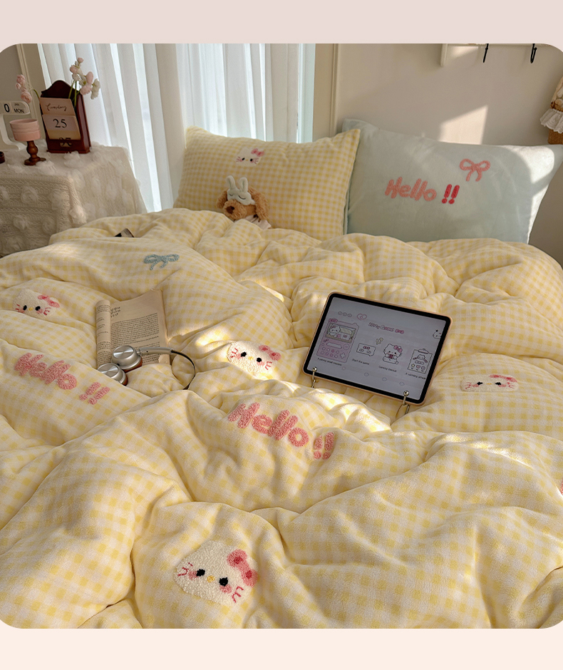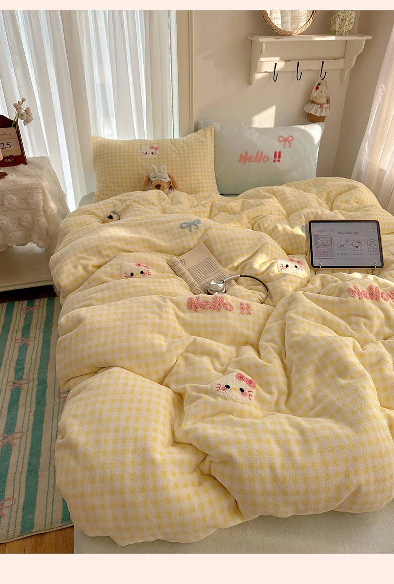 当前位置: 91家纺网 > 商品网购 > 床品套件 > 四件套 > 牛奶绒四件套 > 韩都家居 2025新款ins毛巾绣猫咪系列加厚牛奶绒四件套 哈喽猫咪