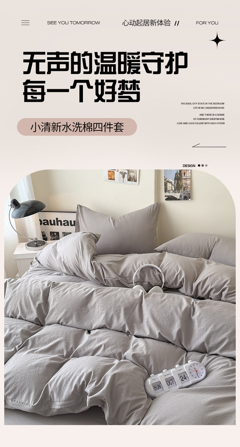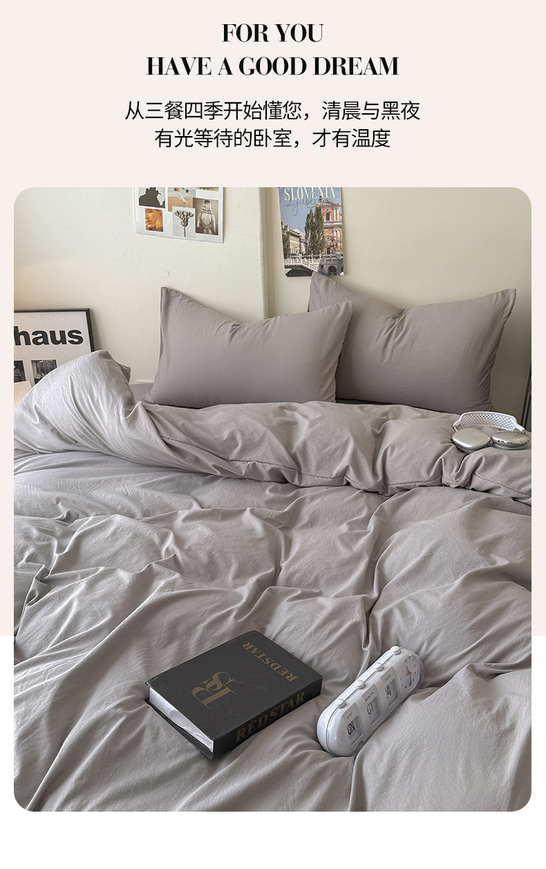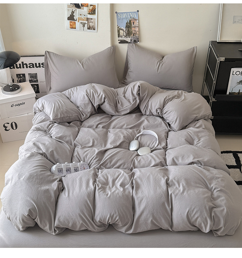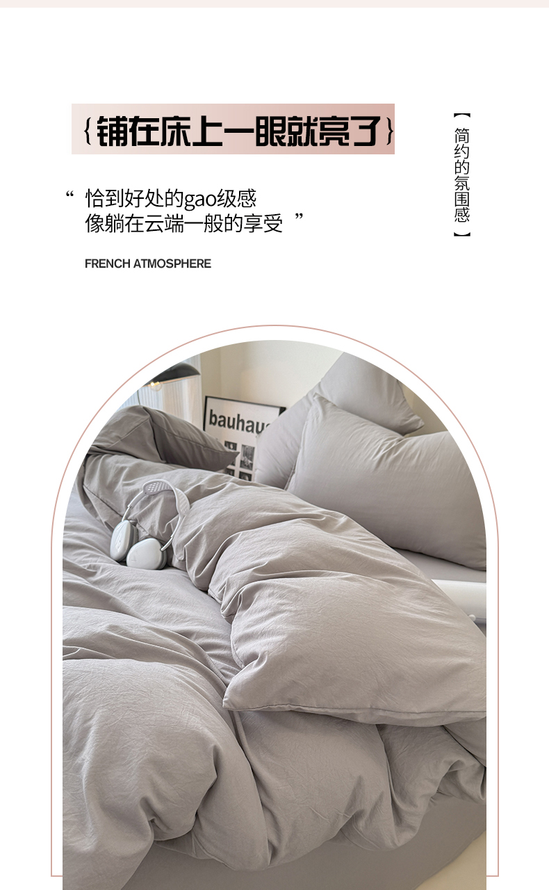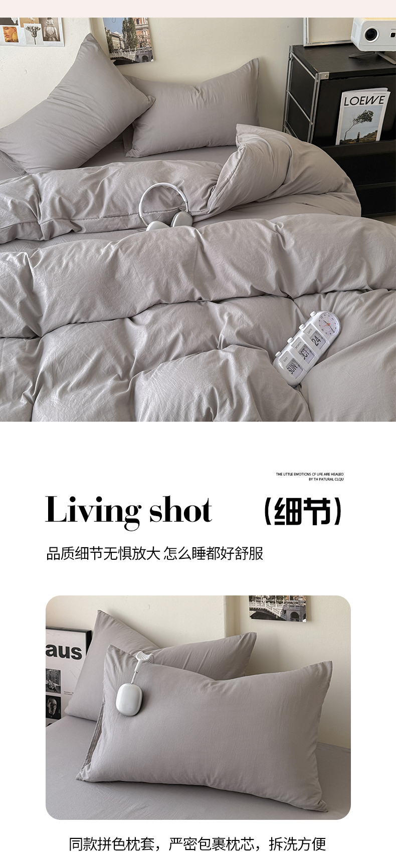 当前位置: 91家纺网 > 商品网购 > 床品套件 > 四件套 > 其它四件套 > 桔禾家纺 2025新款ins风纯色水洗棉四件套双拼水洗棉学生三件套四件套 浅灰