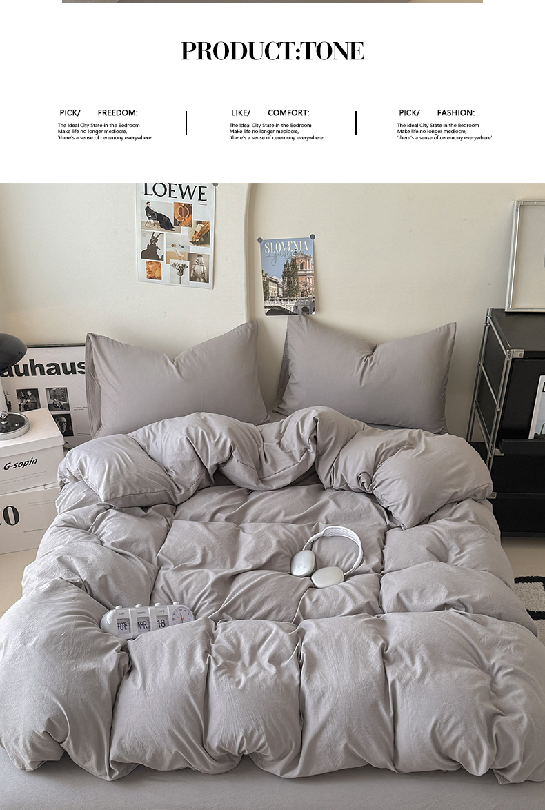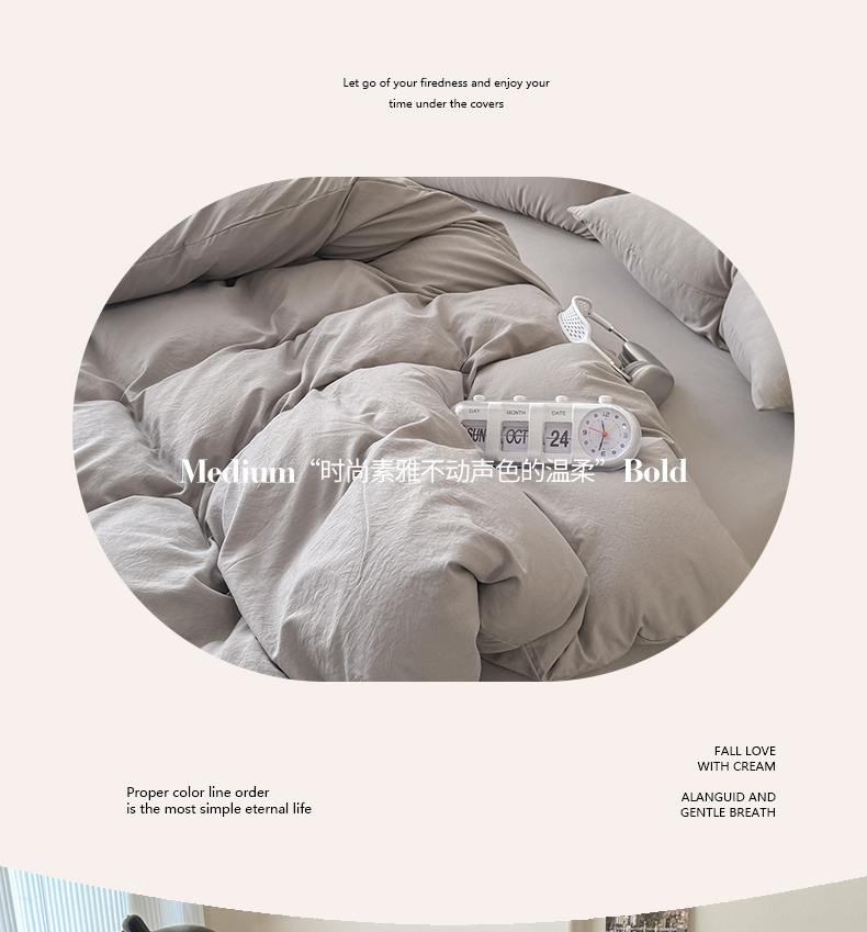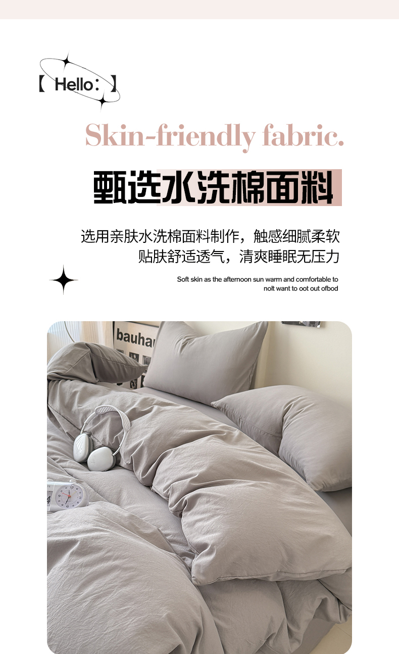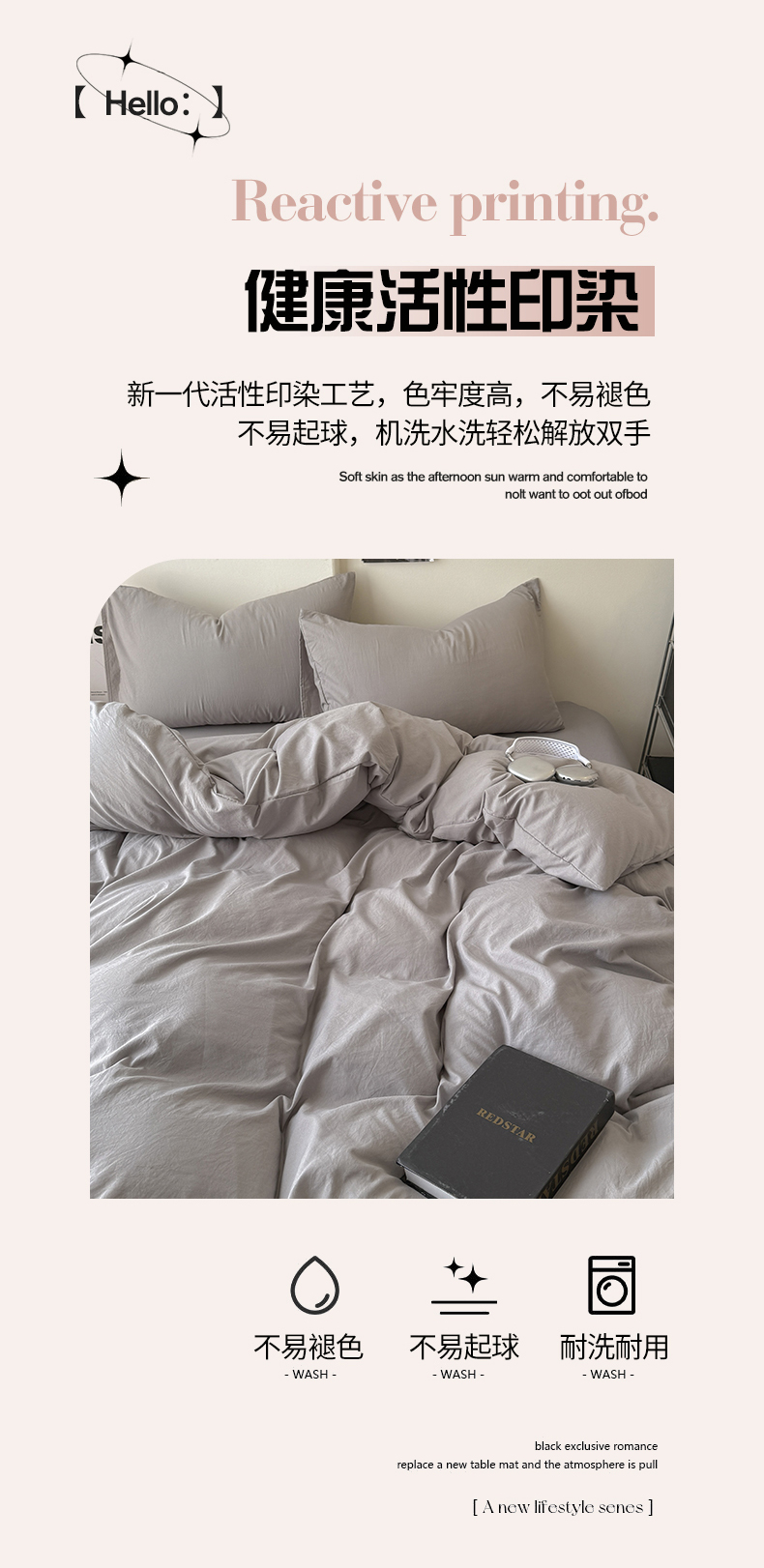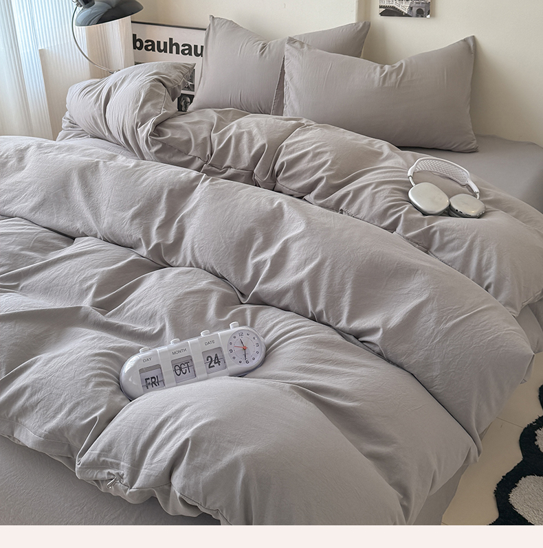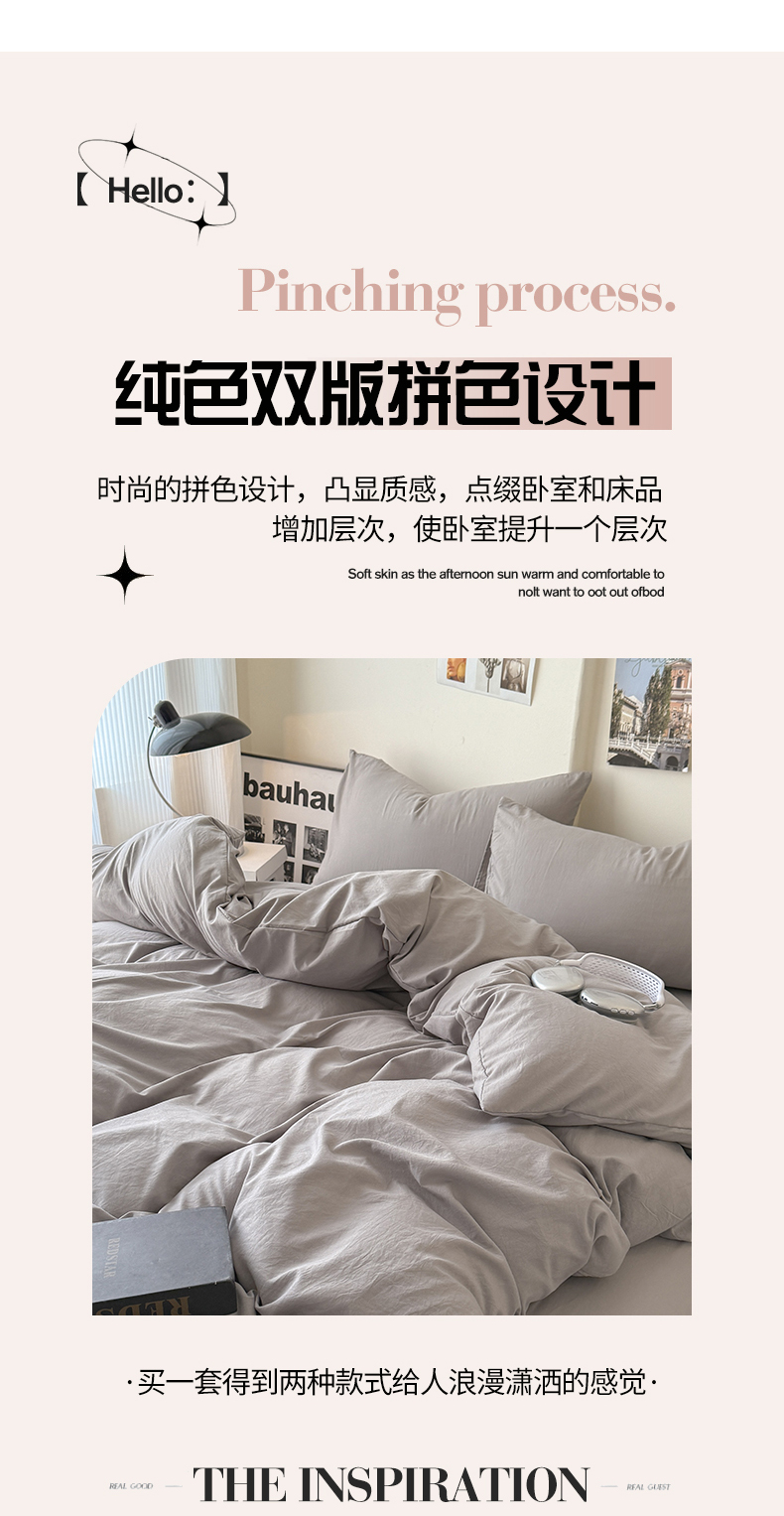 当前位置: 91家纺网 > 商品网购 > 床品套件 > 四件套 > 其它四件套 > 桔禾家纺 2025新款ins风纯色水洗棉四件套双拼水洗棉学生三件套四件套 浅灰
