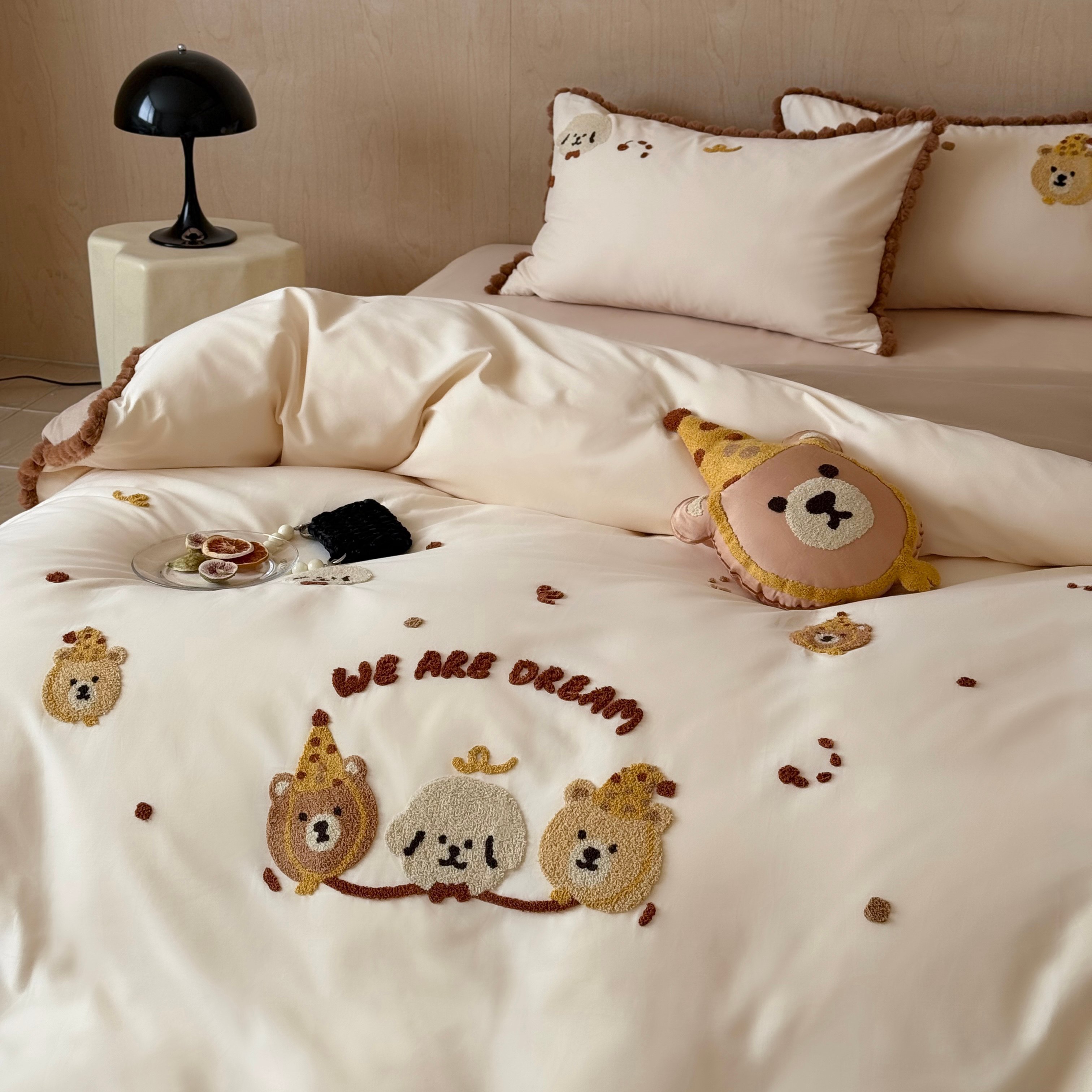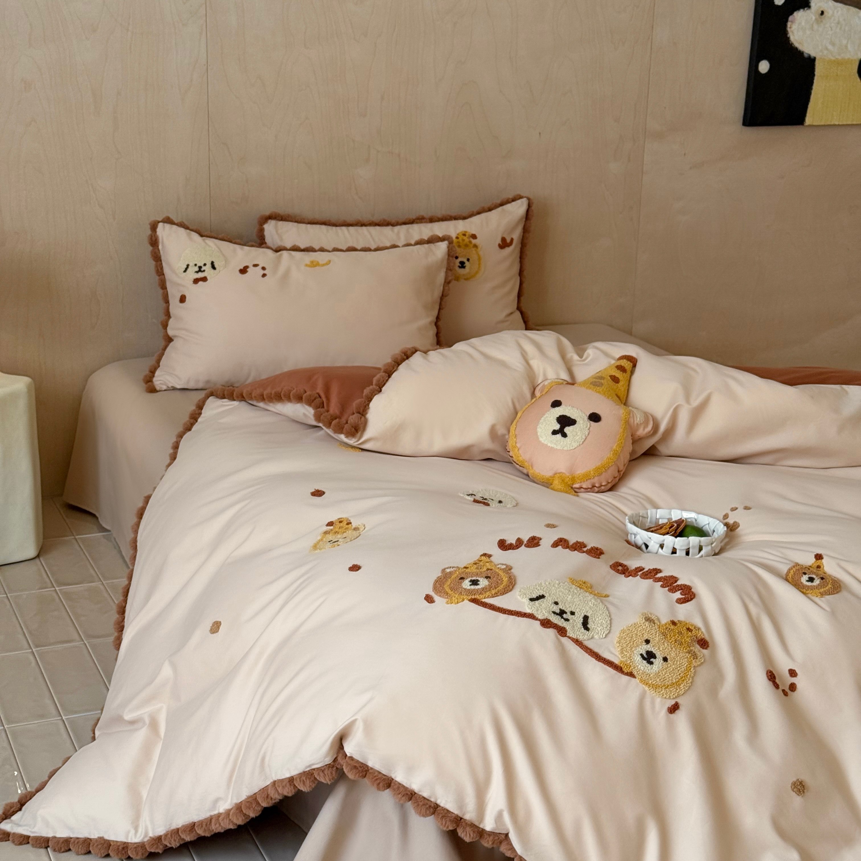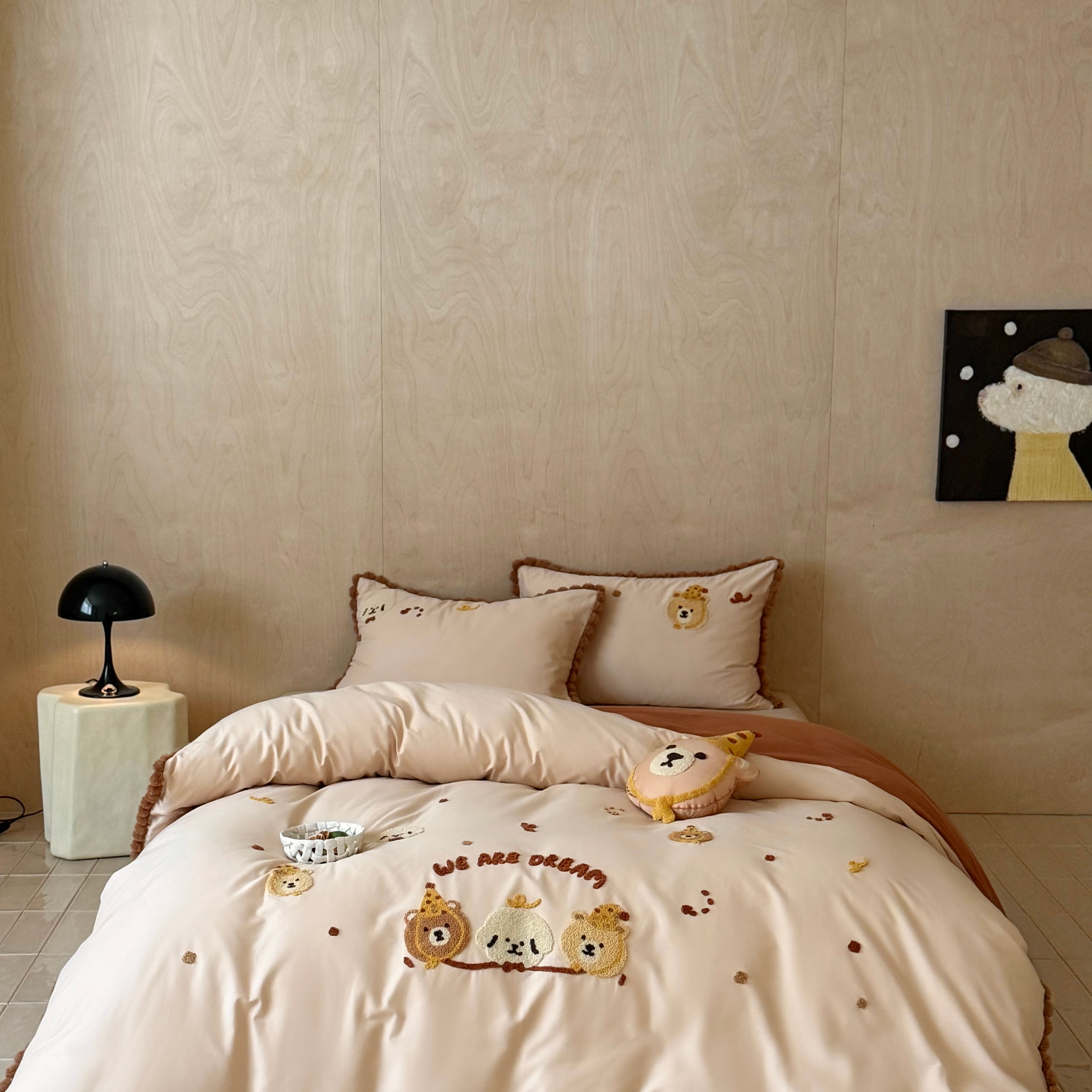 商品名称:佳汐蓝家纺 2025秋冬新款毛巾绣长绒棉全棉纯棉四件套栗子团团 栗子团团-卡其