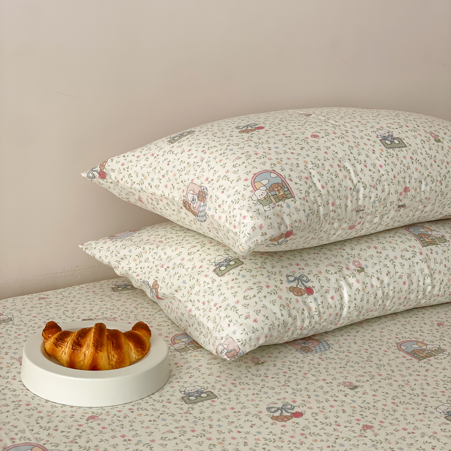 商品名称:8小时家纺 2025新款40s天然肌理双层纱单品枕套 腊肠狗
