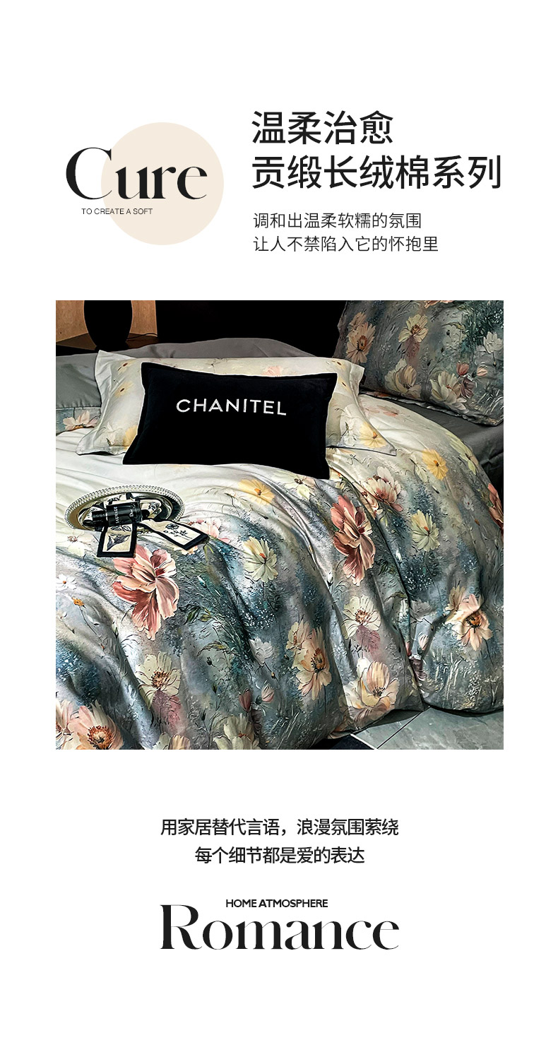 大渔生活 2025新款贡缎长绒棉高品数码印花四件套 清梦花漪
