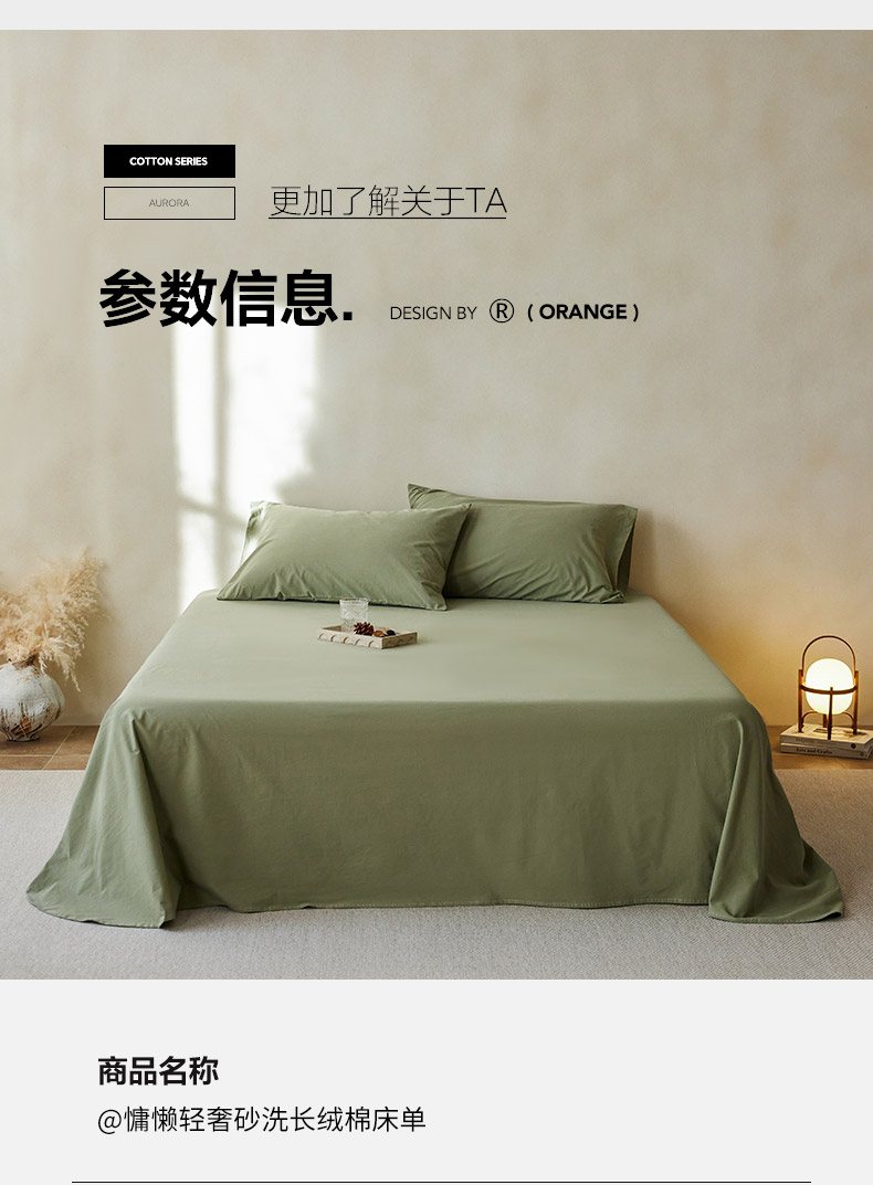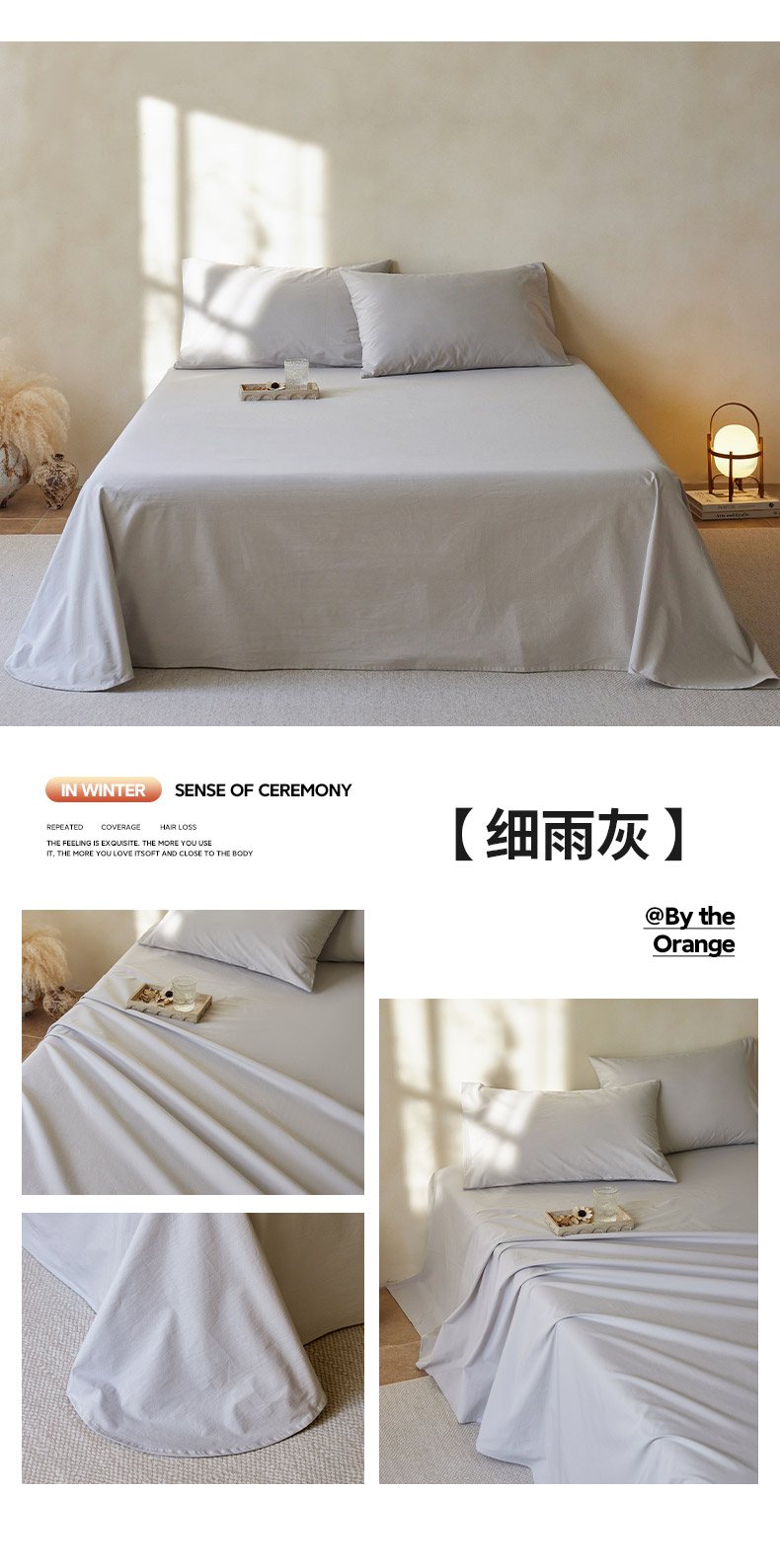 (总)轩和家居 2025新款全棉高支旧感砂洗长绒棉单床单,组合,霁兰色,暮烟灰,墨染灰,落栗棕,薄樱粉,豆沙色,淡黄色,浅云白,青绿色,秋麦色,松石绿,天空蓝,雾海蓝,细雨灰