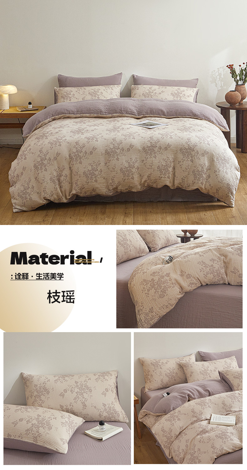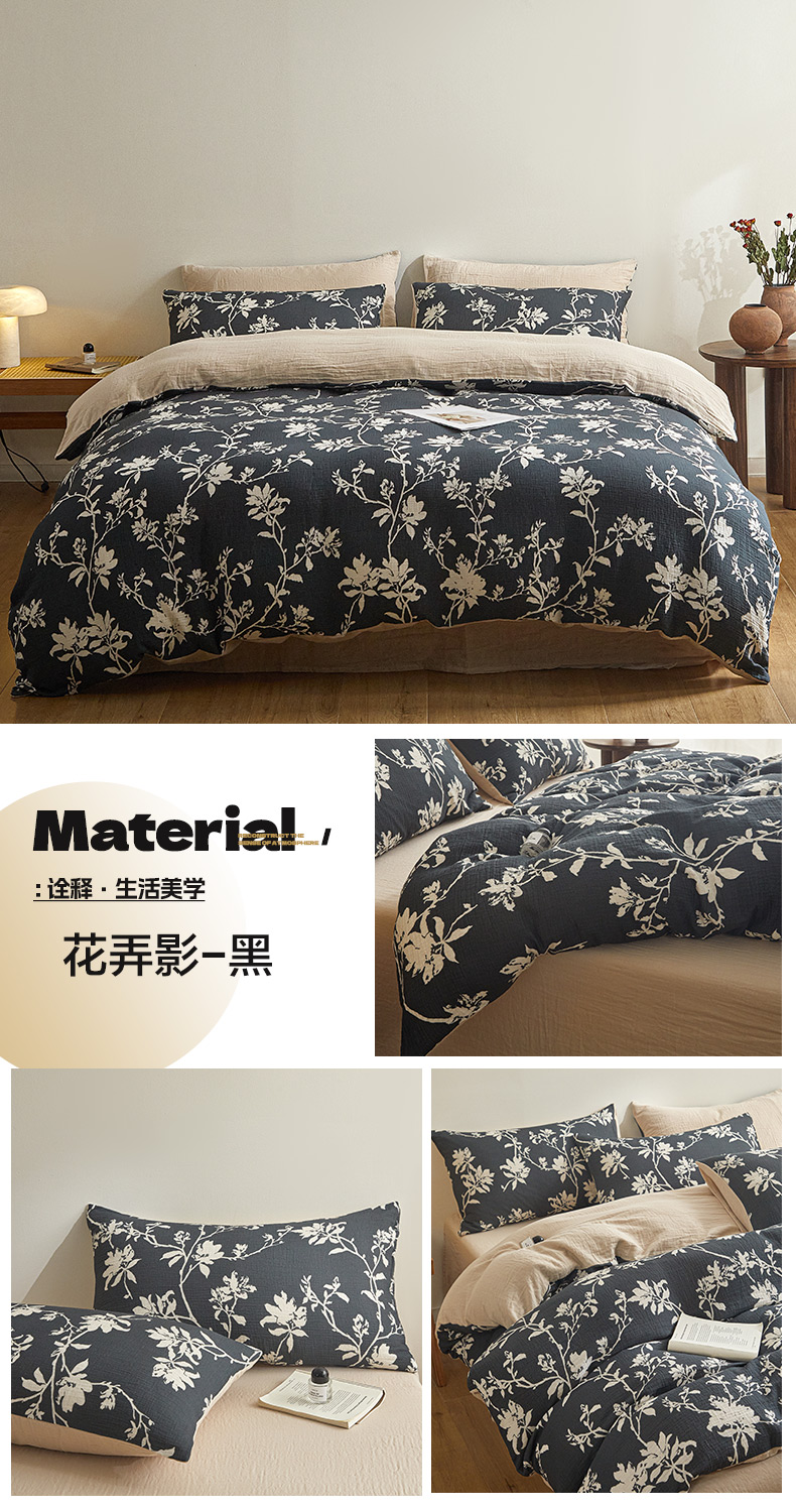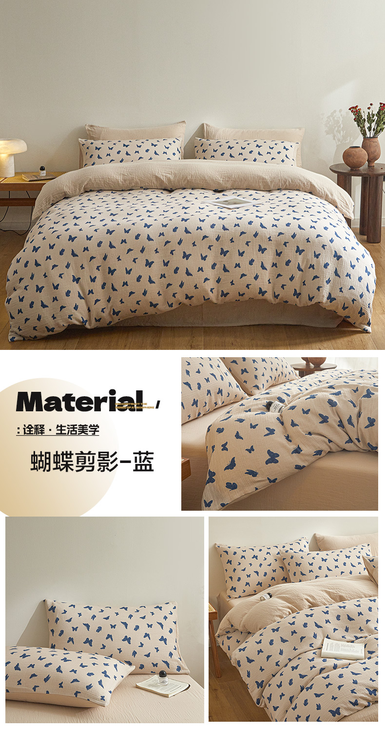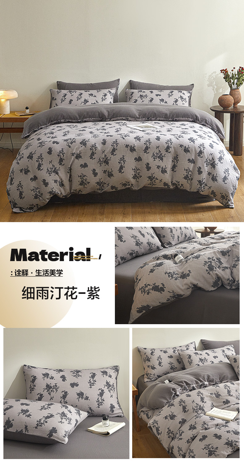 商品名称:(总)咏绒家纺工厂店 2025新款全棉双层皱皱纱现代中古风数码四件套