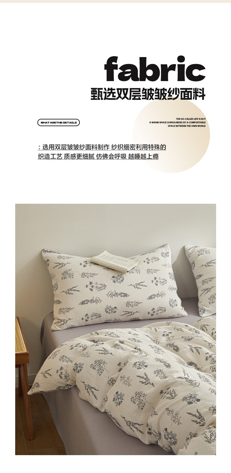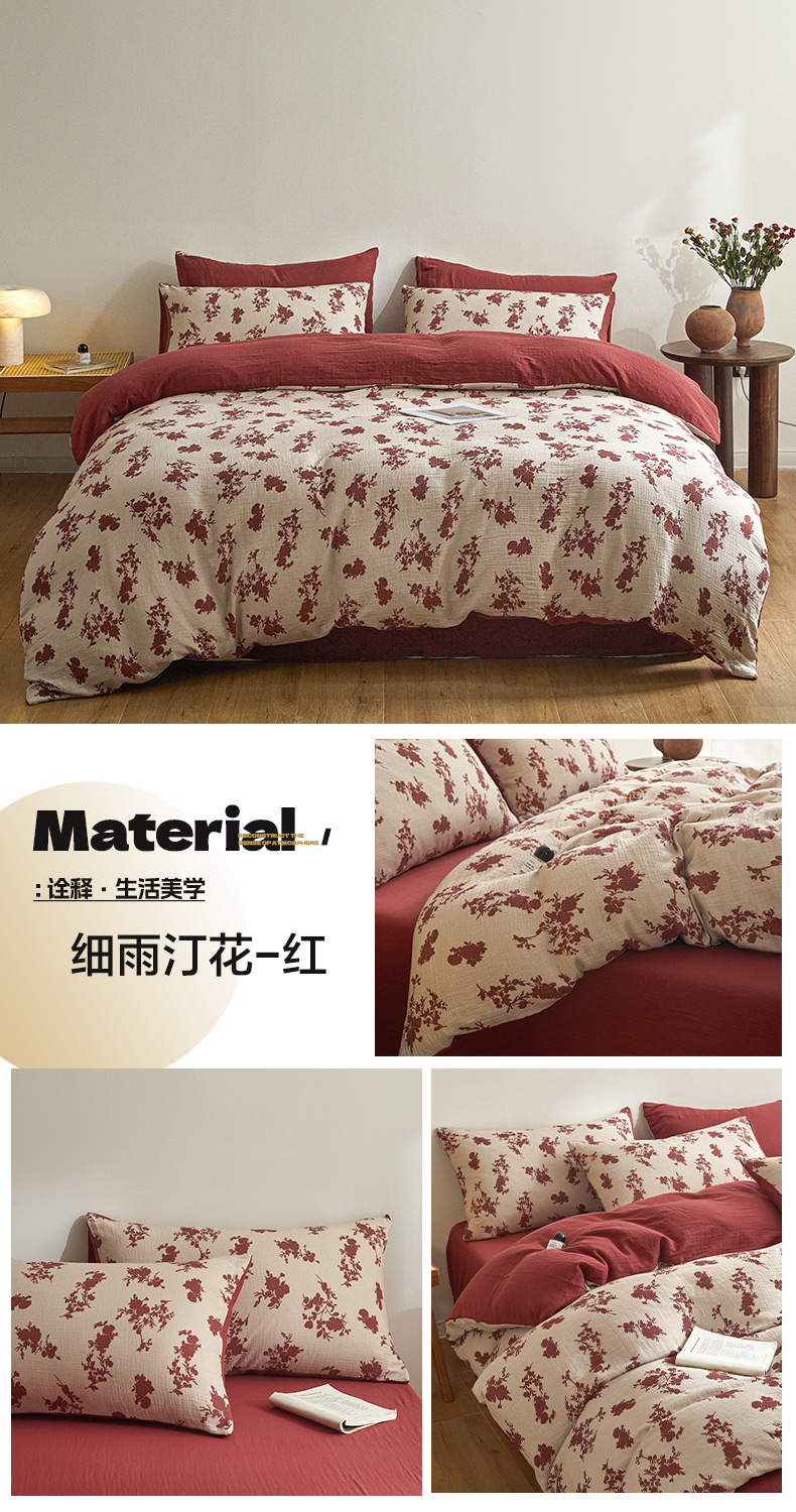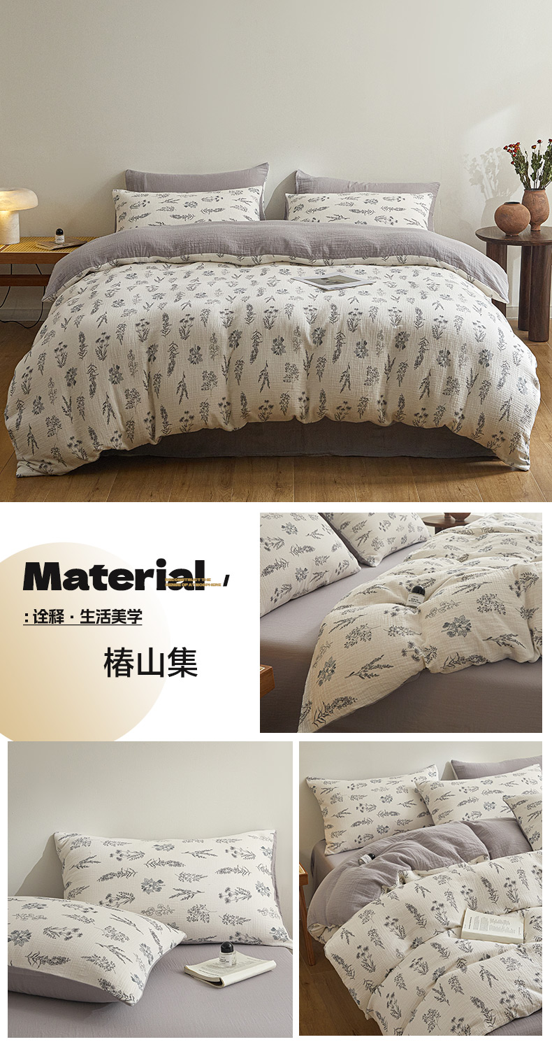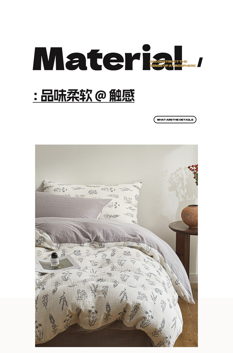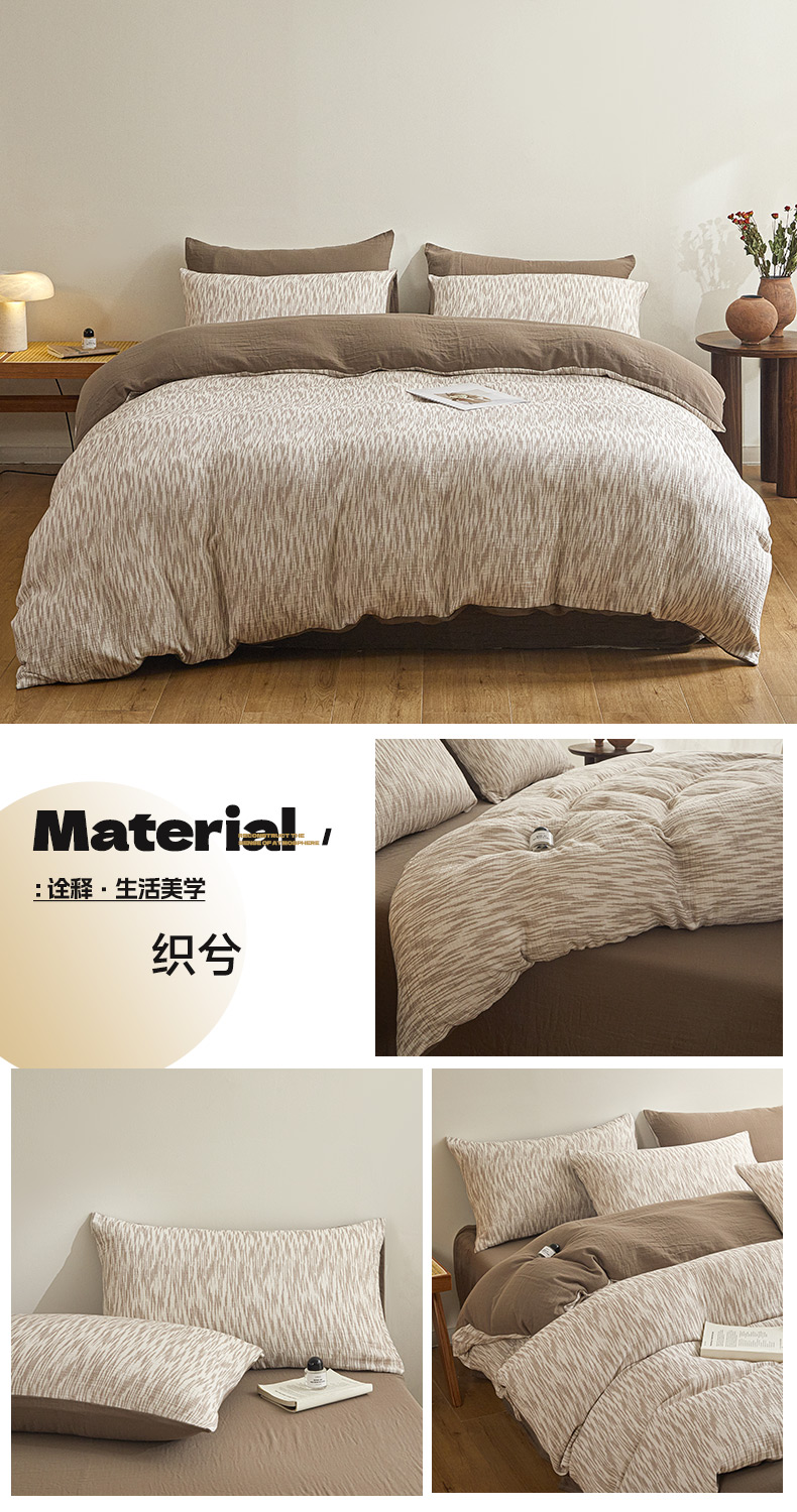 商品名称:(总)咏绒家纺工厂店 2025新款全棉双层皱皱纱现代中古风数码四件套