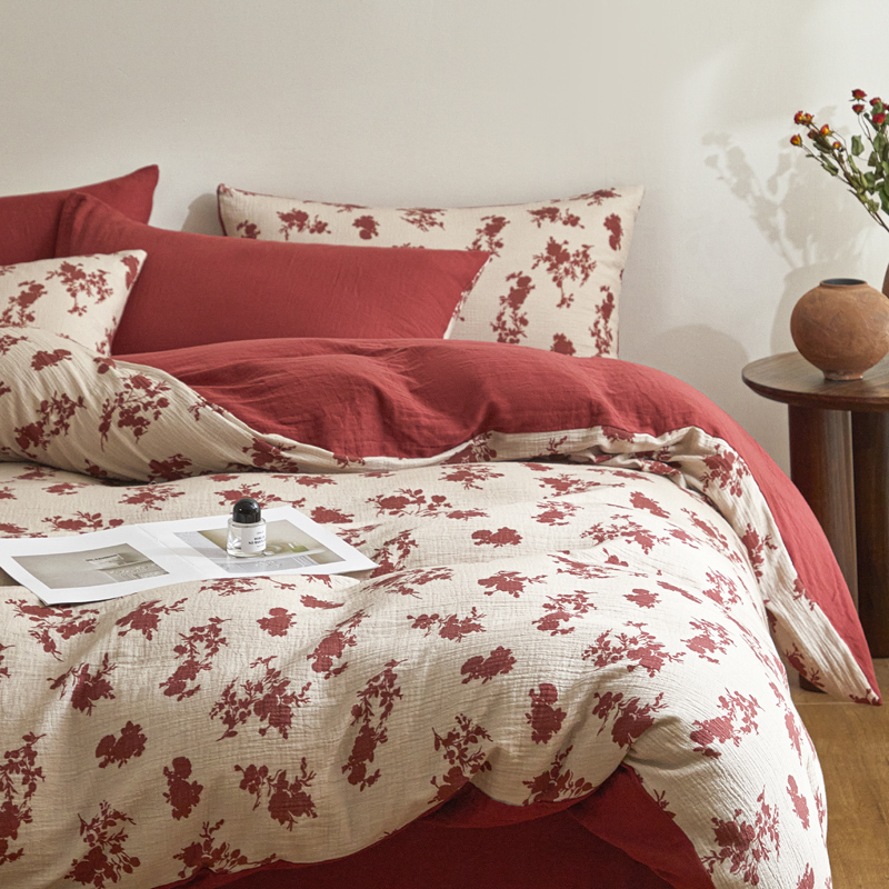 (总)咏绒家纺工厂店 2025新款全棉双层皱皱纱现代中古风数码四件套