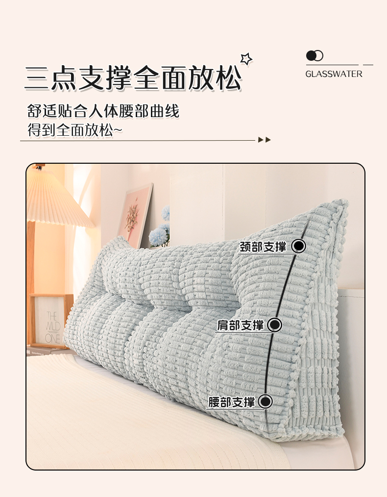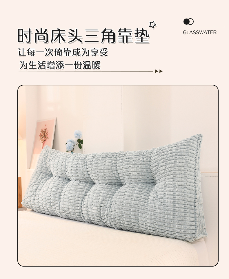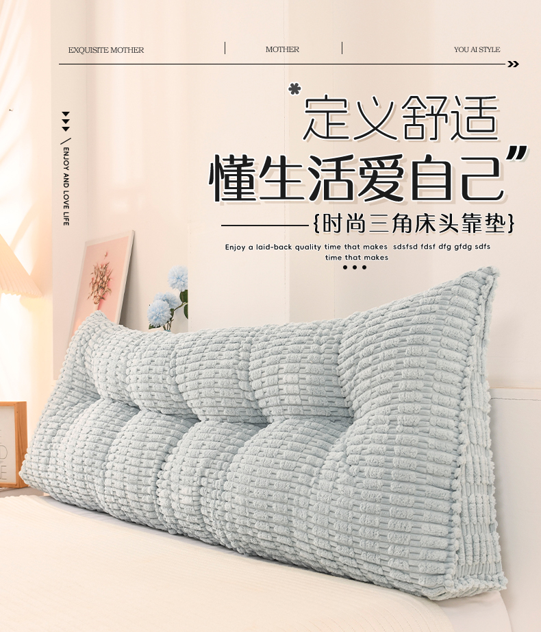 (总)碧尔家居 2025新款榻榻米床头靠枕大靠背卧室护腰靠垫可拆洗沙发双人软包三角玉米绒带头枕,米白,牛仔蓝,银灰