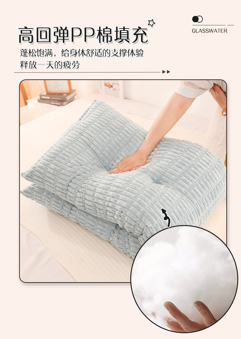 (总)碧尔家居 2025新款荷兰绒弯型三角+头枕床头靠背,奶咖,天蓝,香槟,樱花粉