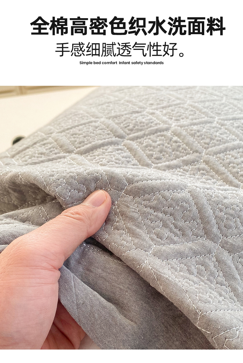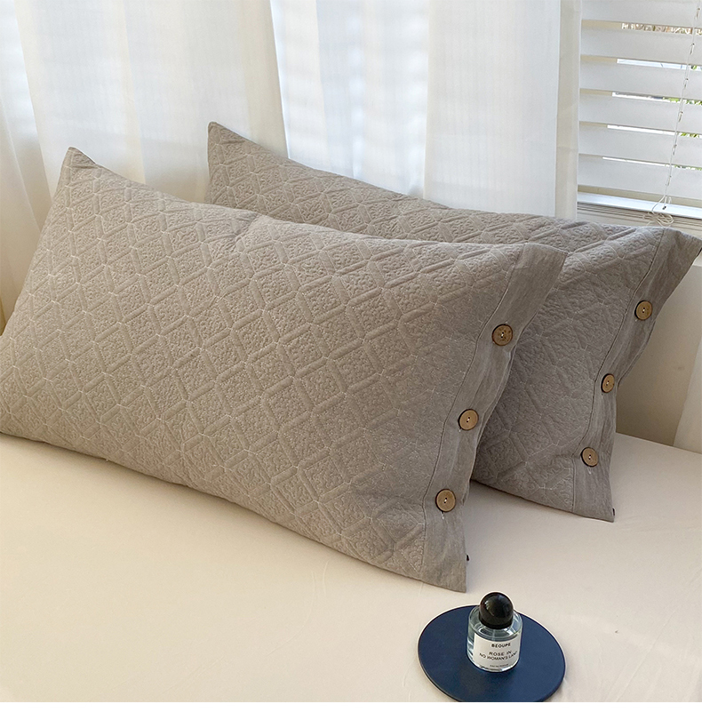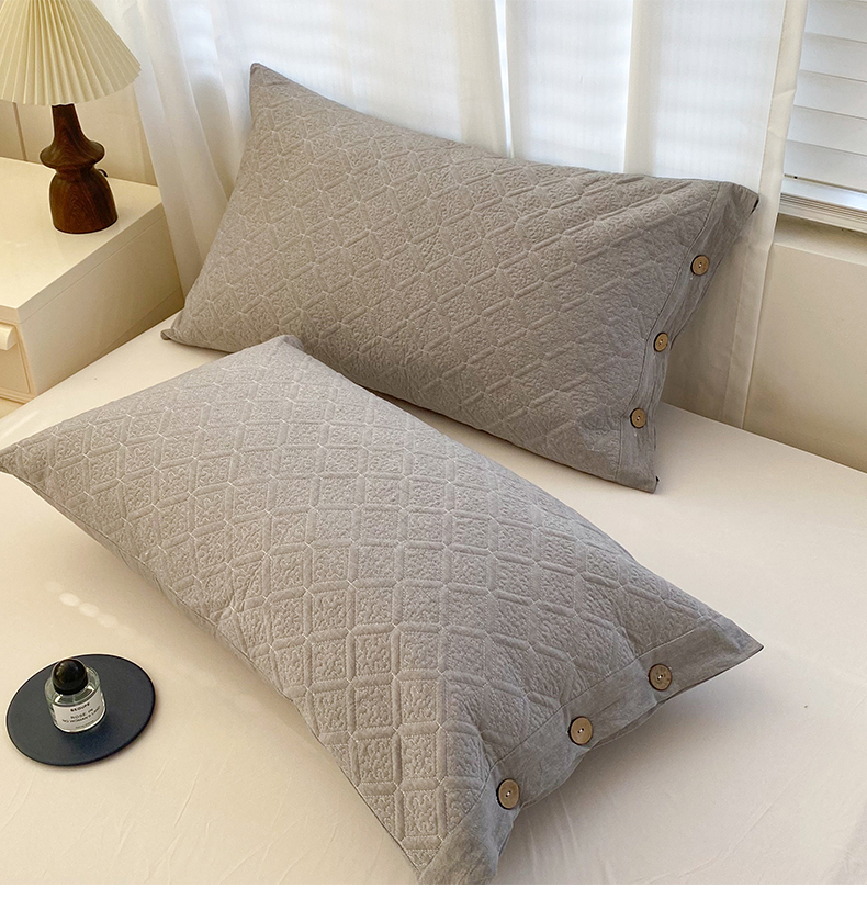 商品名称:美宜家 2026新款全棉枕头套高密色织水洗加棉绗缝高端纯色枕套 极简山灰