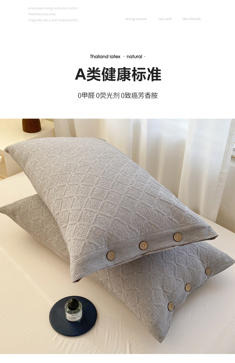 (总)美宜家 2026新款全棉枕头套高密色织水洗加棉绗缝高端纯色枕套,极简山灰,极简米其,极简兰灰,极简仔兰