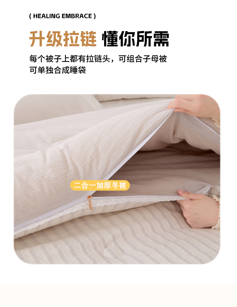 当前位置: 91家纺网 > 商品网购 > 被子 > 冬被 > VIP被业 2025新款星辰织条全棉大豆子母被冬被被芯 灰色