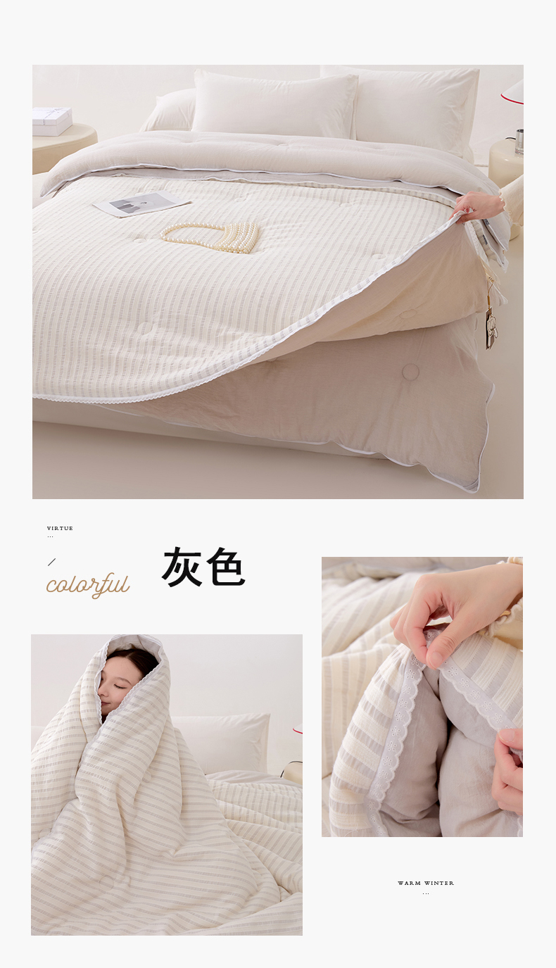 • 91家纺网 家纺一手货源 找家纺 VIP被业 2025新款星辰织条全棉大豆子母被冬被被芯 灰色