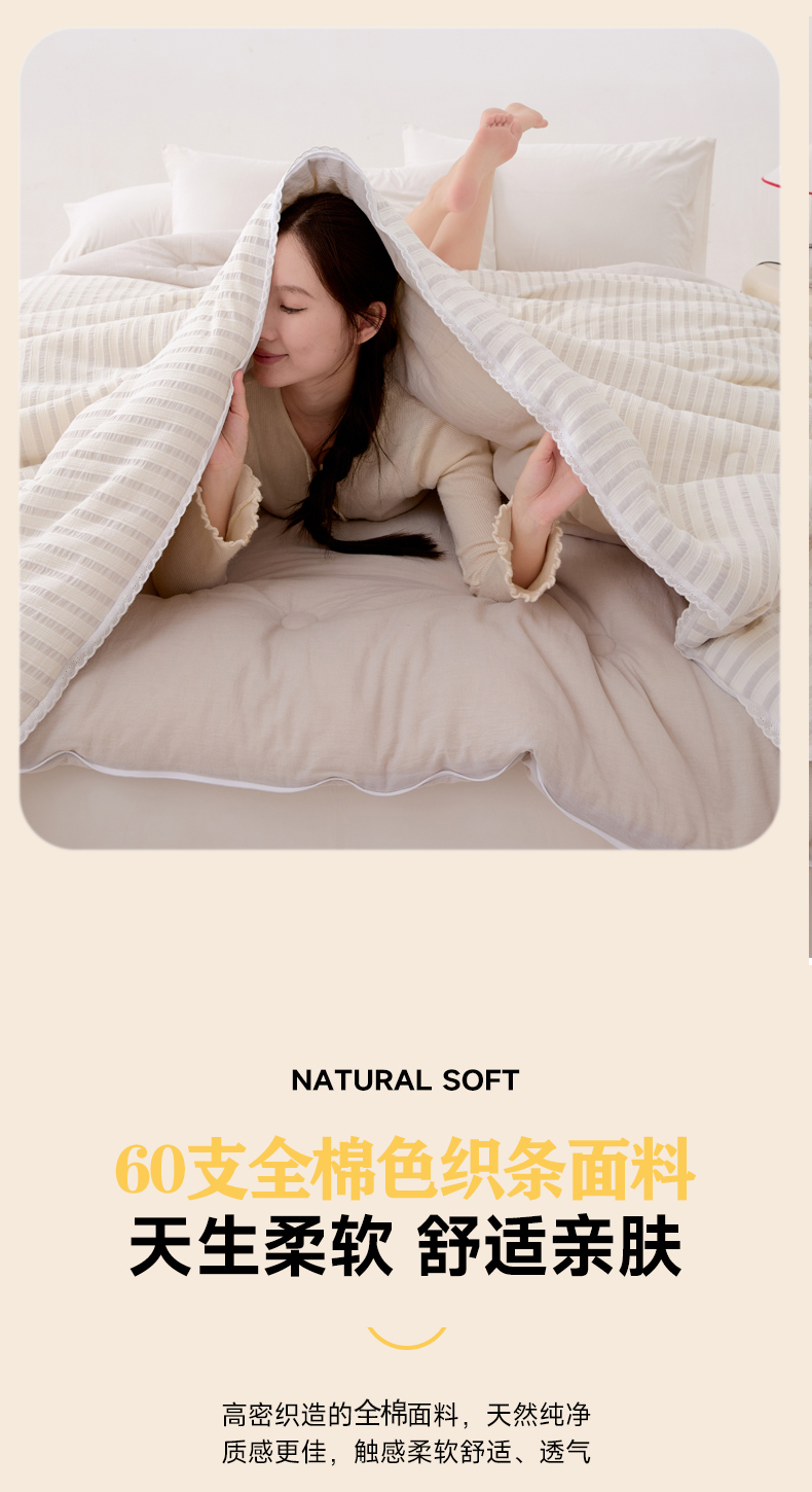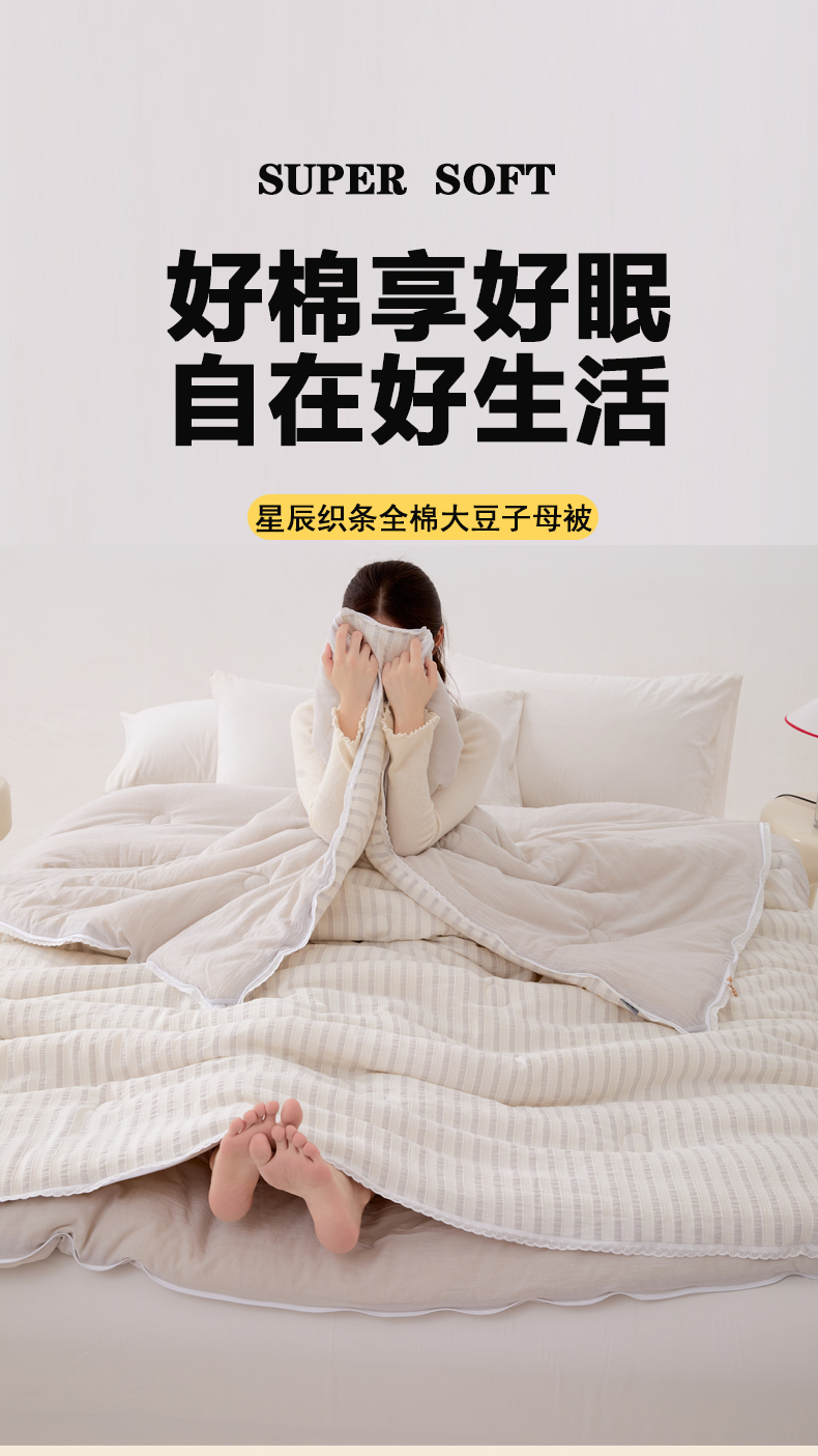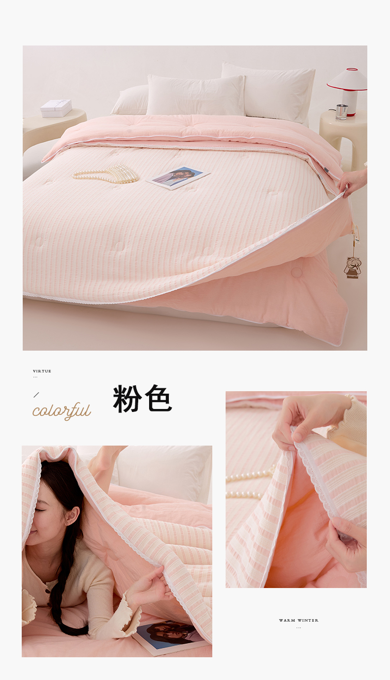 • 91家纺网 家纺一手货源 找家纺 (总)VIP被业 2025新款星辰织条全棉大豆子母被冬被被芯,白色,粉色,灰色