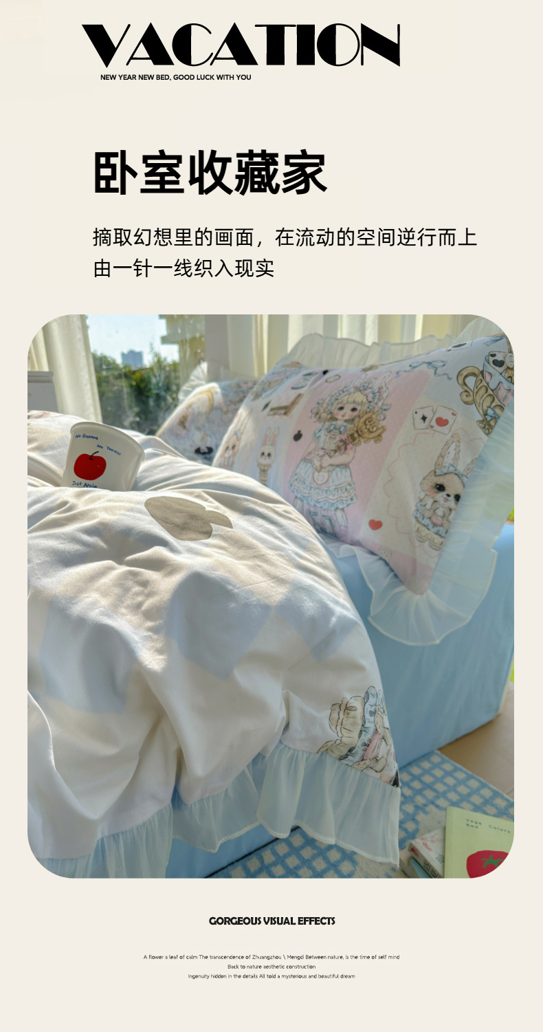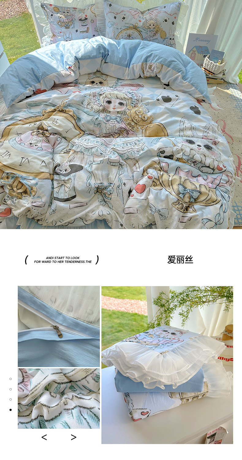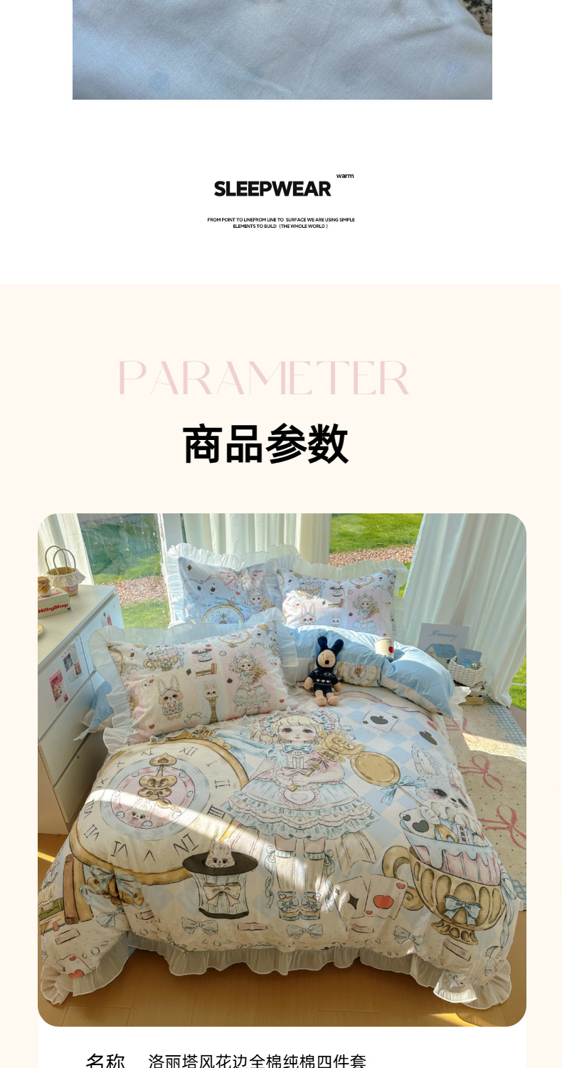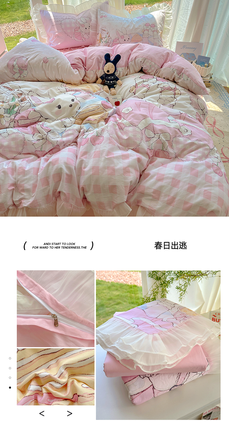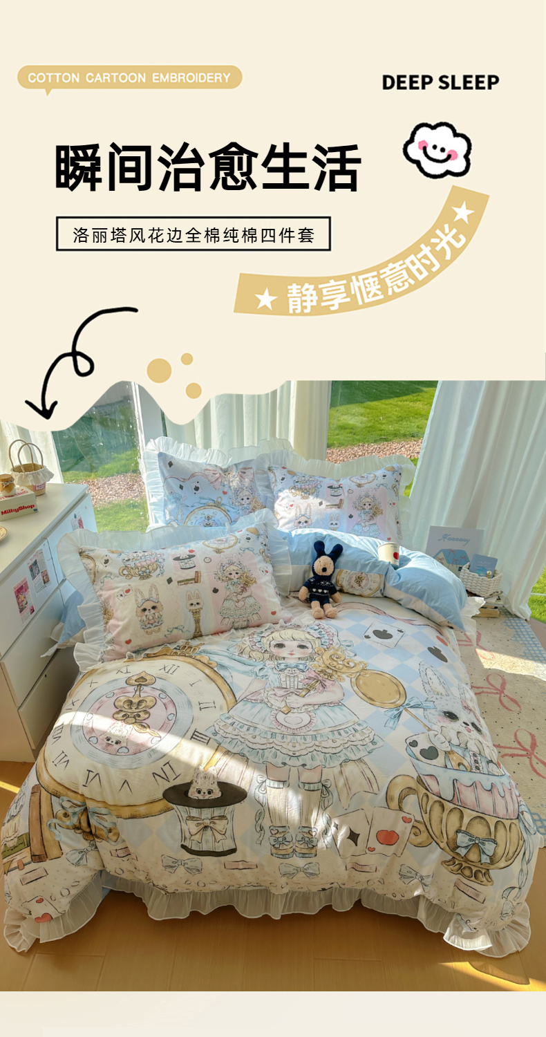 当前位置: 91家纺网 > 商品网购 > 床品套件 > 四件套 > 全棉普通四件套 > (总)希诺家居 2025新款纯棉洛丽塔风花边韩版萝莉风奶油风可爱卡通全棉四件套