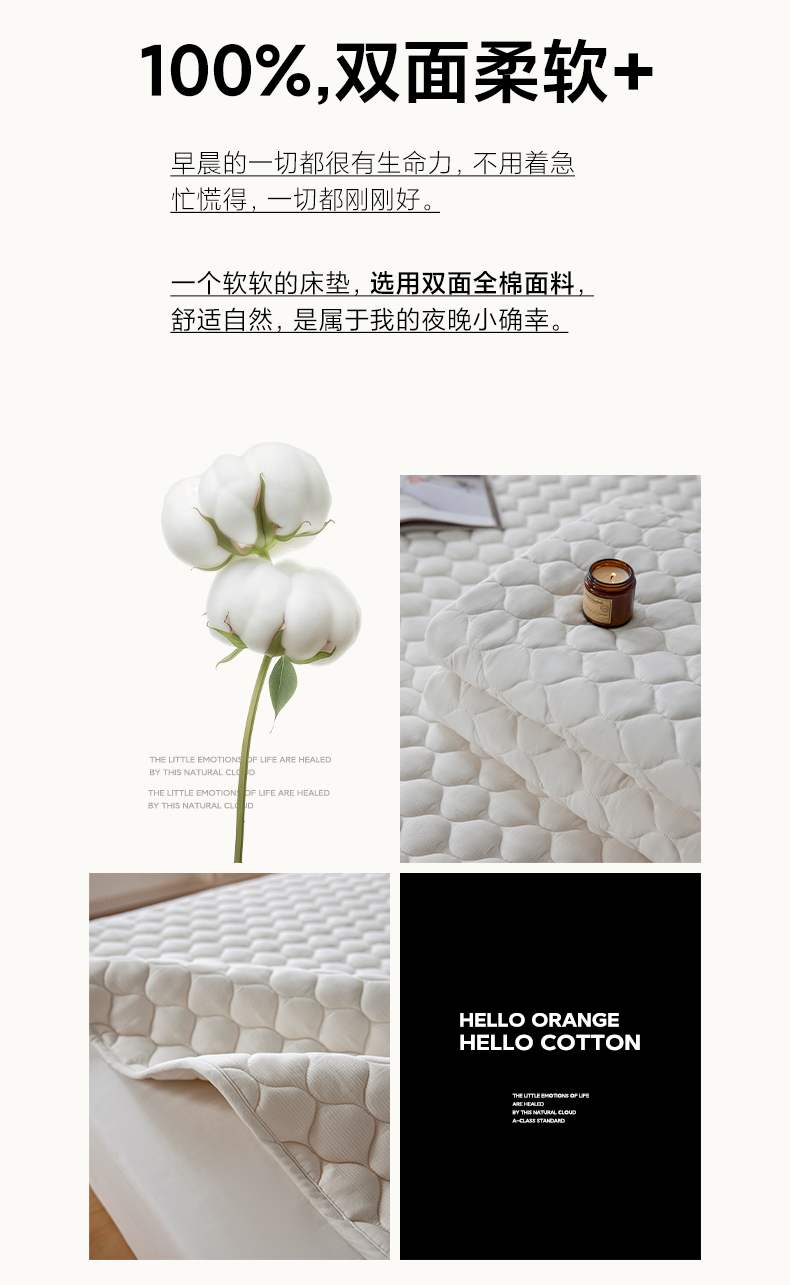 (总)三味舒屋 2025新款朵桃系列全棉夹棉保护垫软床垫薄床垫(控价 券后叠加不低于128、158、168、178),棉朵,棉桃