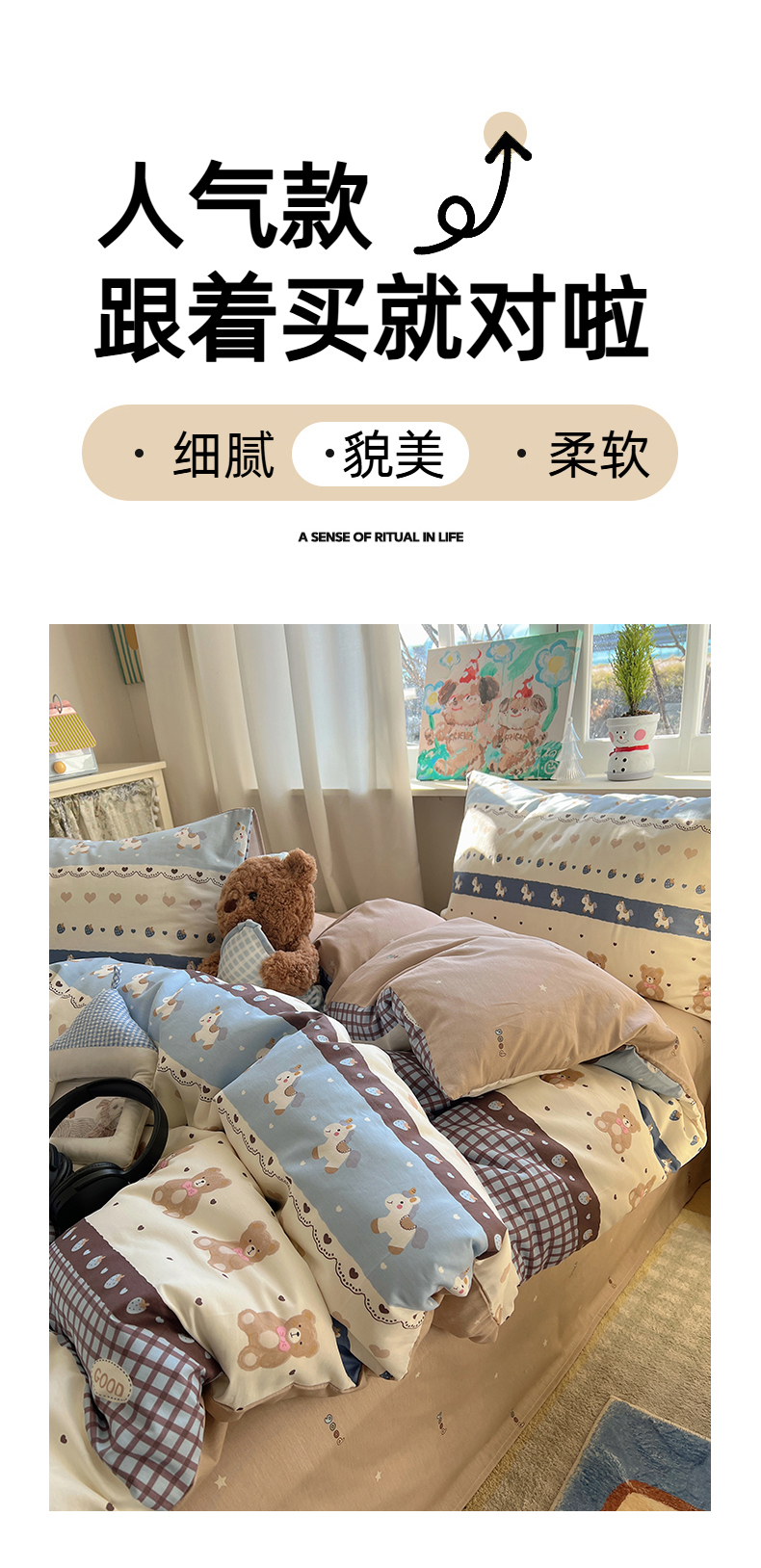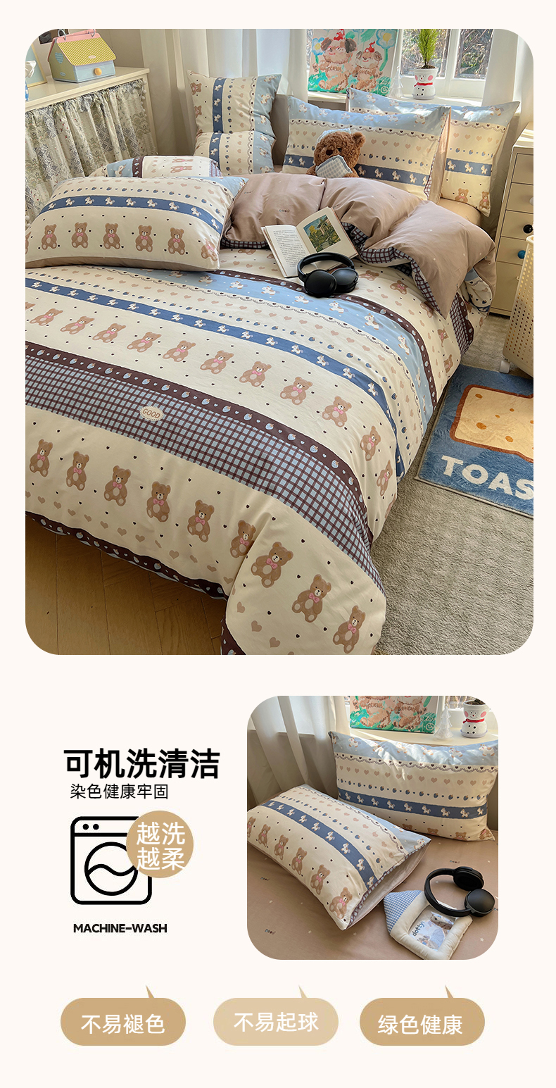 当前位置: 91家纺网 > 商品网购 > 床品套件 > 四件套 > 全棉普通四件套 > 六巷胡同 2026春夏新款INS卡通基础款全棉纯棉四件套-系列一 费尔岛熊熊